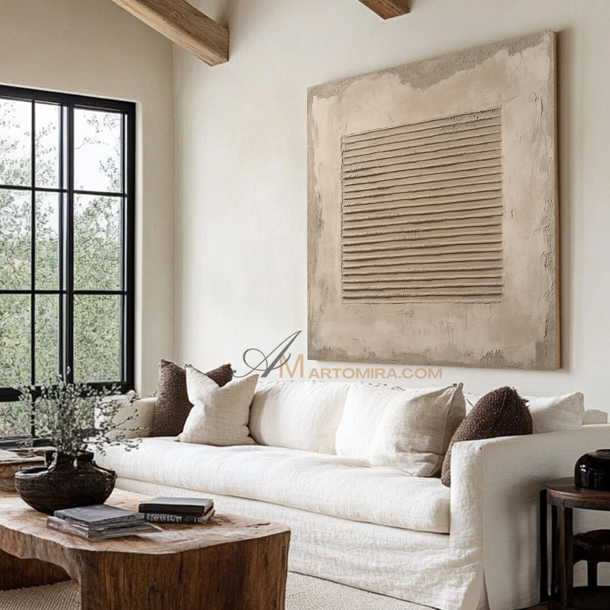 Wabi-Sabi Minimalist Beige Textured Striped Painting | Modern Geometric Line Canvas | Rustic Abstract Wall Art | Minimal Home Decor