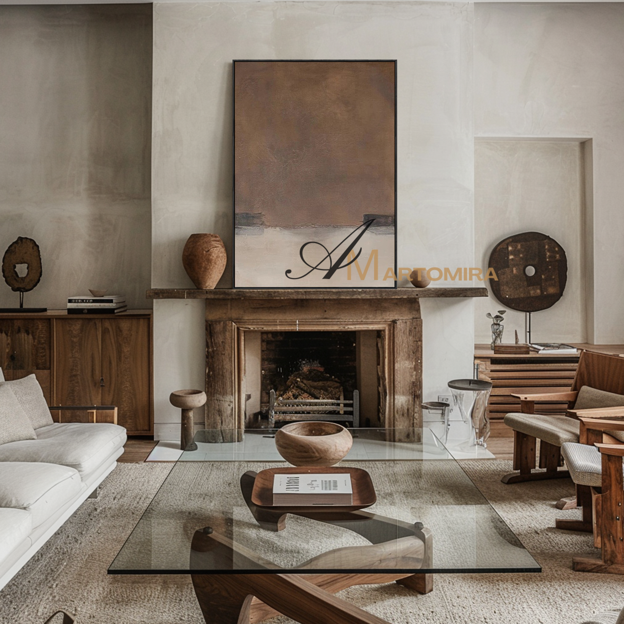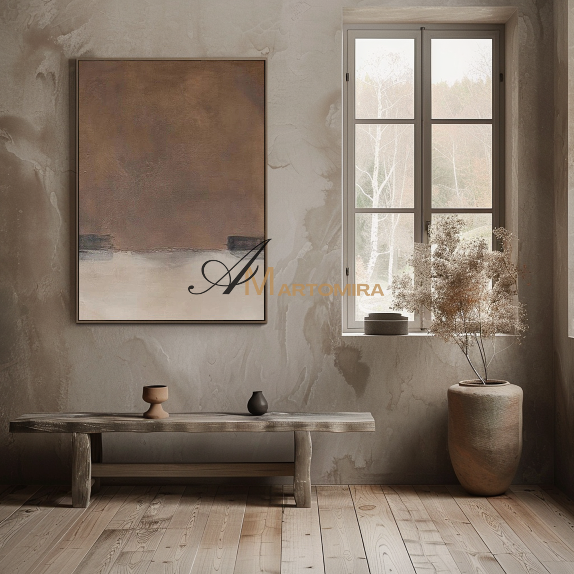 Wabi-Sabi-Wandkunst | Abstrakte Gemälde auf Leinwand | Wandbilder in Braun und Beige #MF113