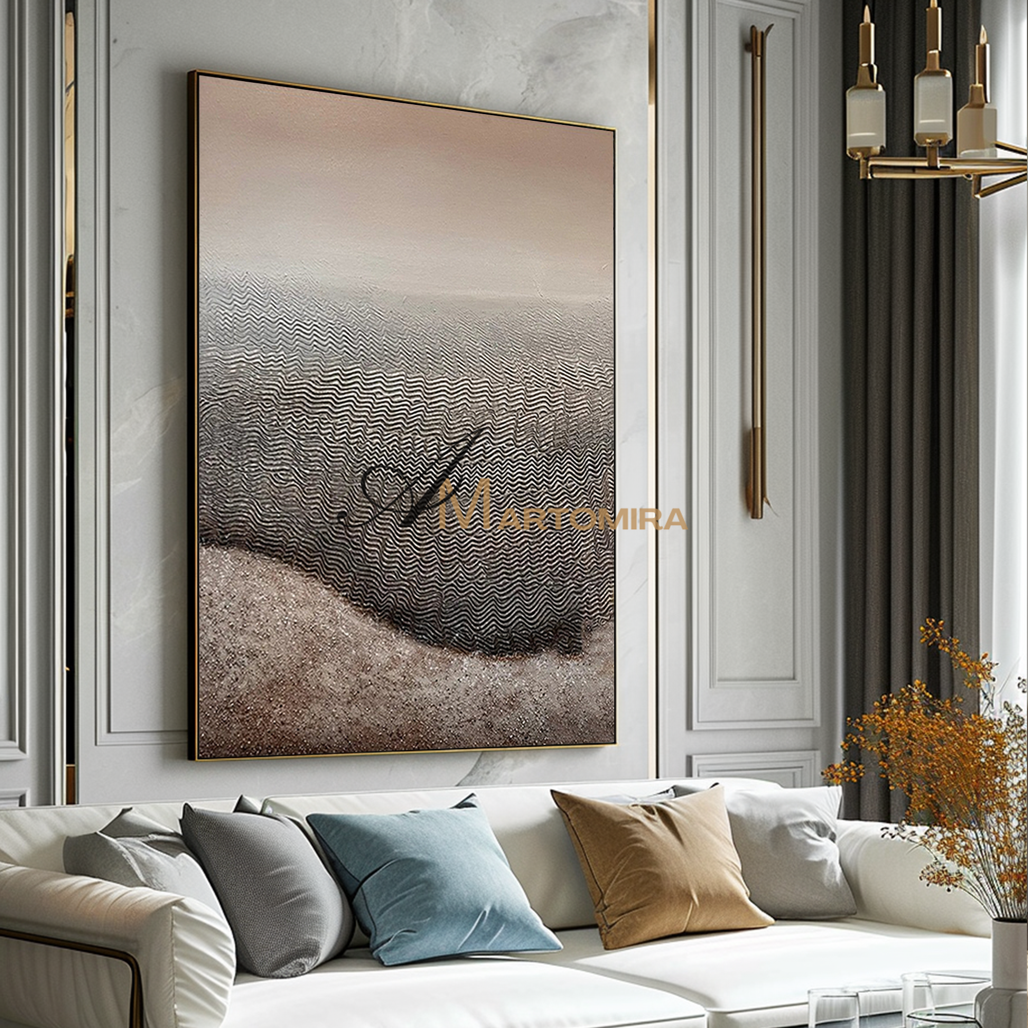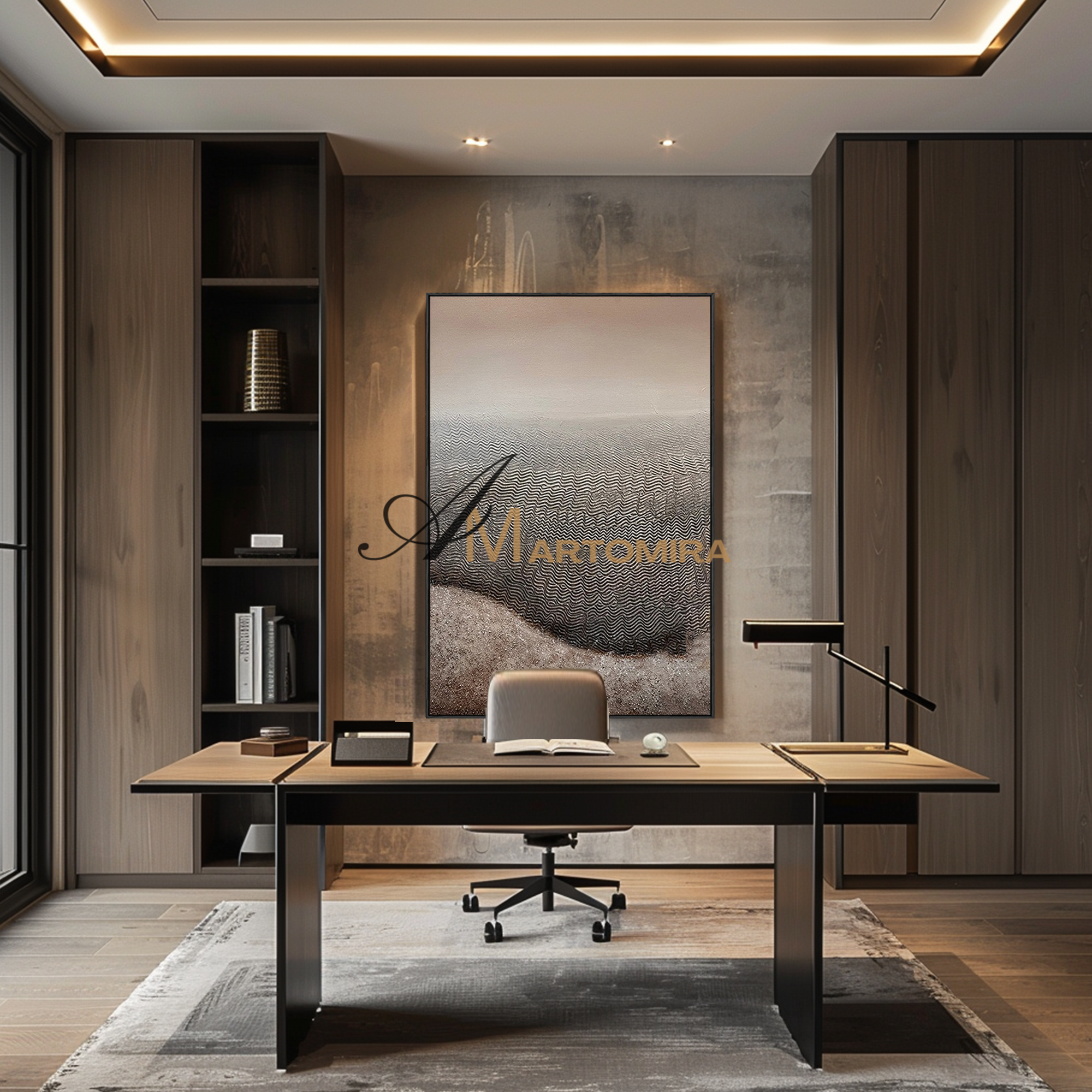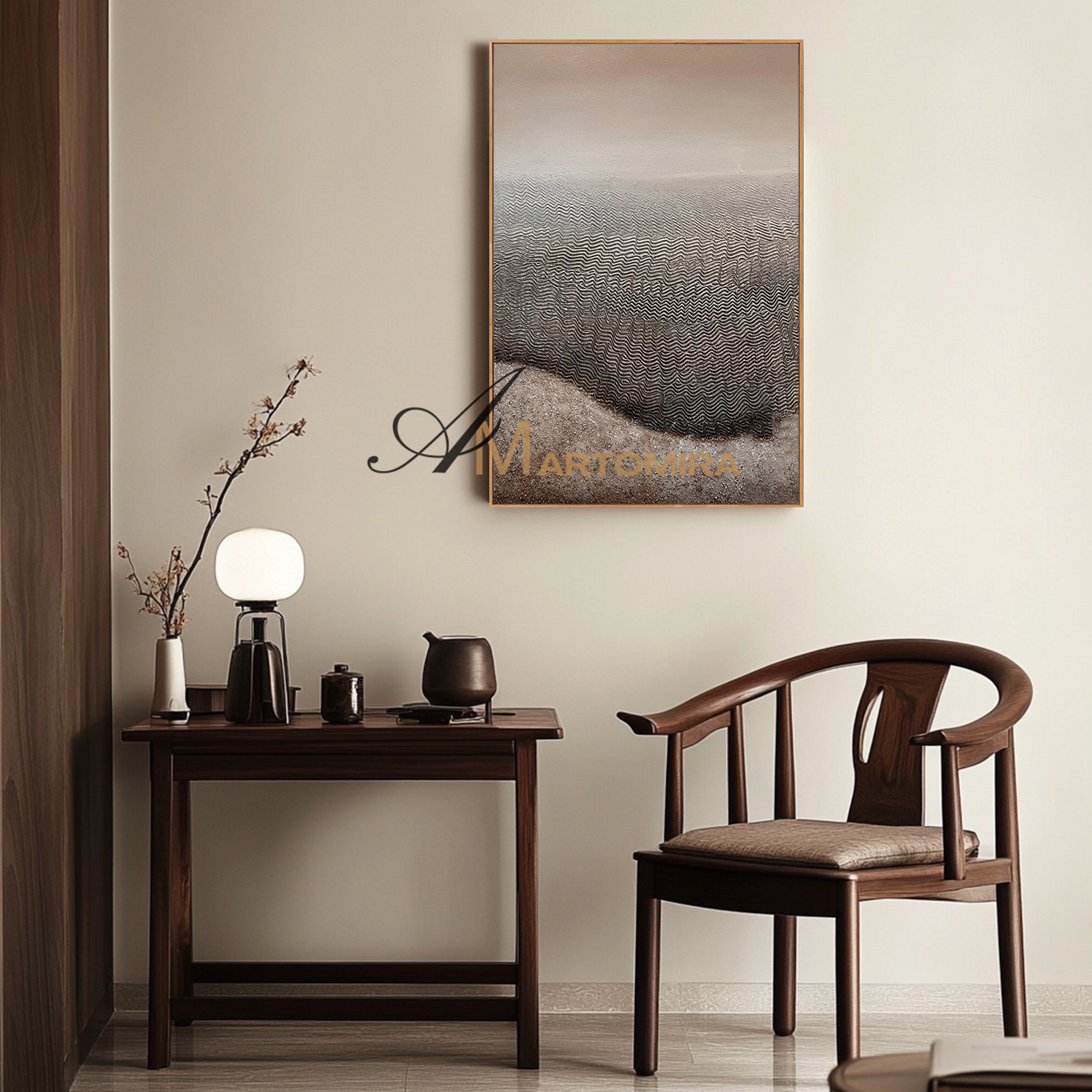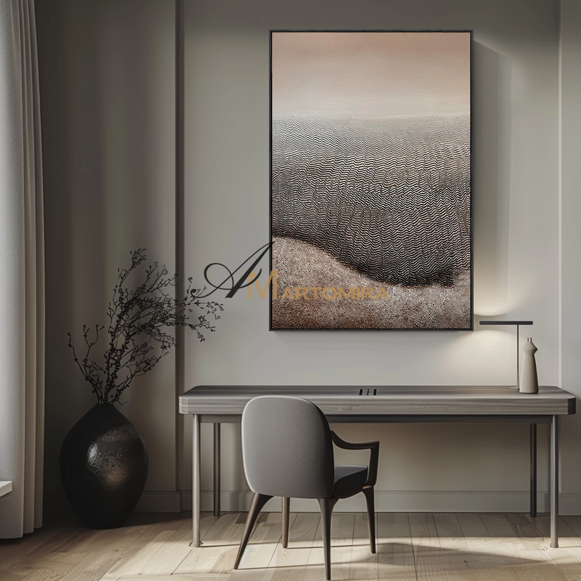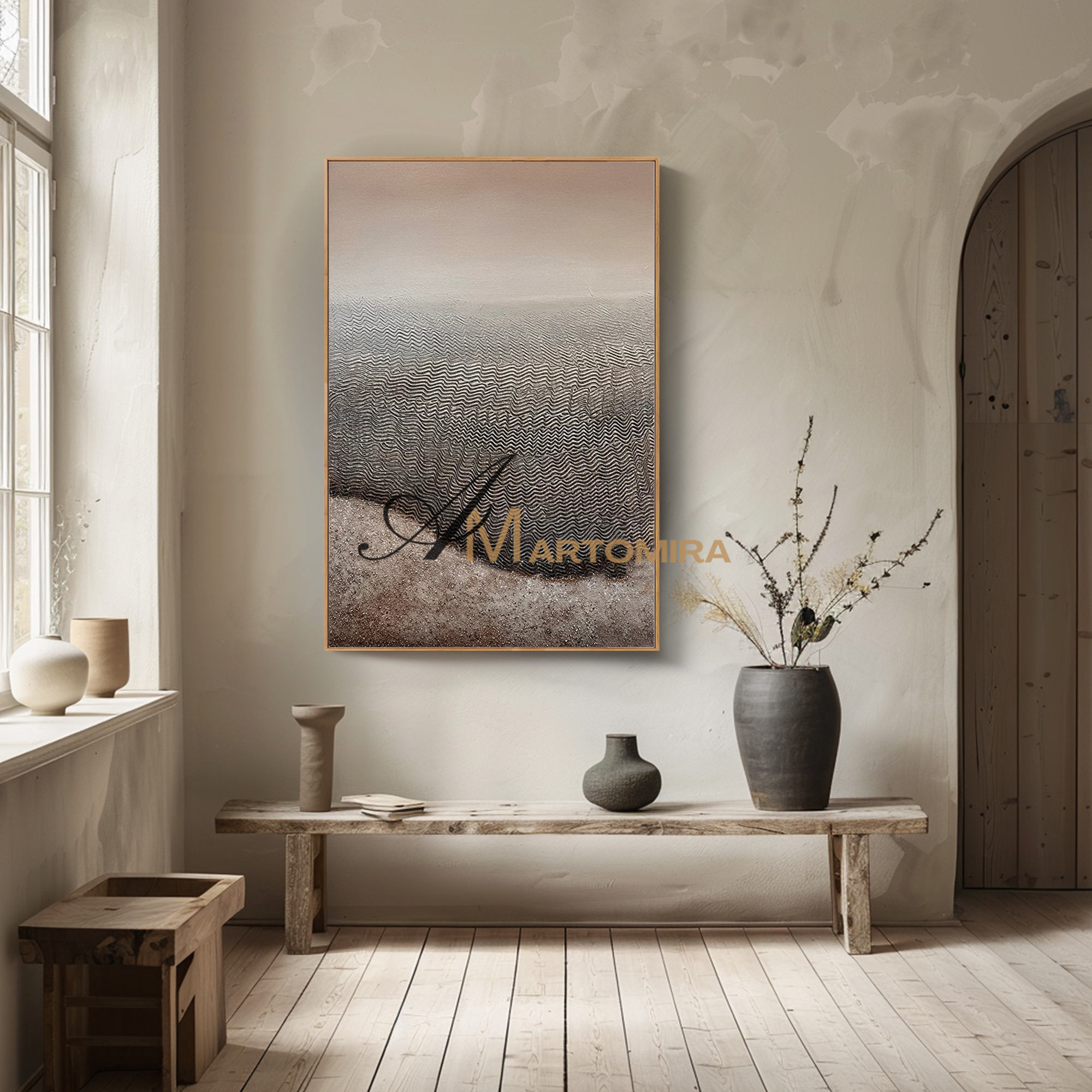 Enhance your interior with our contemporary hand-painted wall art, blending texture, form, and timeless style.