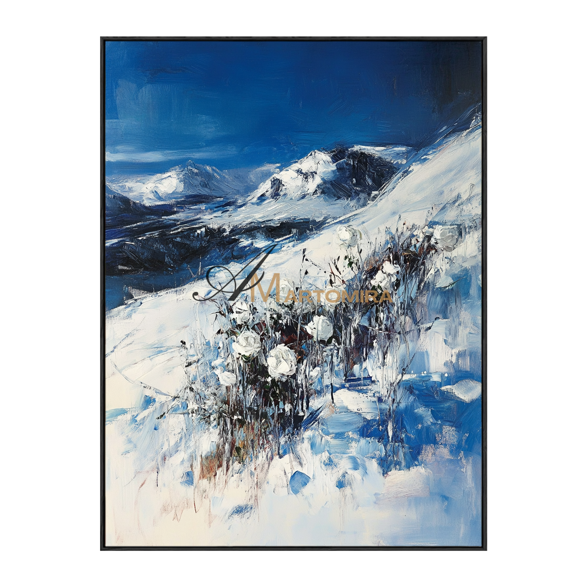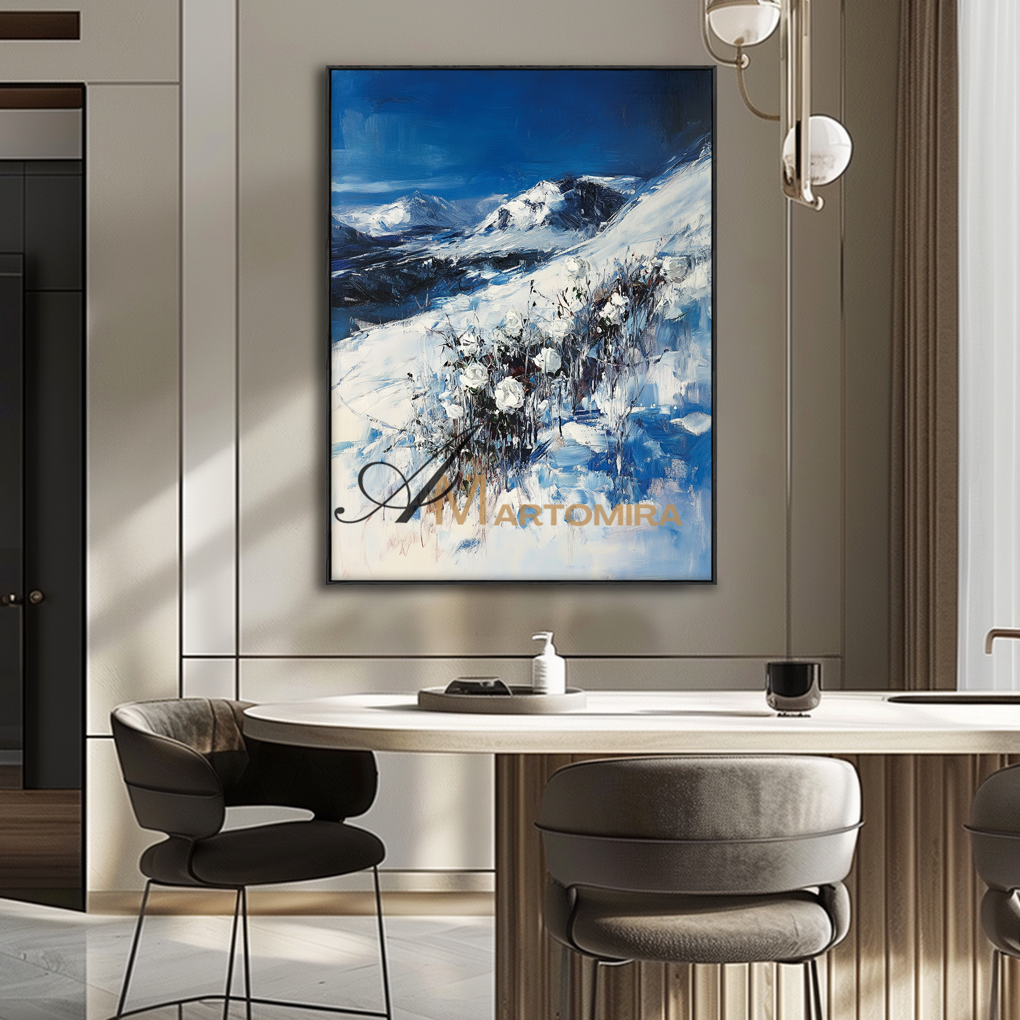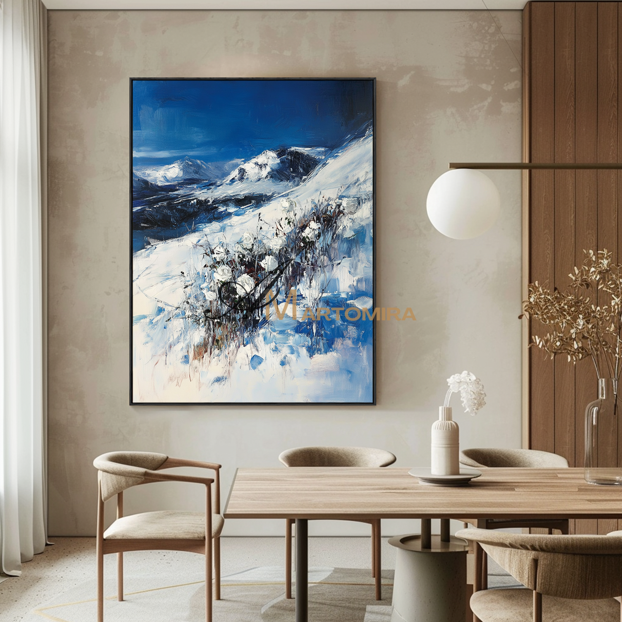 Acryl-Blumenbild | Schneebedecktes Bergpanorama | Bergwandbild | Abstraktes Blumenwandbild #CF111