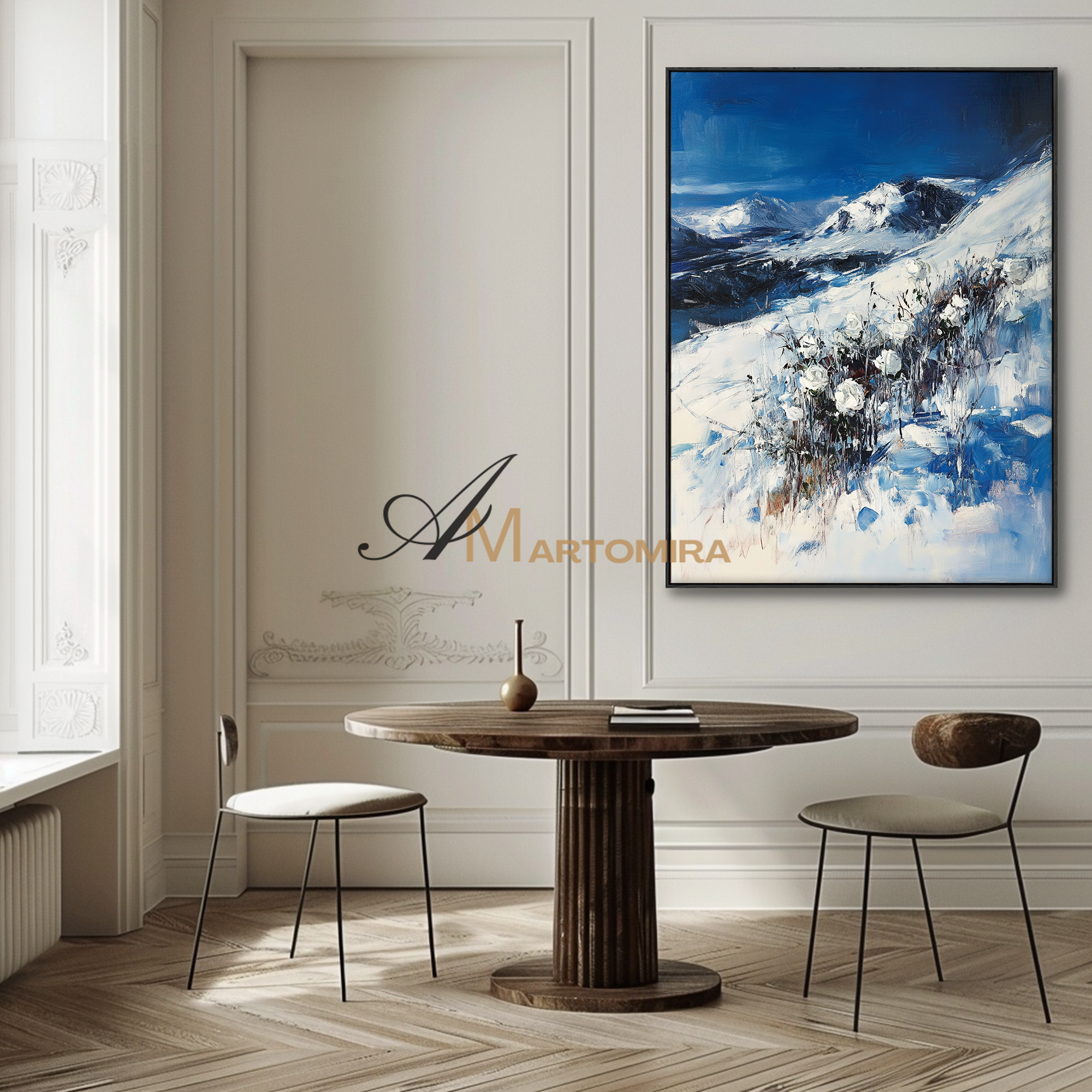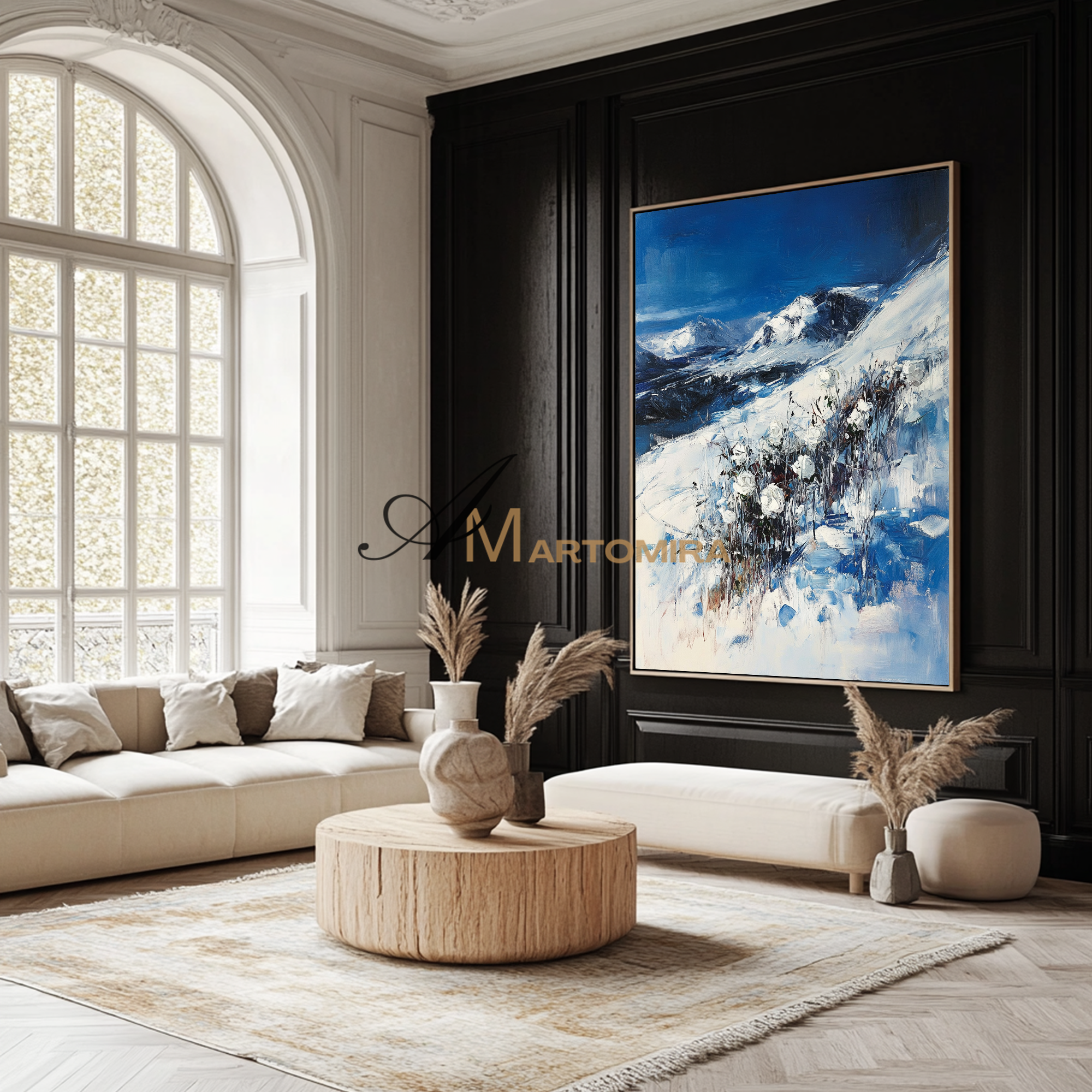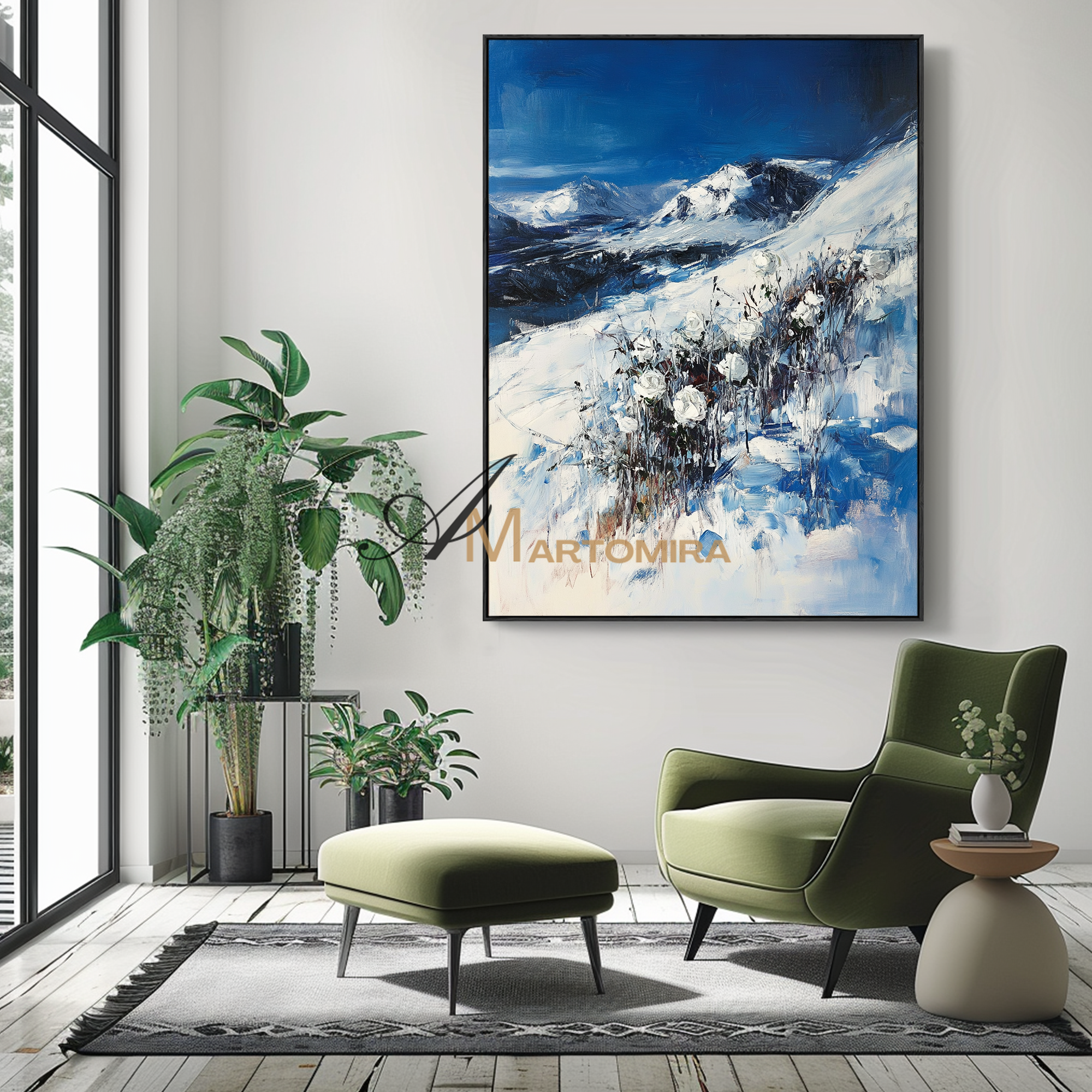 Acryl-Blumenbild | Schneebedecktes Bergpanorama | Bergwandbild | Abstraktes Blumenwandbild #CF111