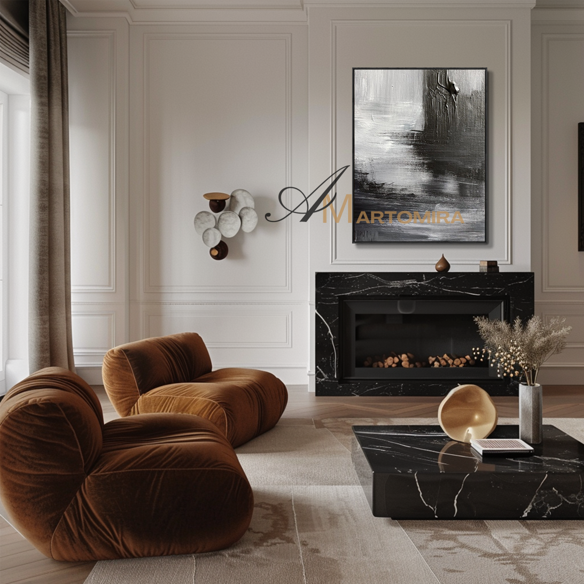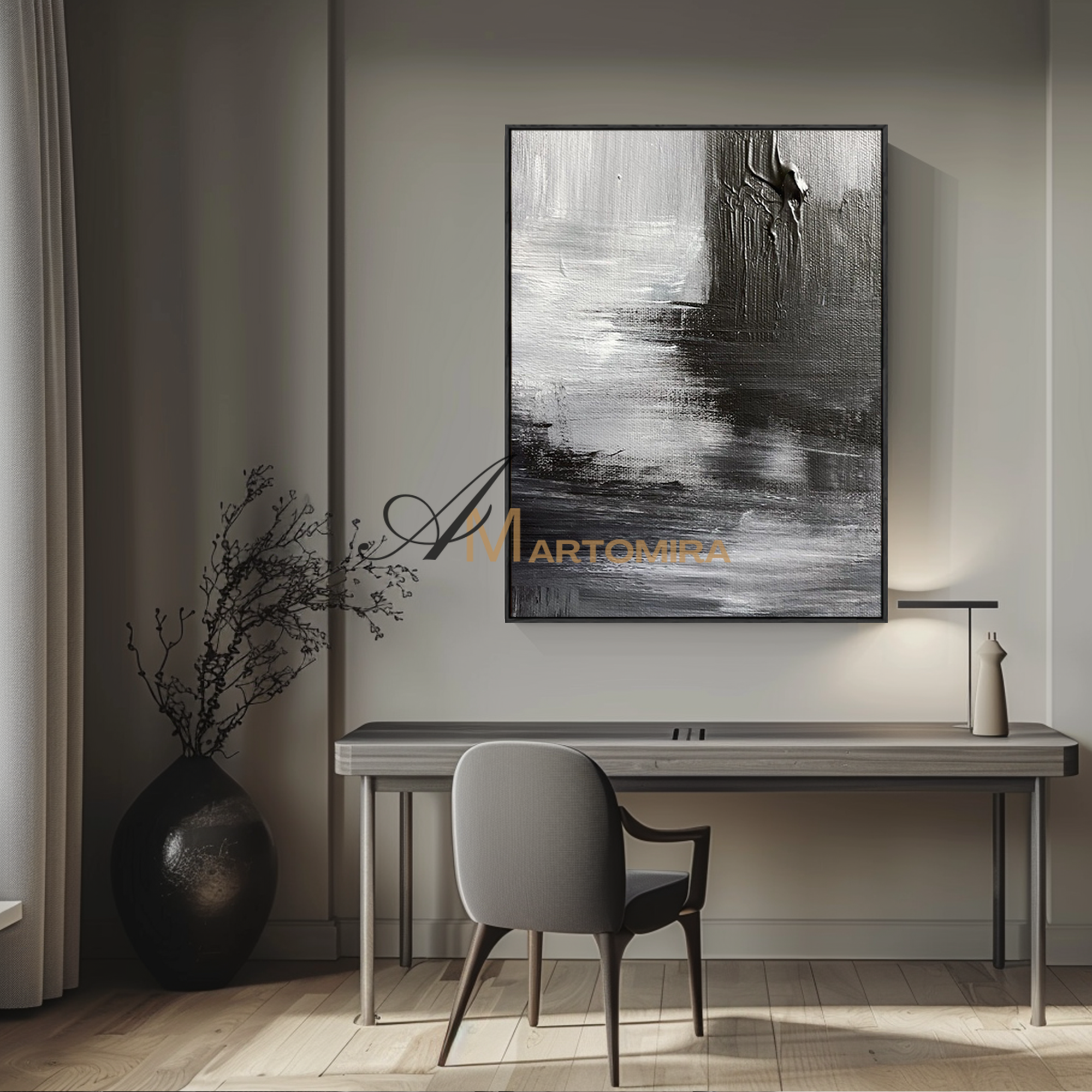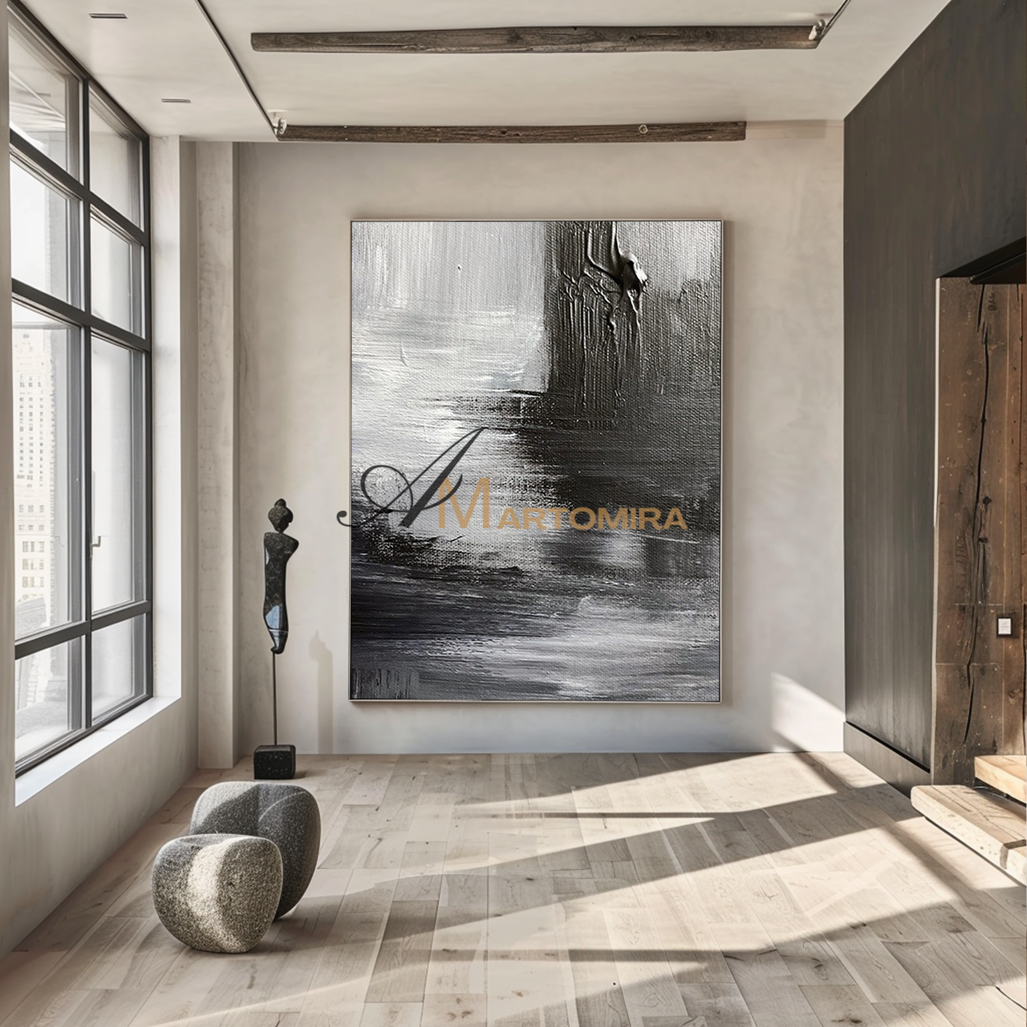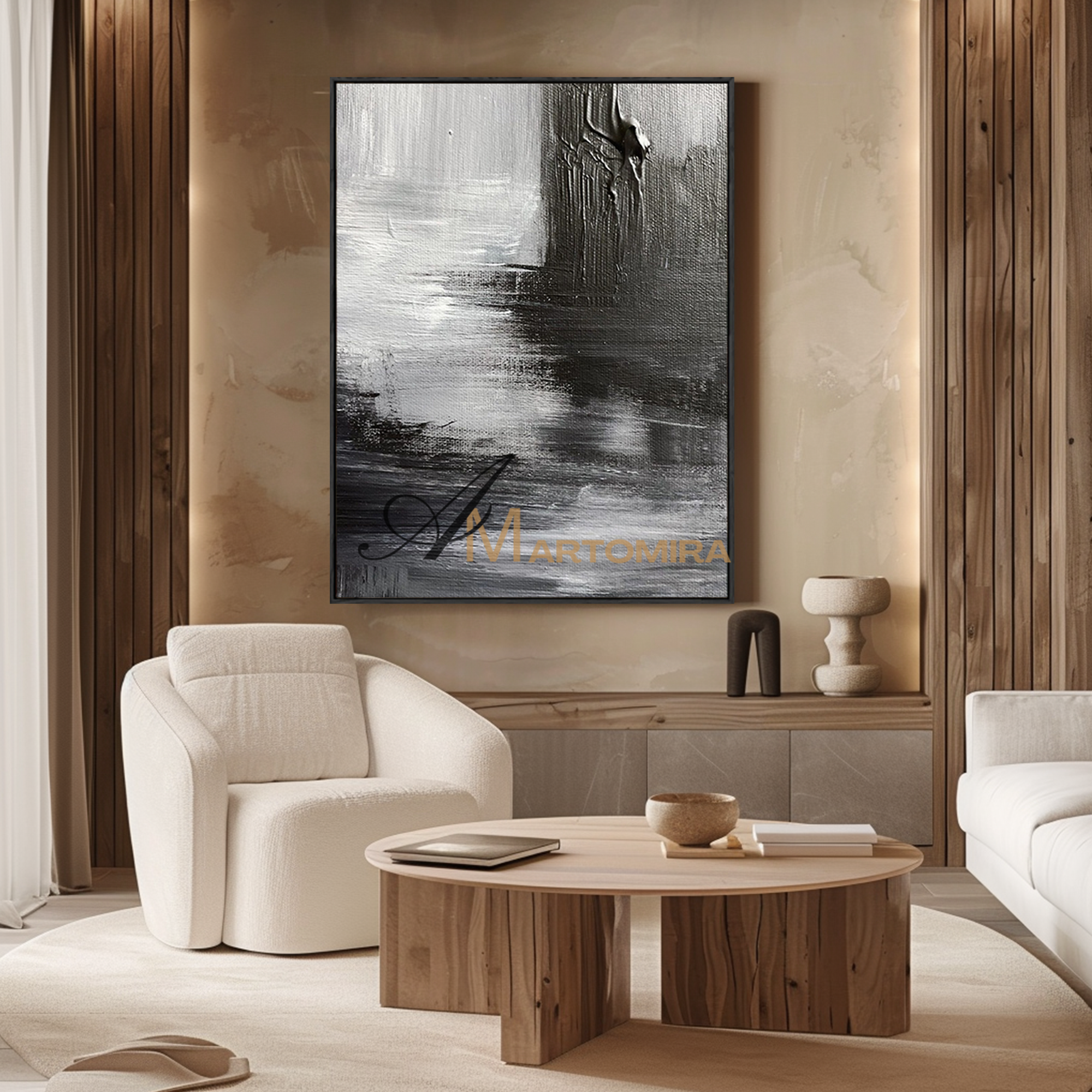 Enhance your interior with our contemporary hand-painted wall art, blending texture, form, and timeless style.