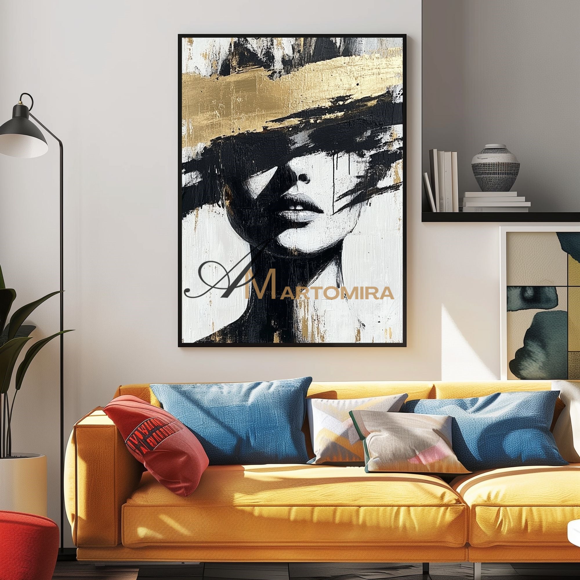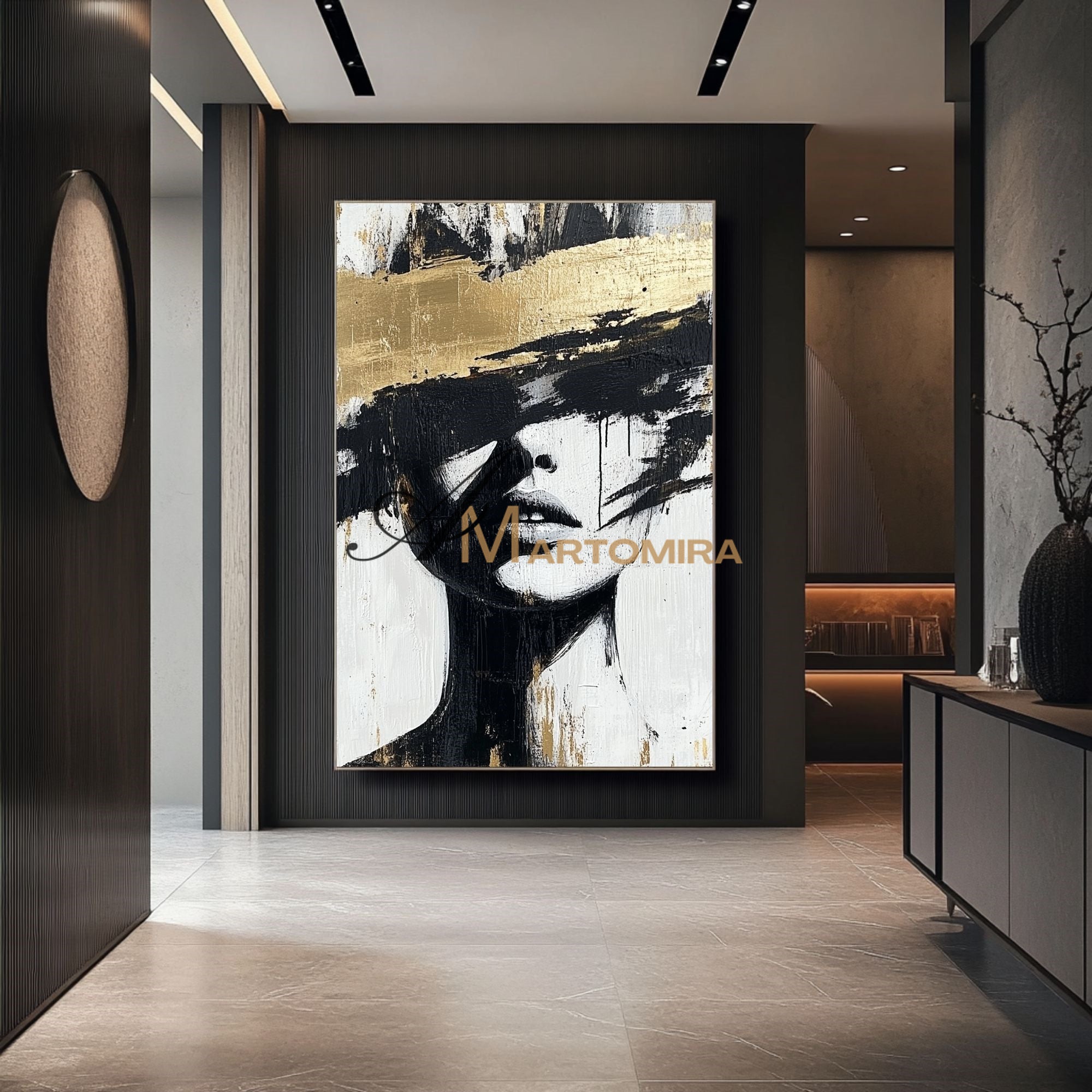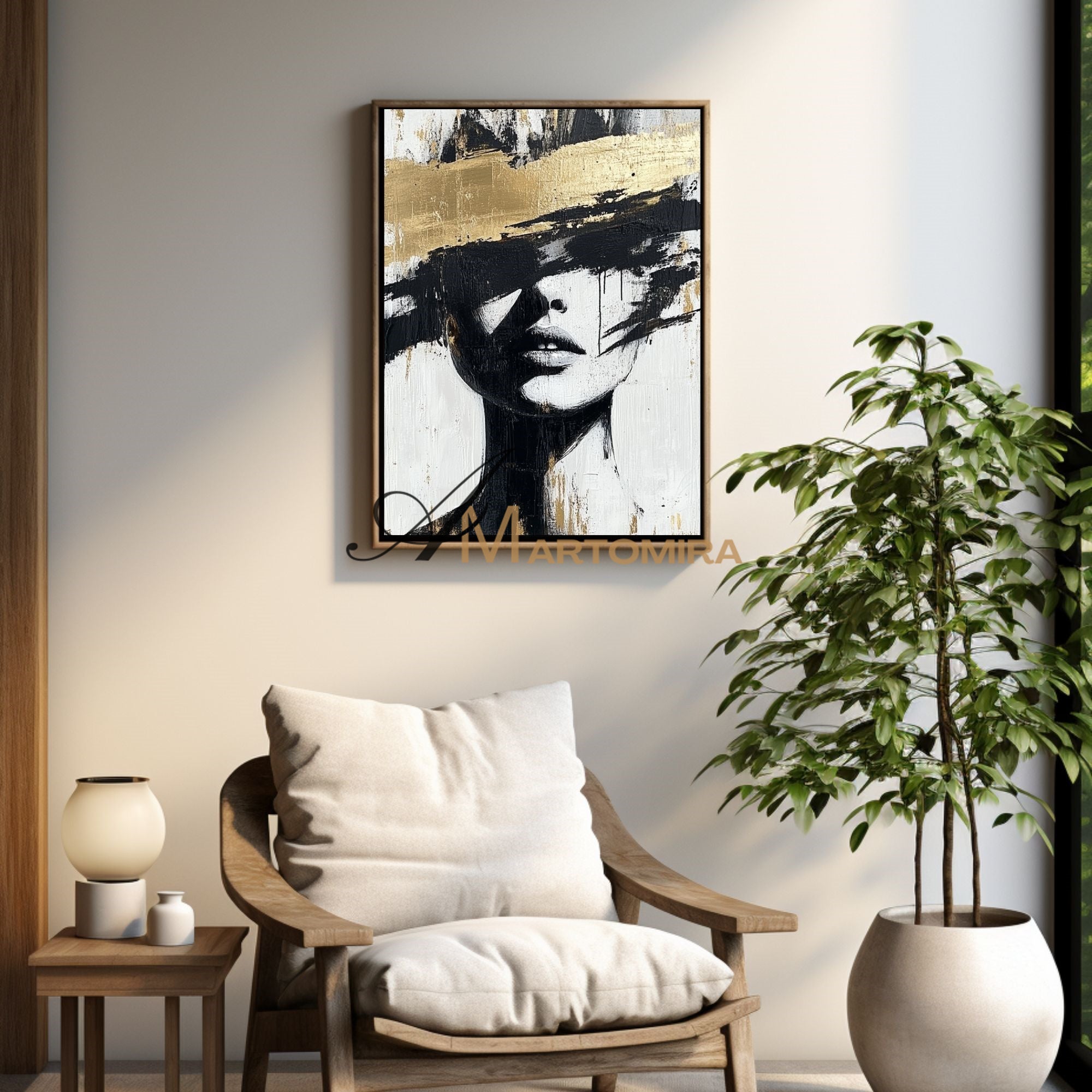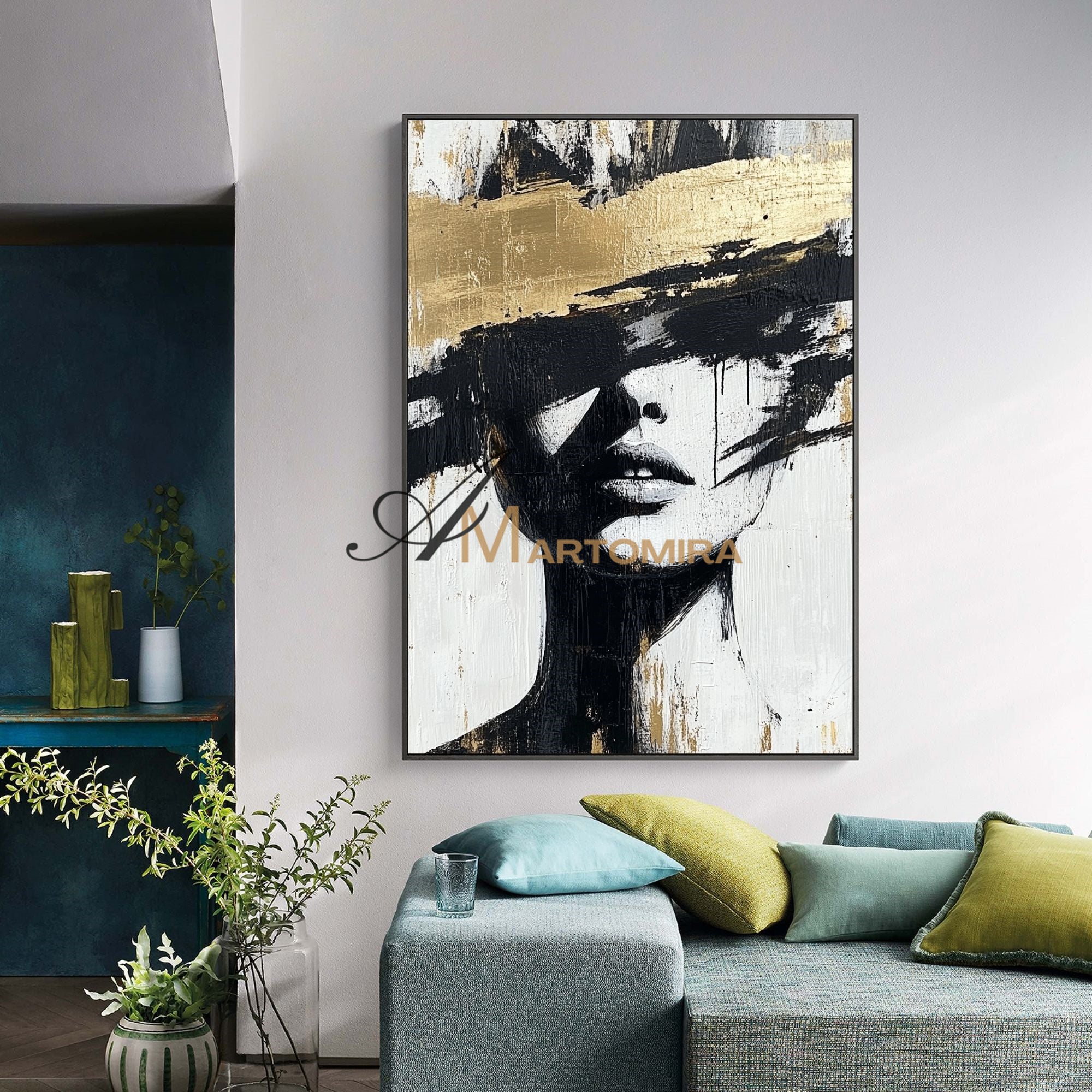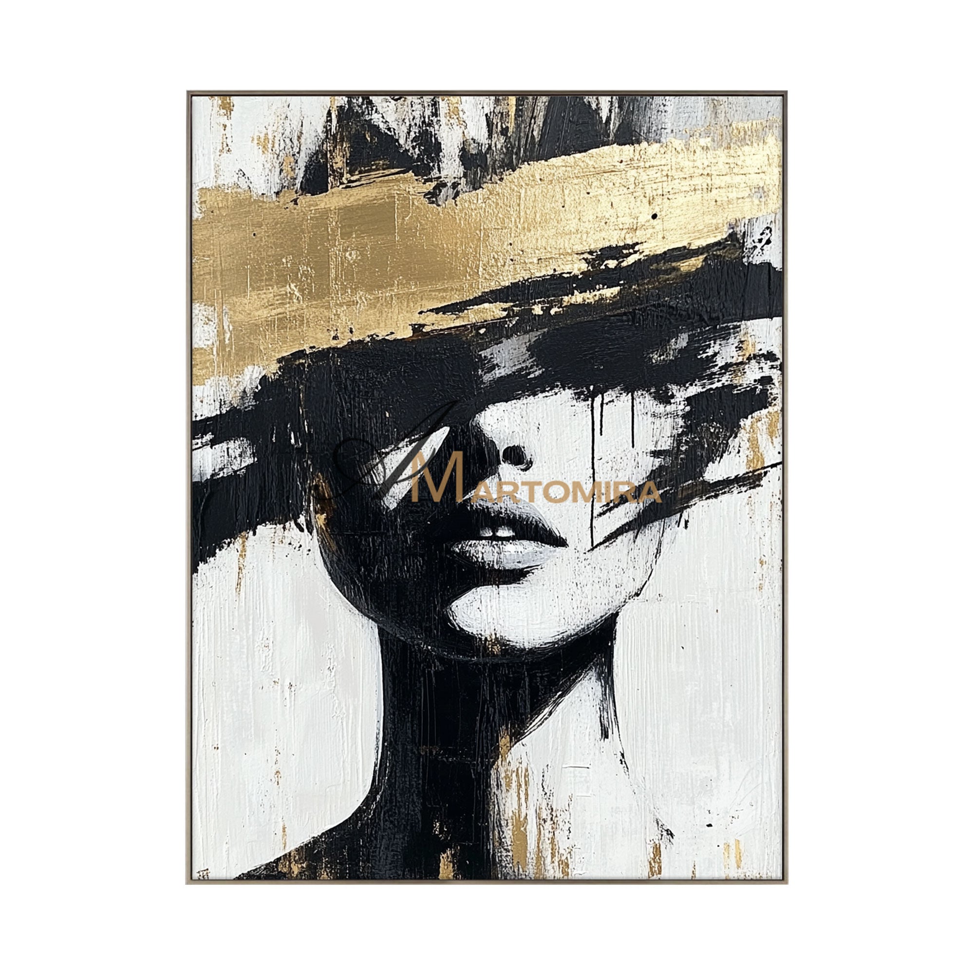 Abstraktes Gemälde einer Frau | Porträtmalerei | Gemälde einer Frau in Gold | Wandbild auf Leinwand #AP002