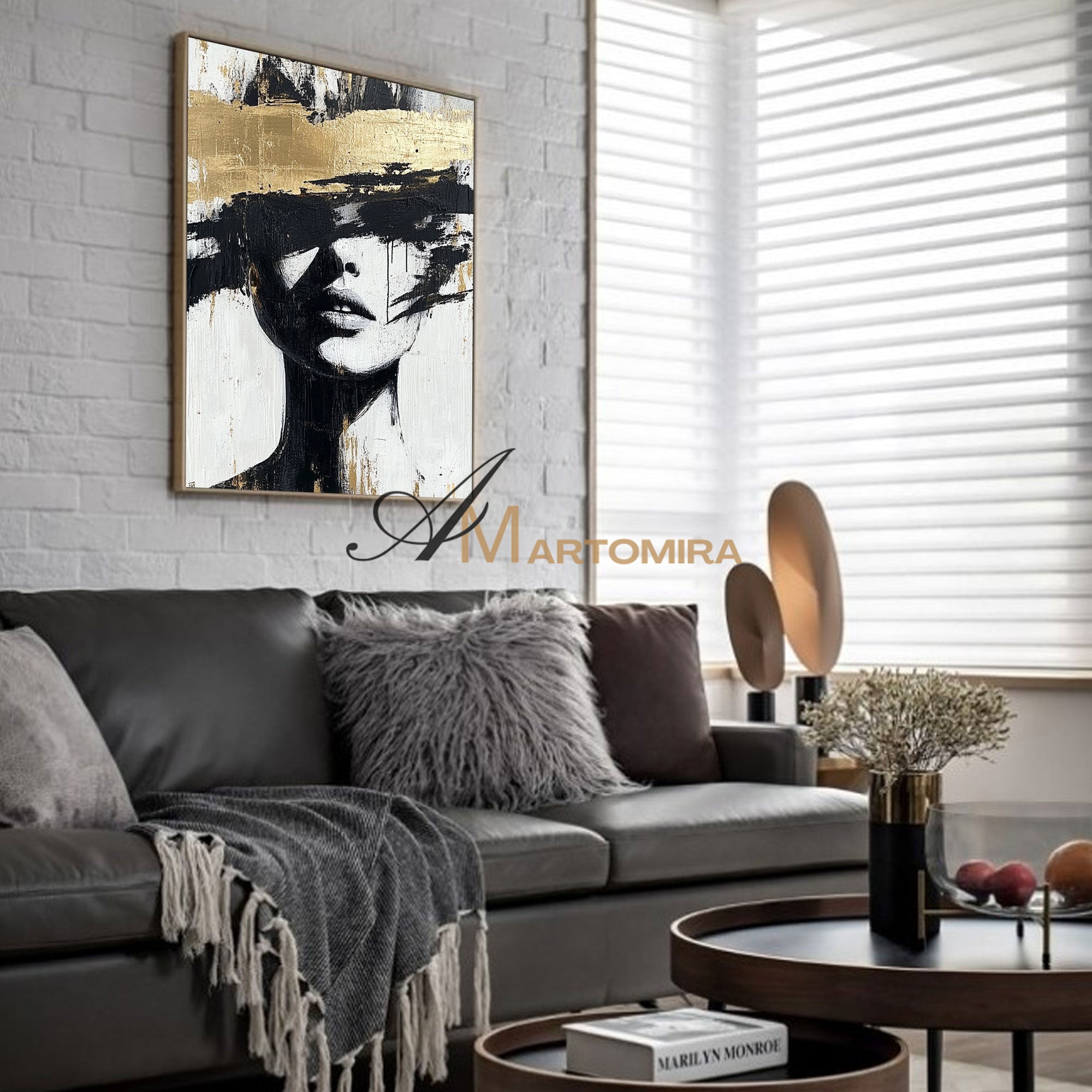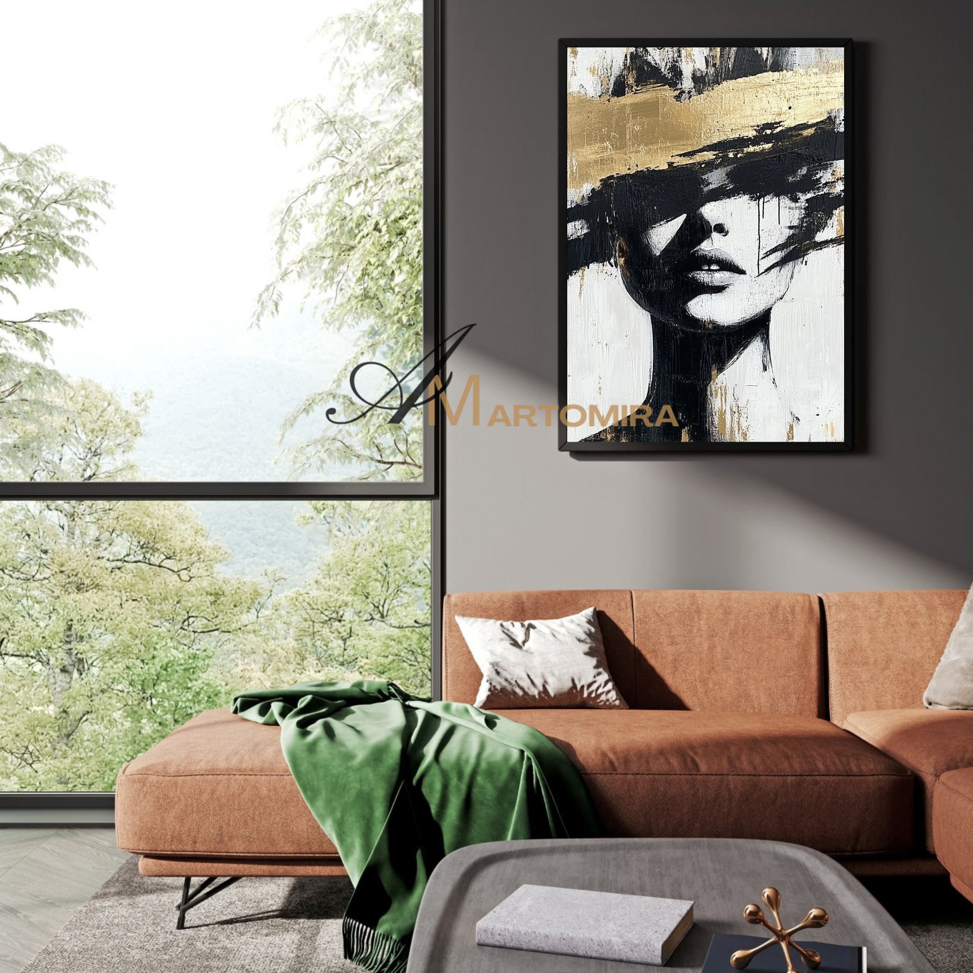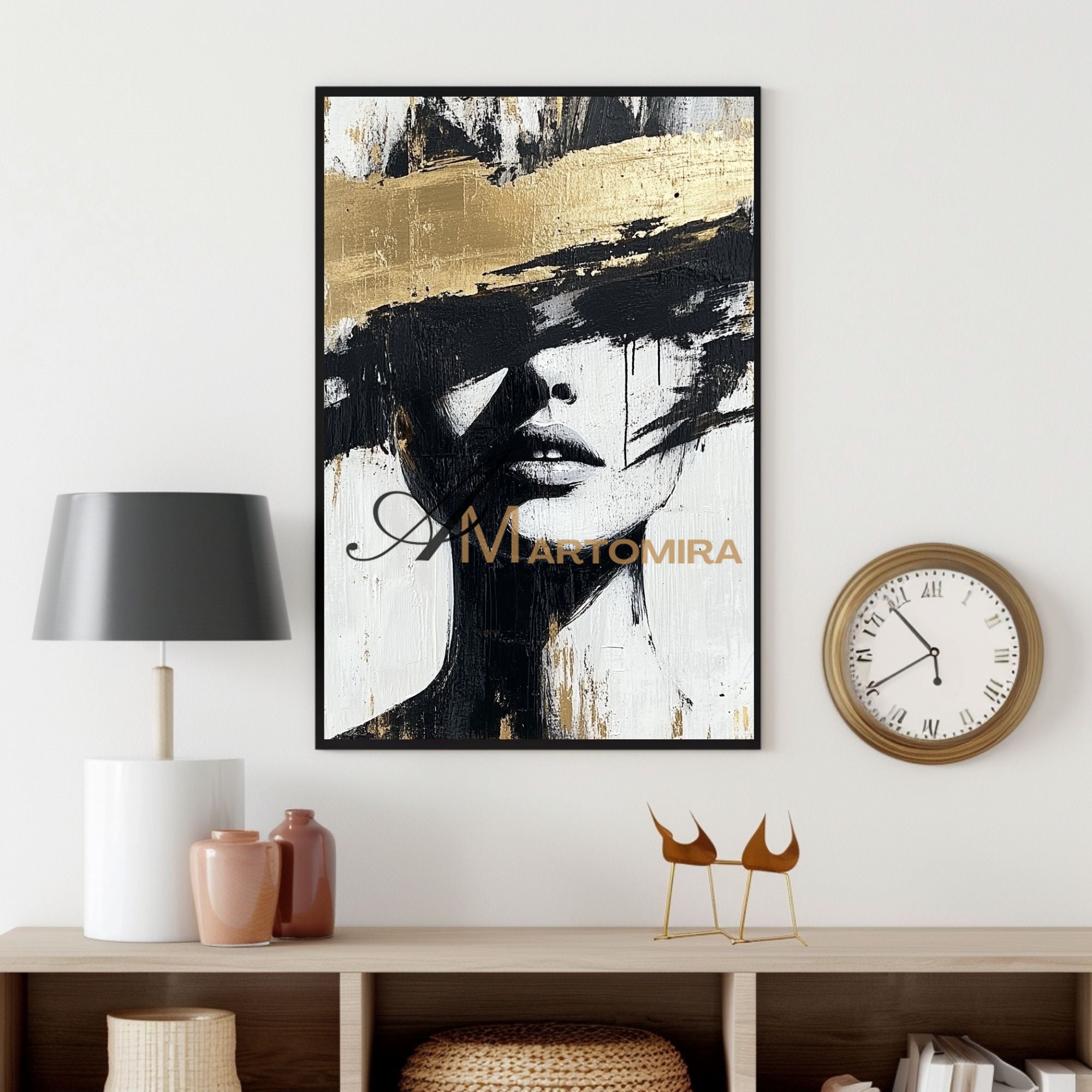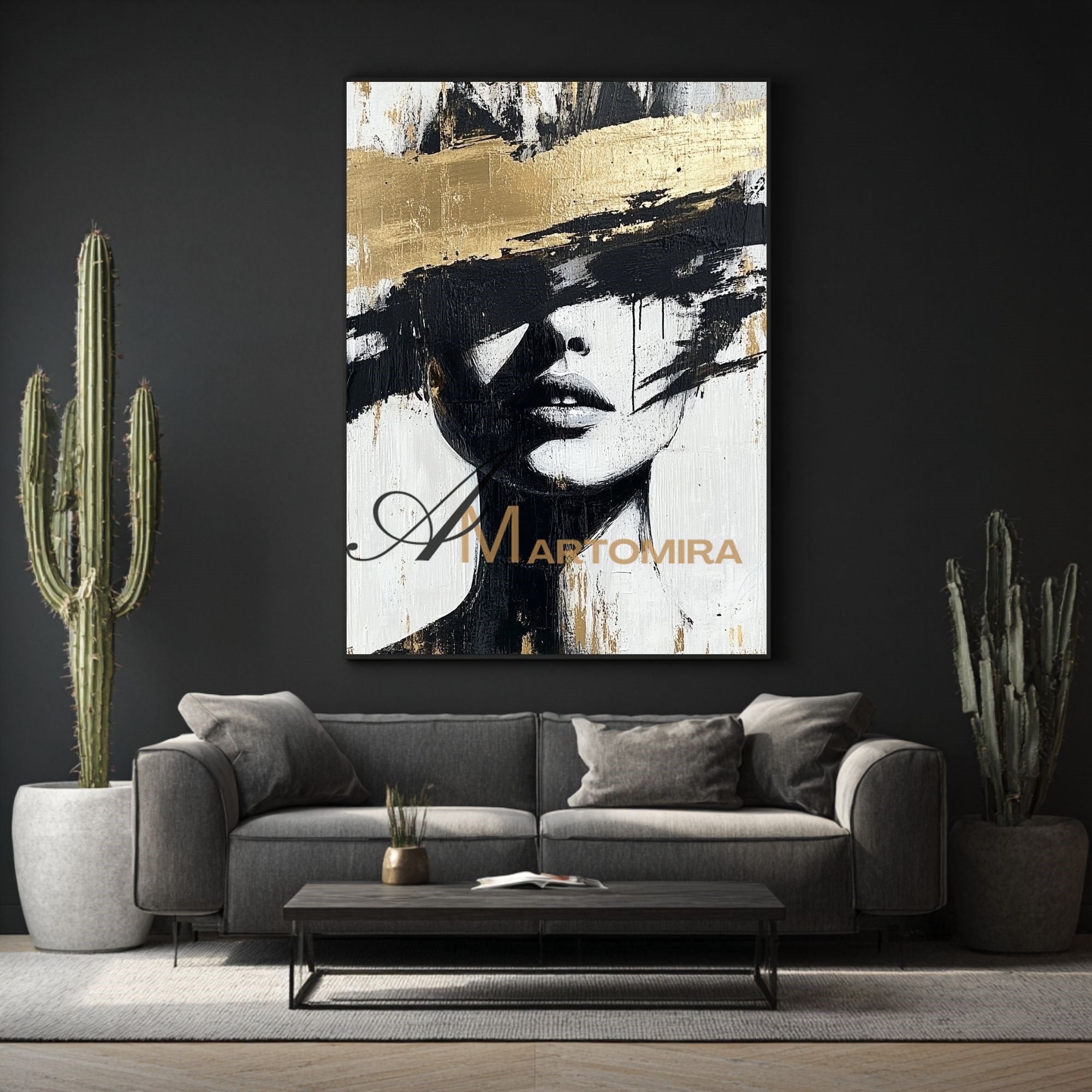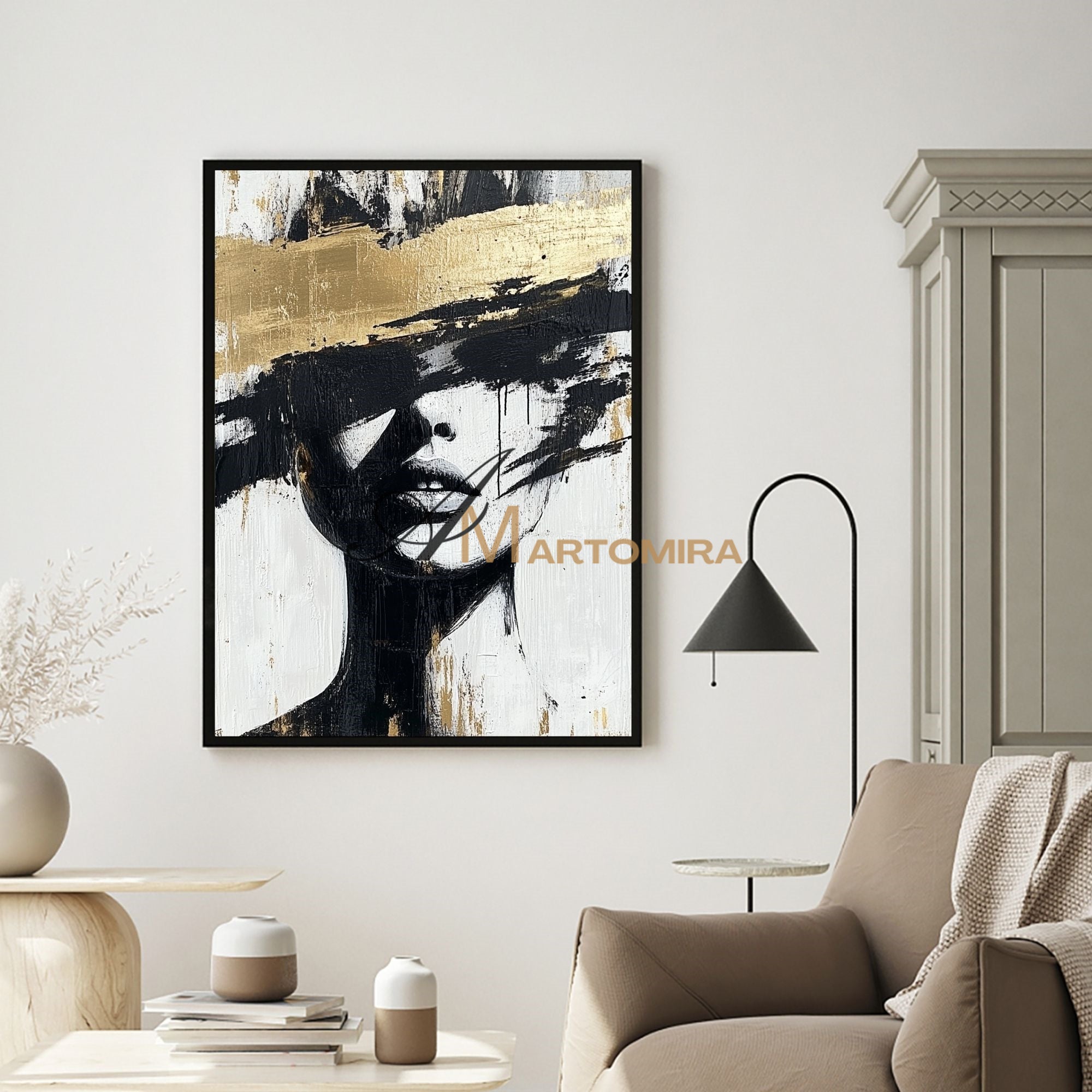 Abstraktes Gemälde einer Frau | Porträtmalerei | Gemälde einer Frau in Gold | Wandbild auf Leinwand #AP002