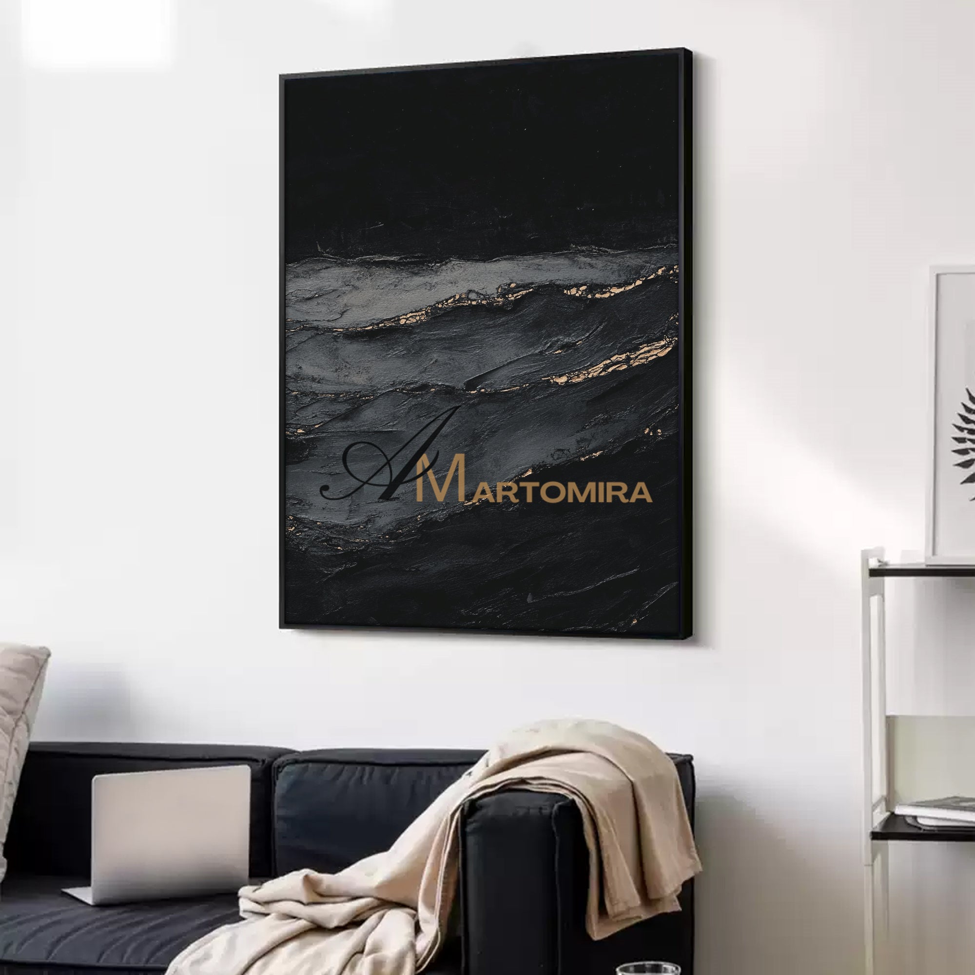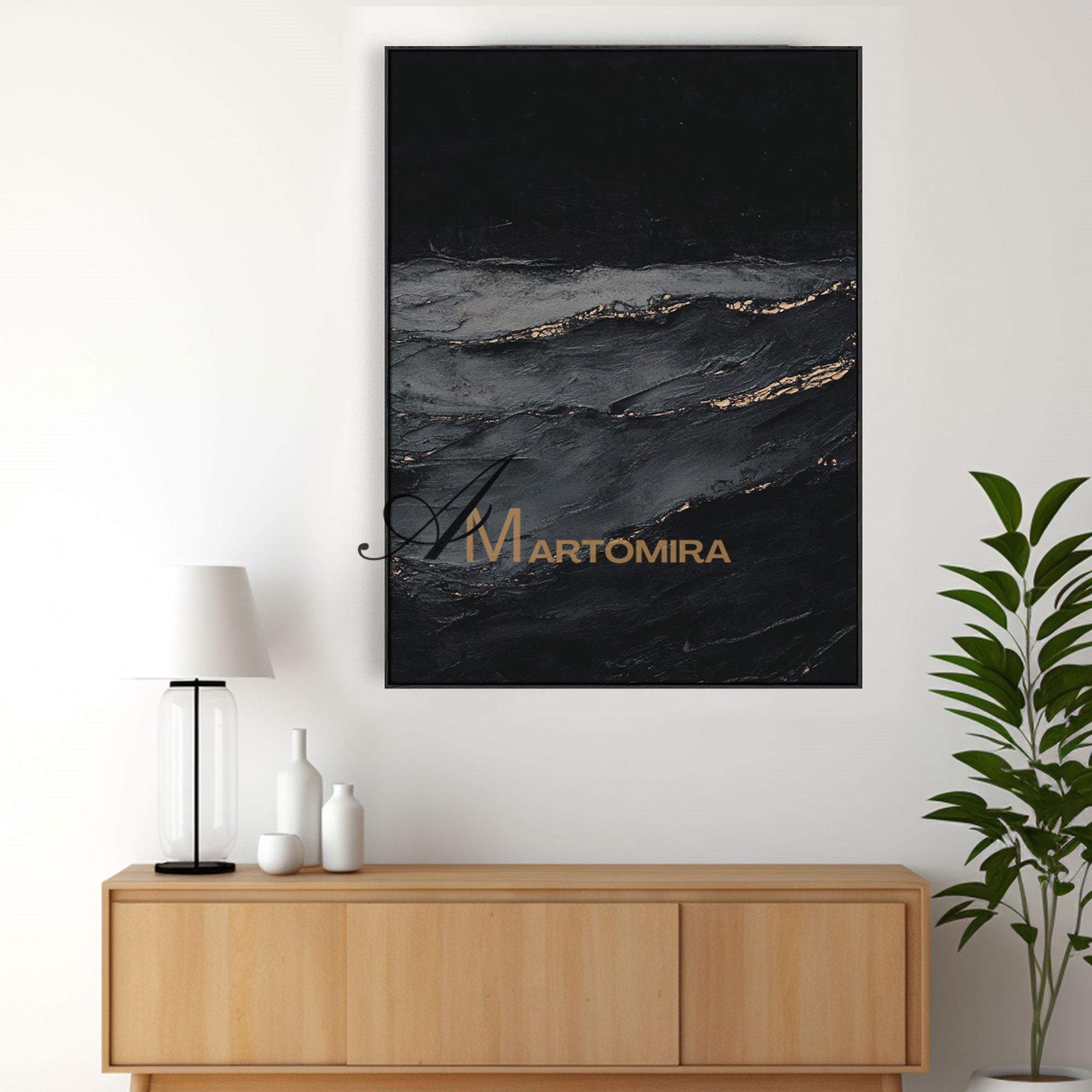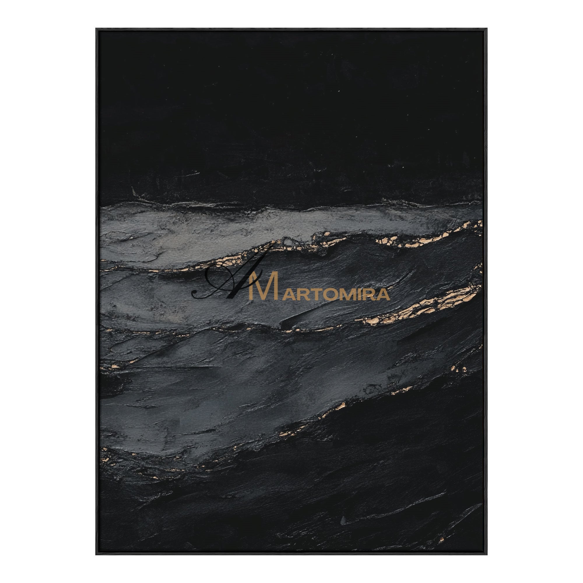 Schwarze Strukturkunst | Ozean-Wandbild | Abstraktes Wellenbild | Großes abstraktes Landschafts-Wandbild #POS060