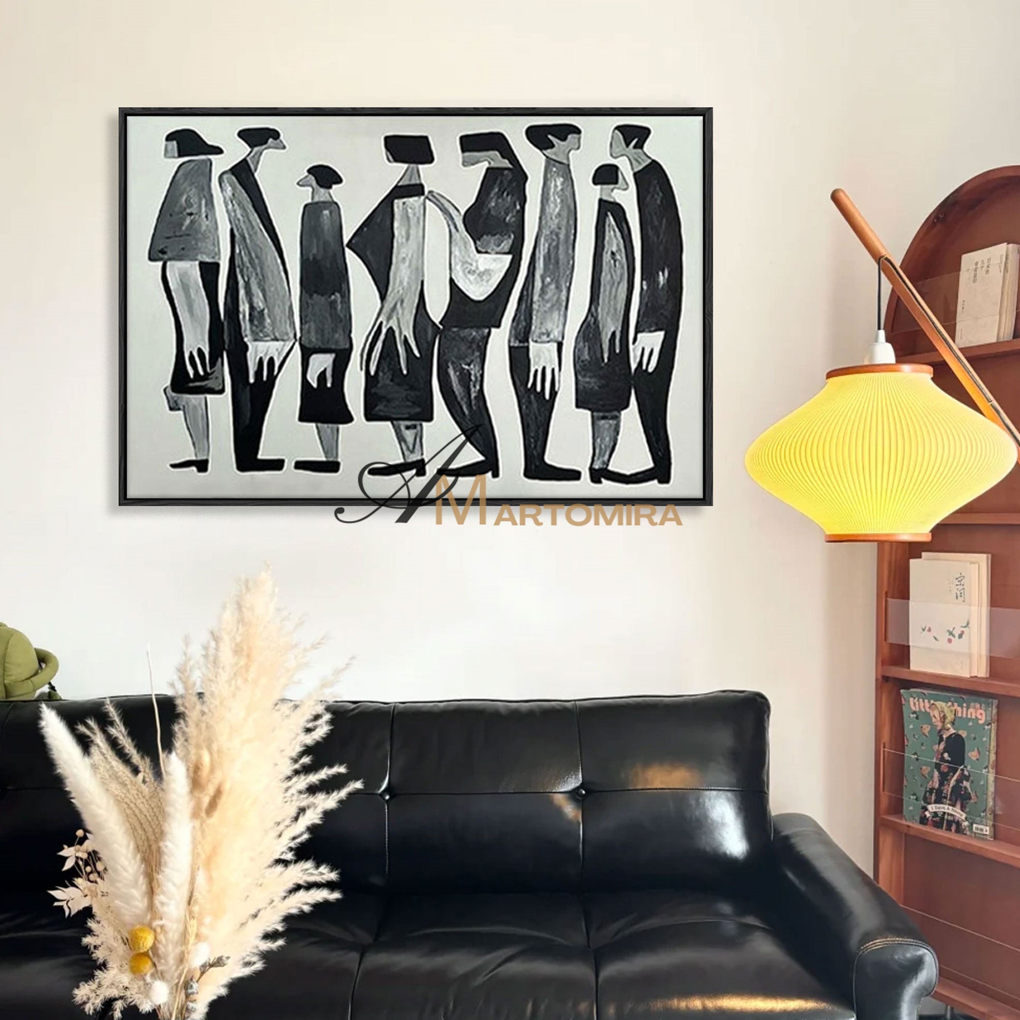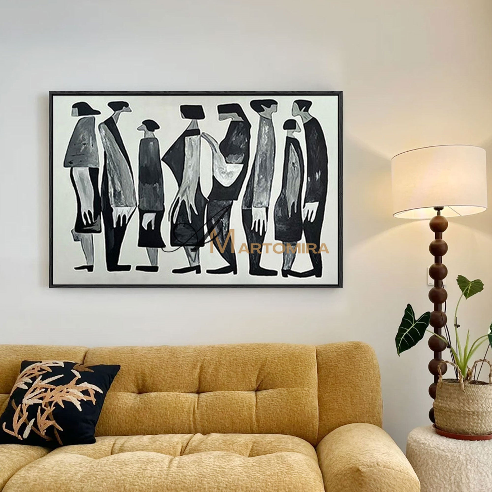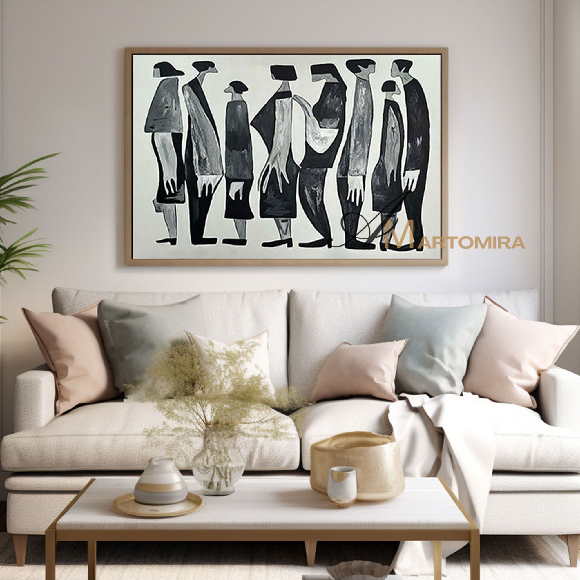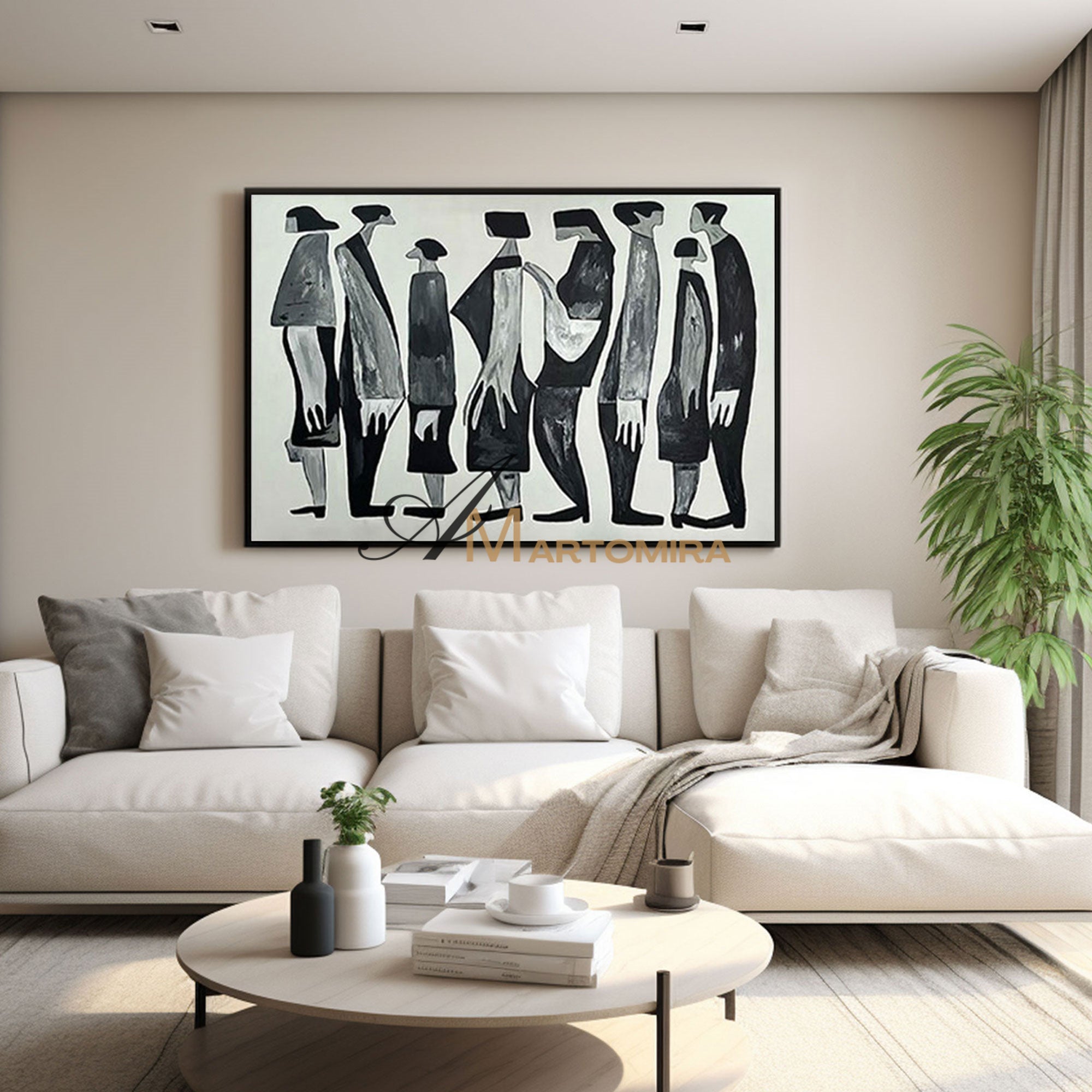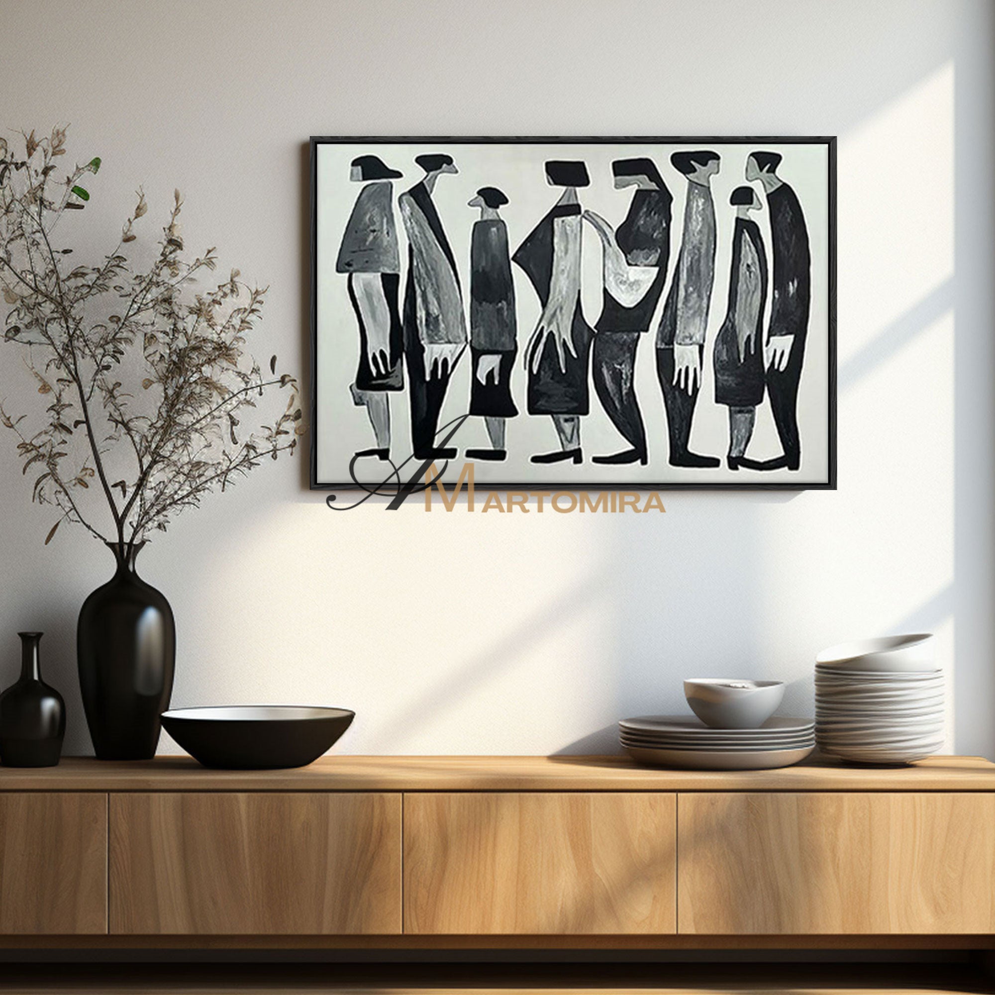Moderne Wanddekoration | Schwarz-Weiß-Wandkunst | Abstrakte Porträtmalerei | Gemälde im Picasso-Stil #MF006