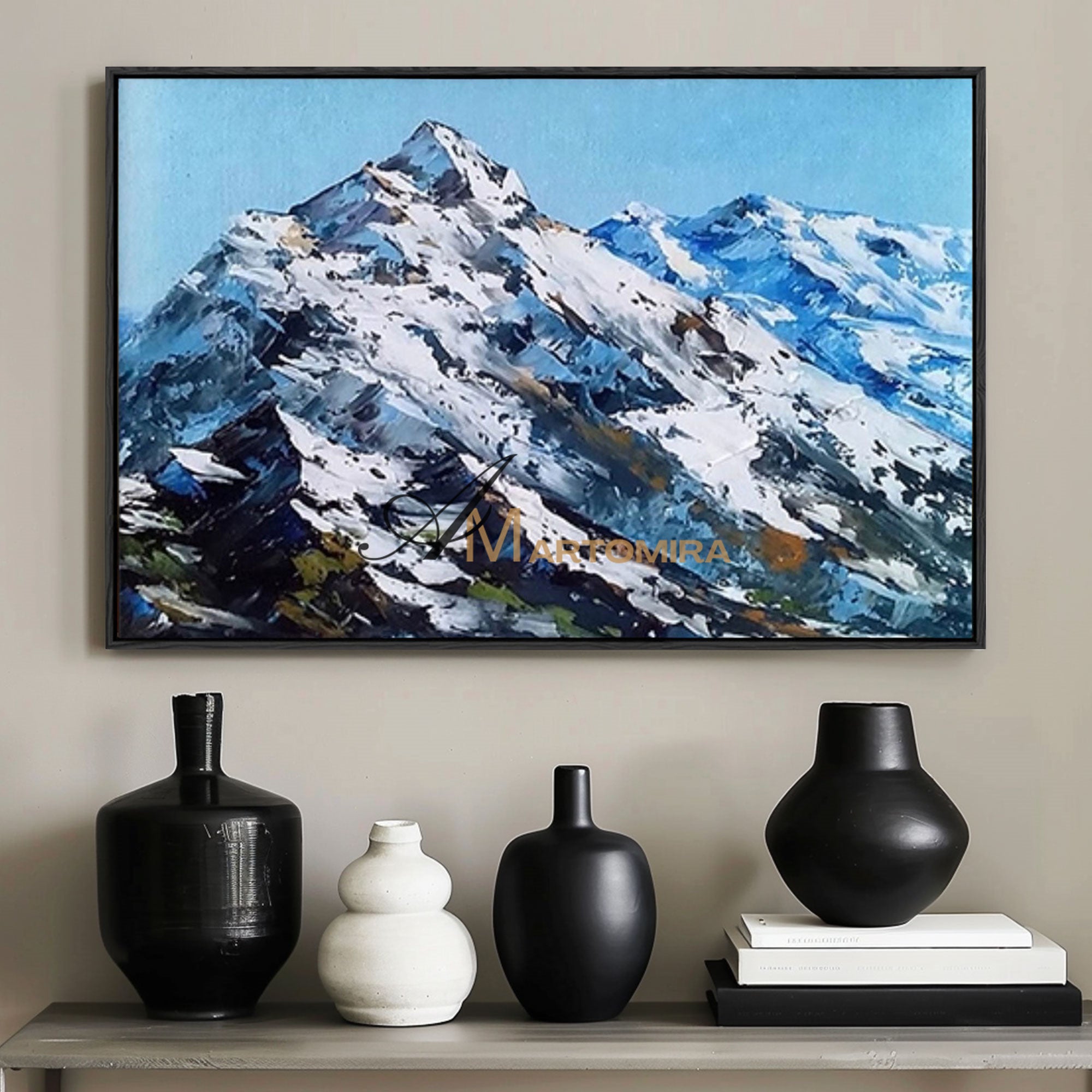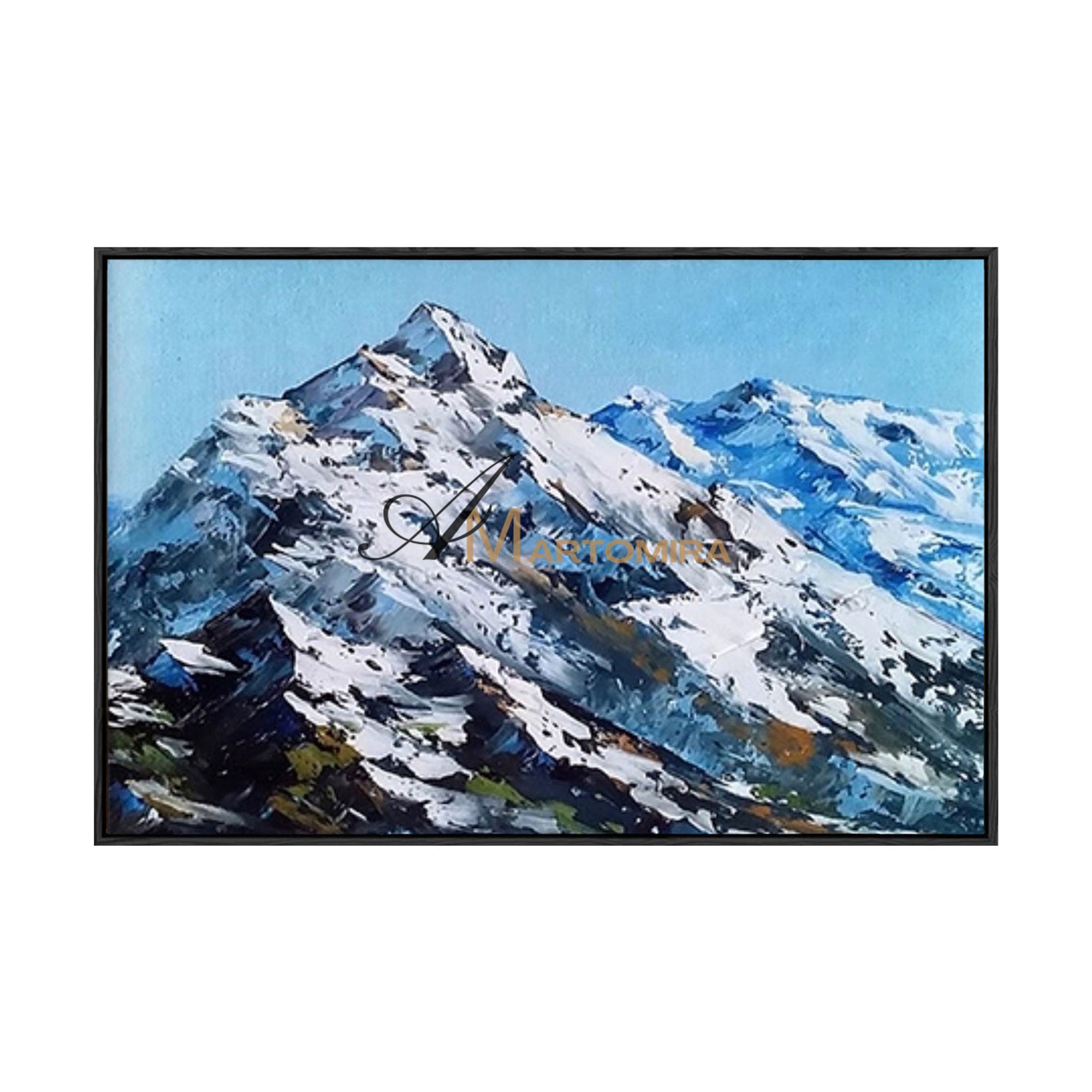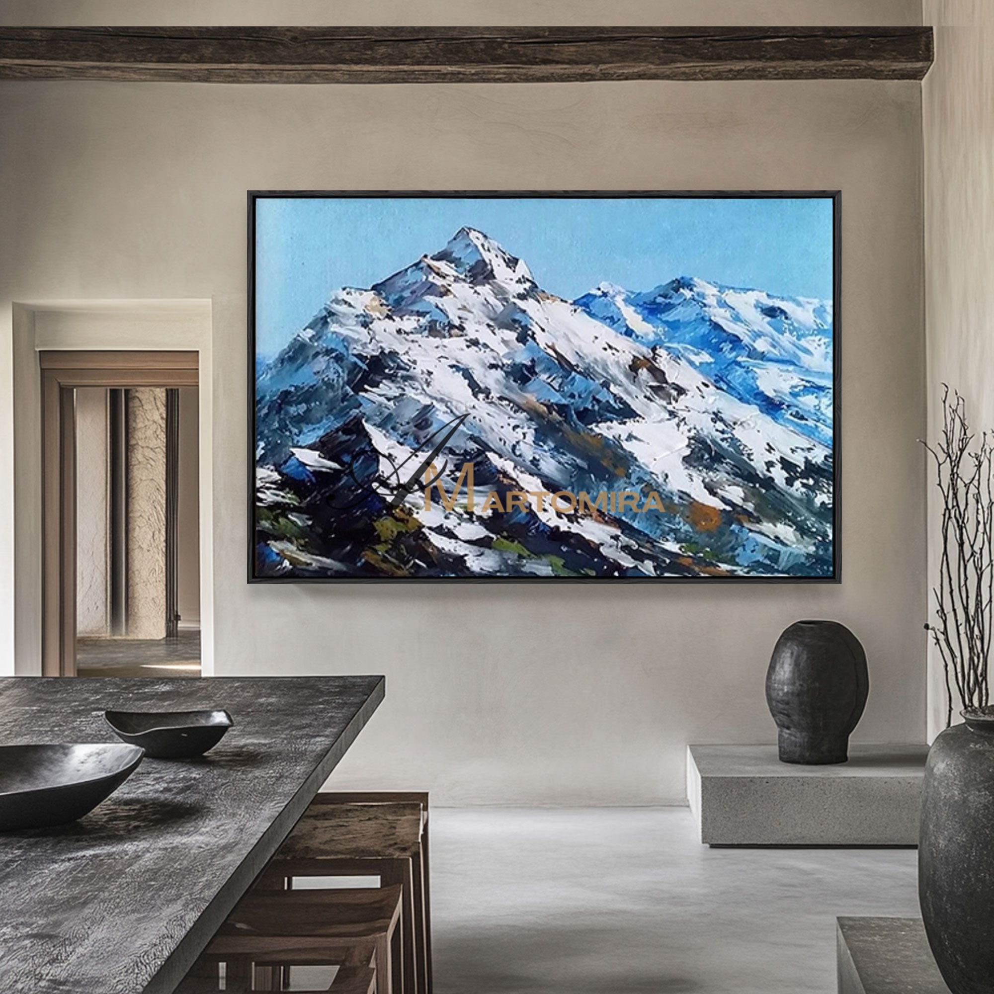 Abstrakte Landschaftsmalerei | Bergwandbild | Schneebedecktes Bergbild | Blaues Wandbild #MF033
