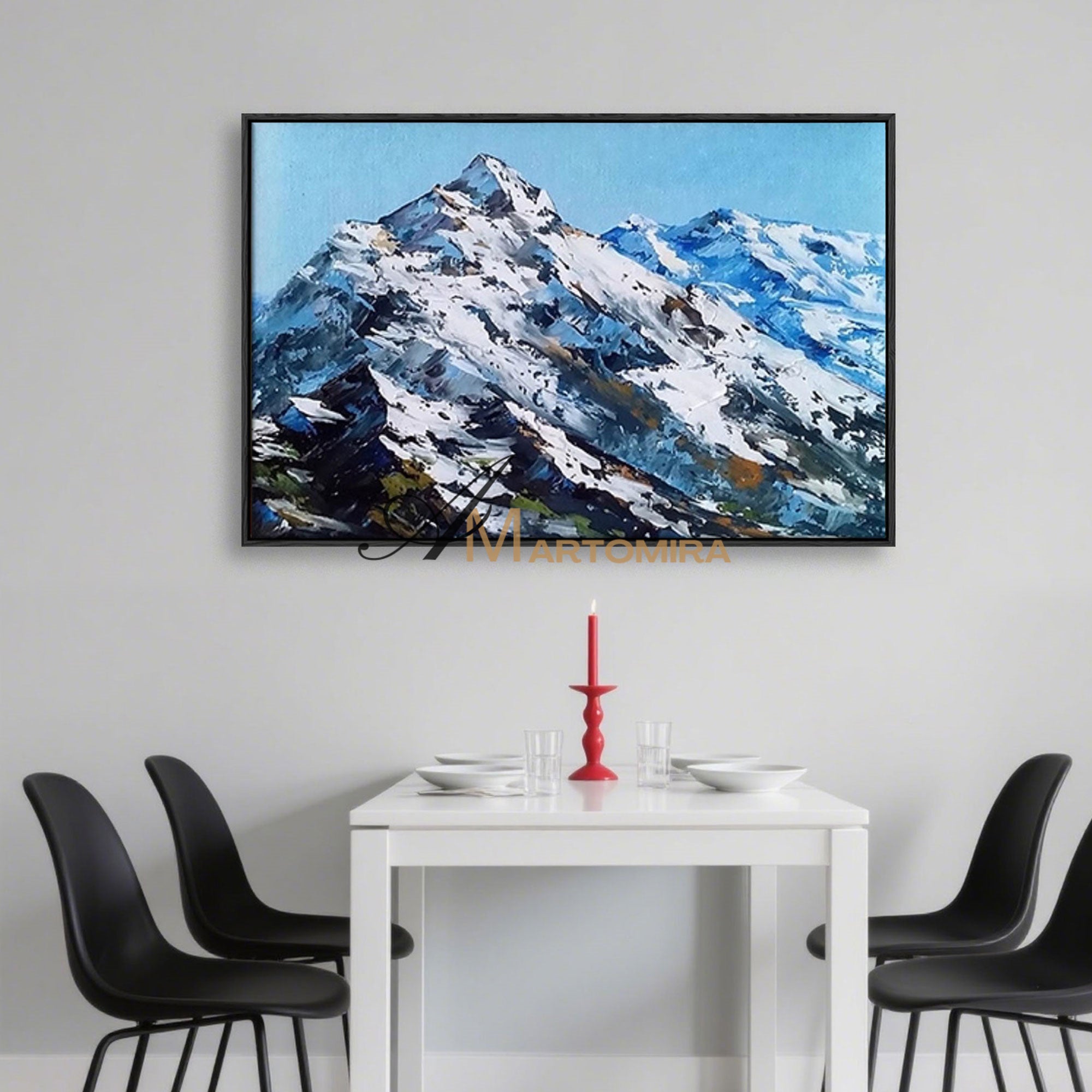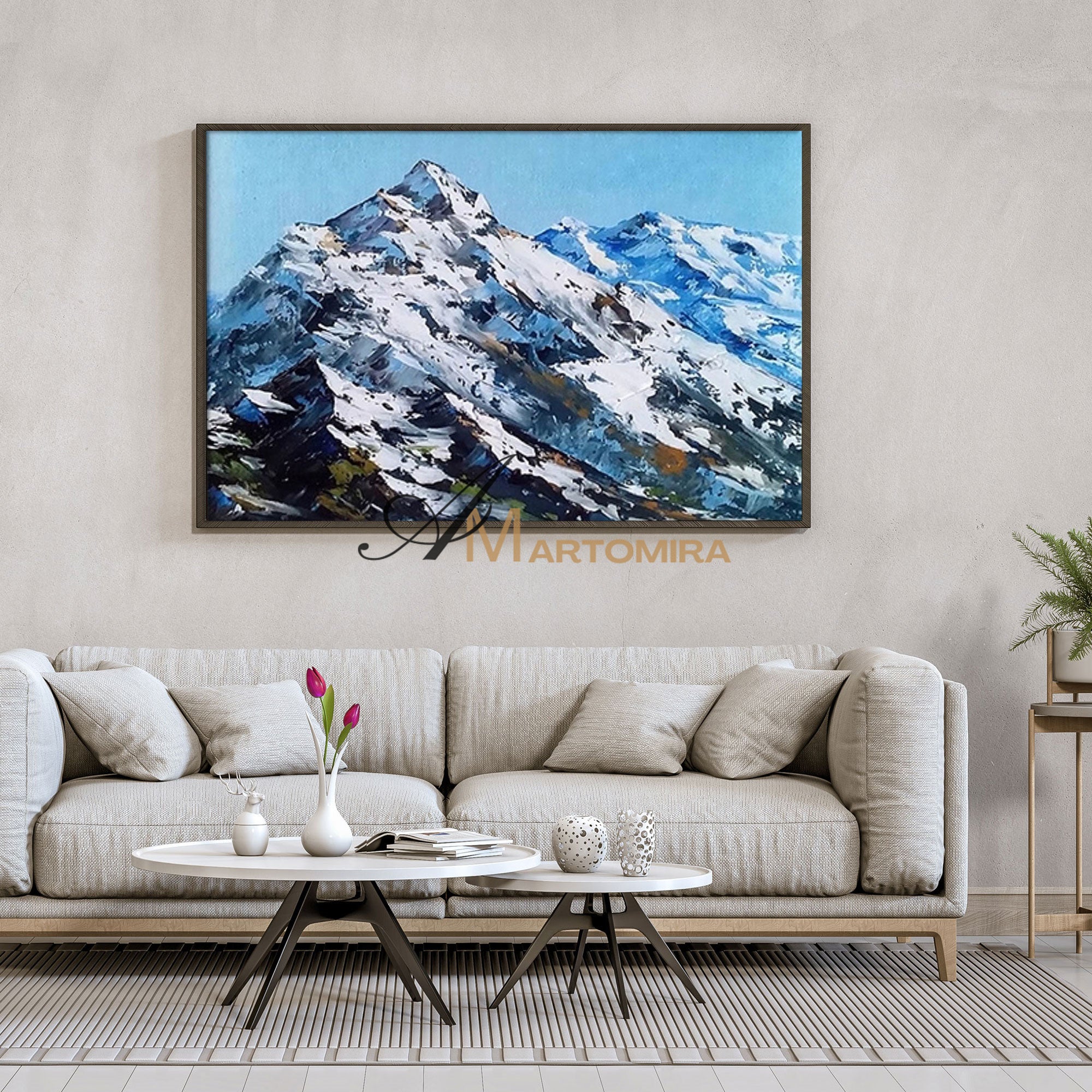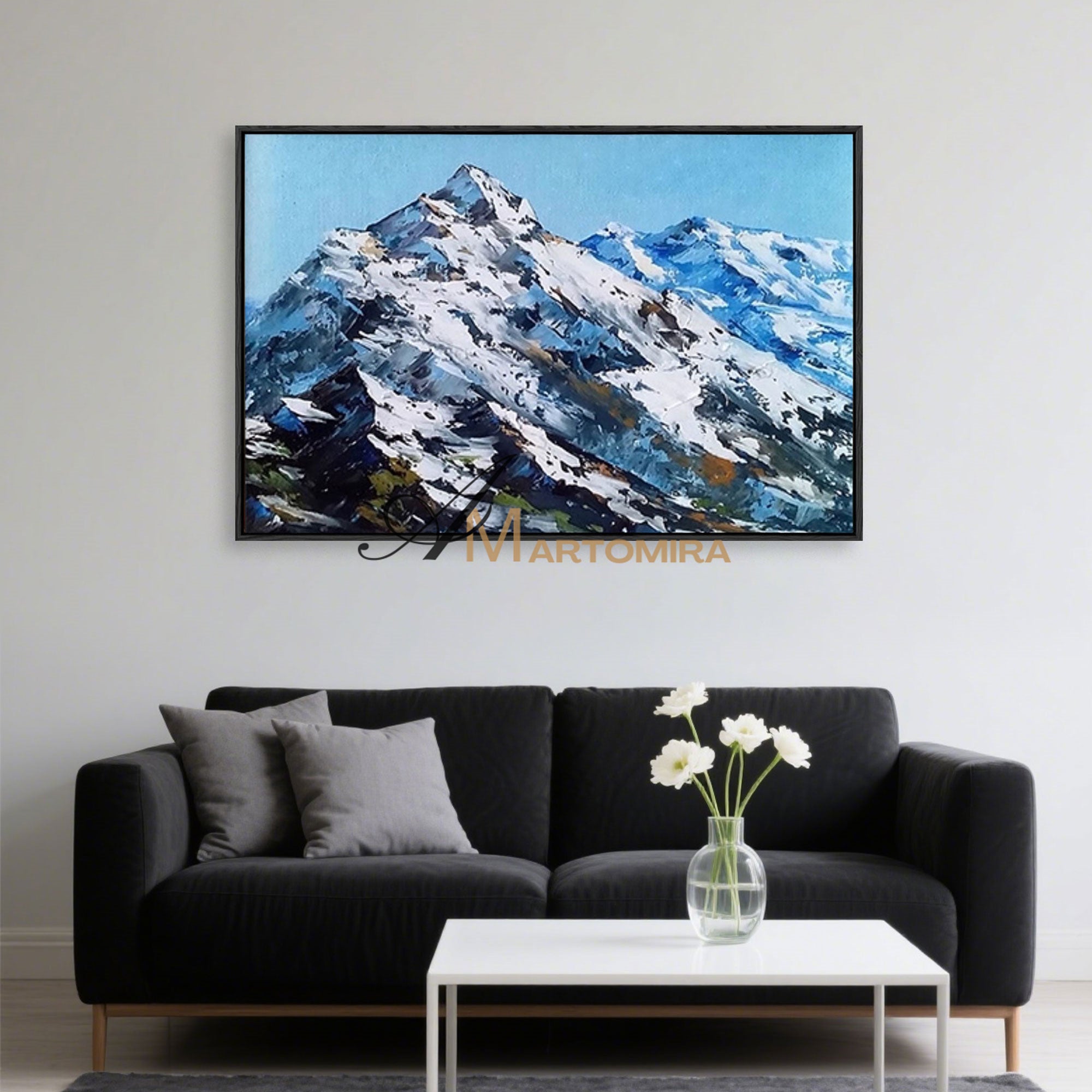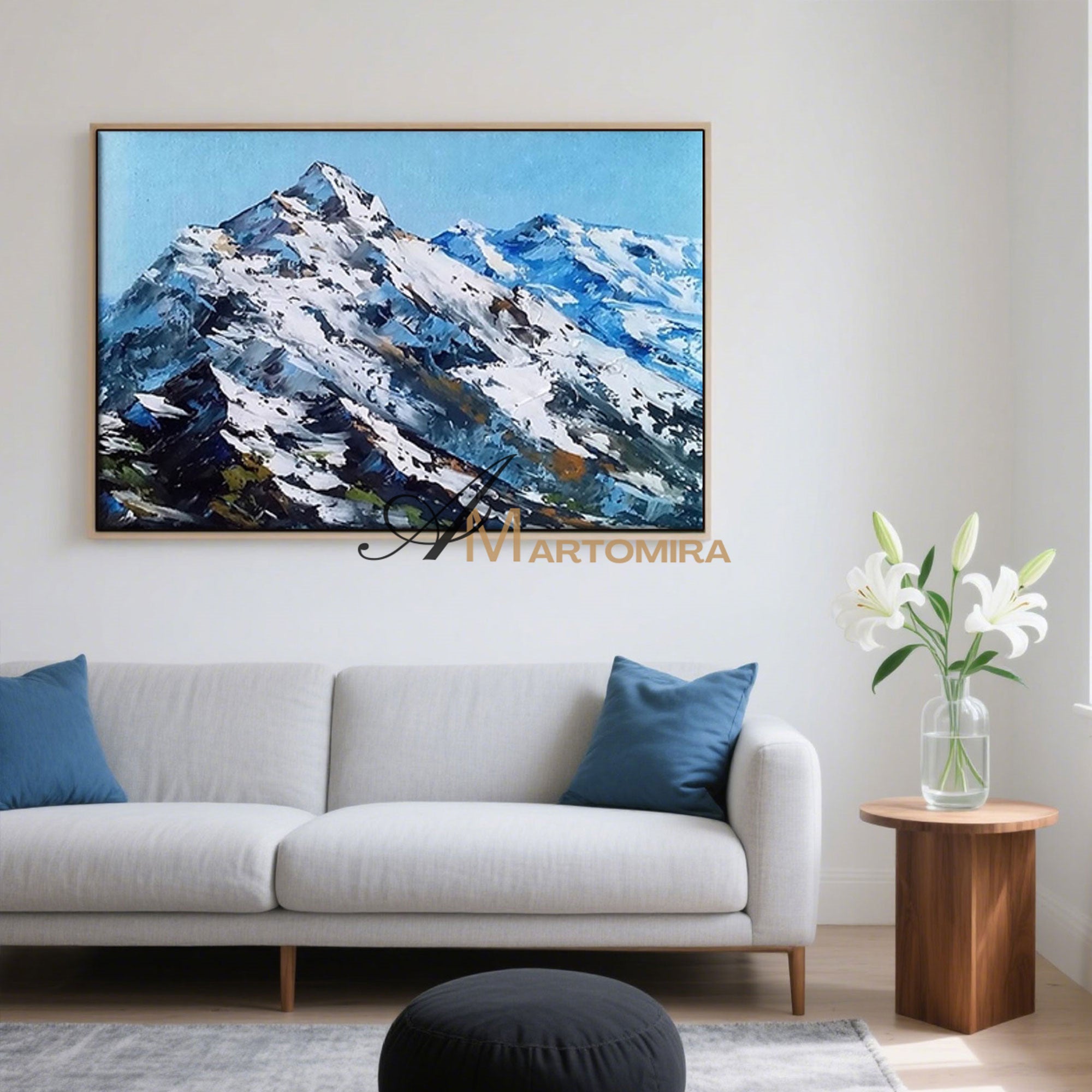 Abstrakte Landschaftsmalerei | Bergwandbild | Schneebedecktes Bergbild | Blaues Wandbild #MF033