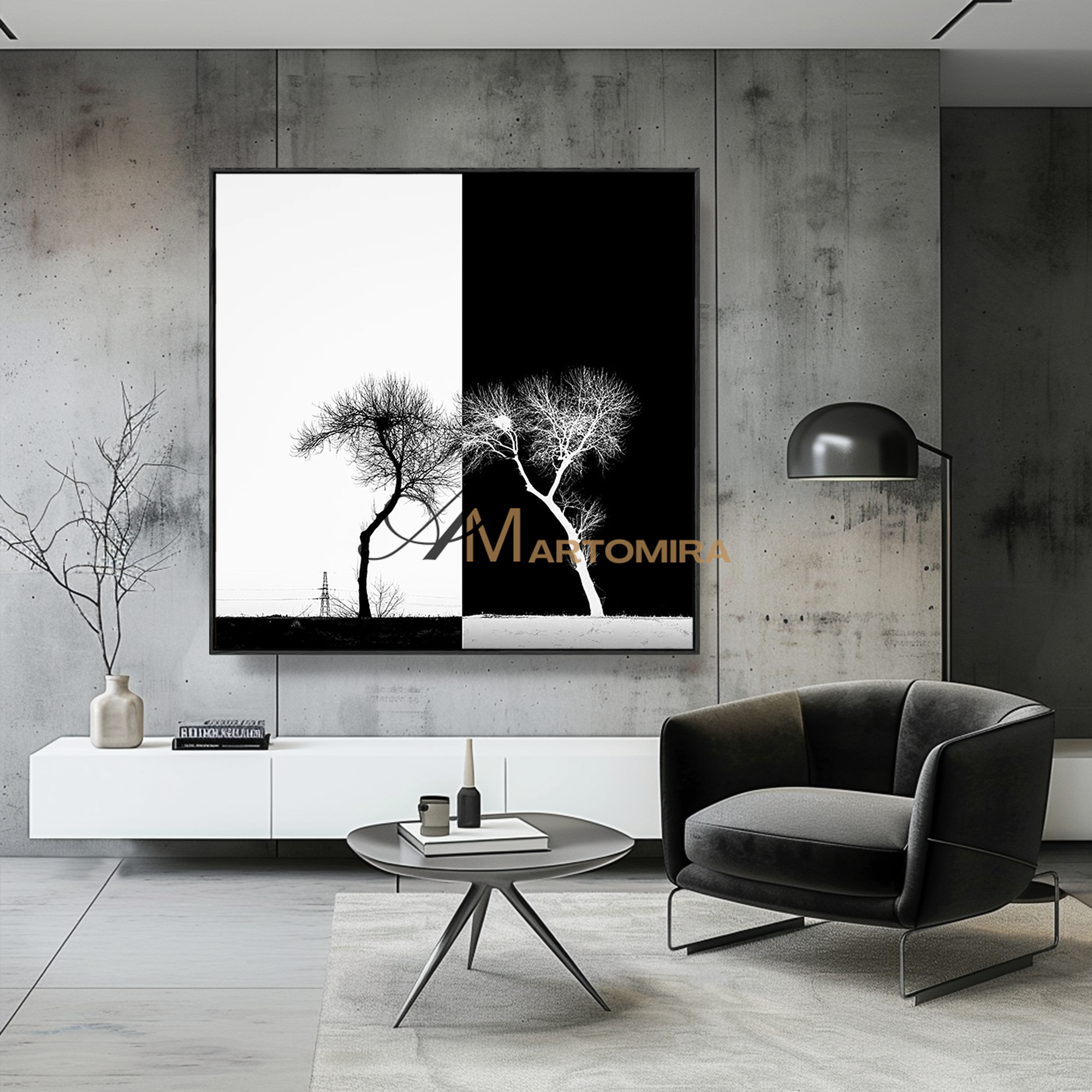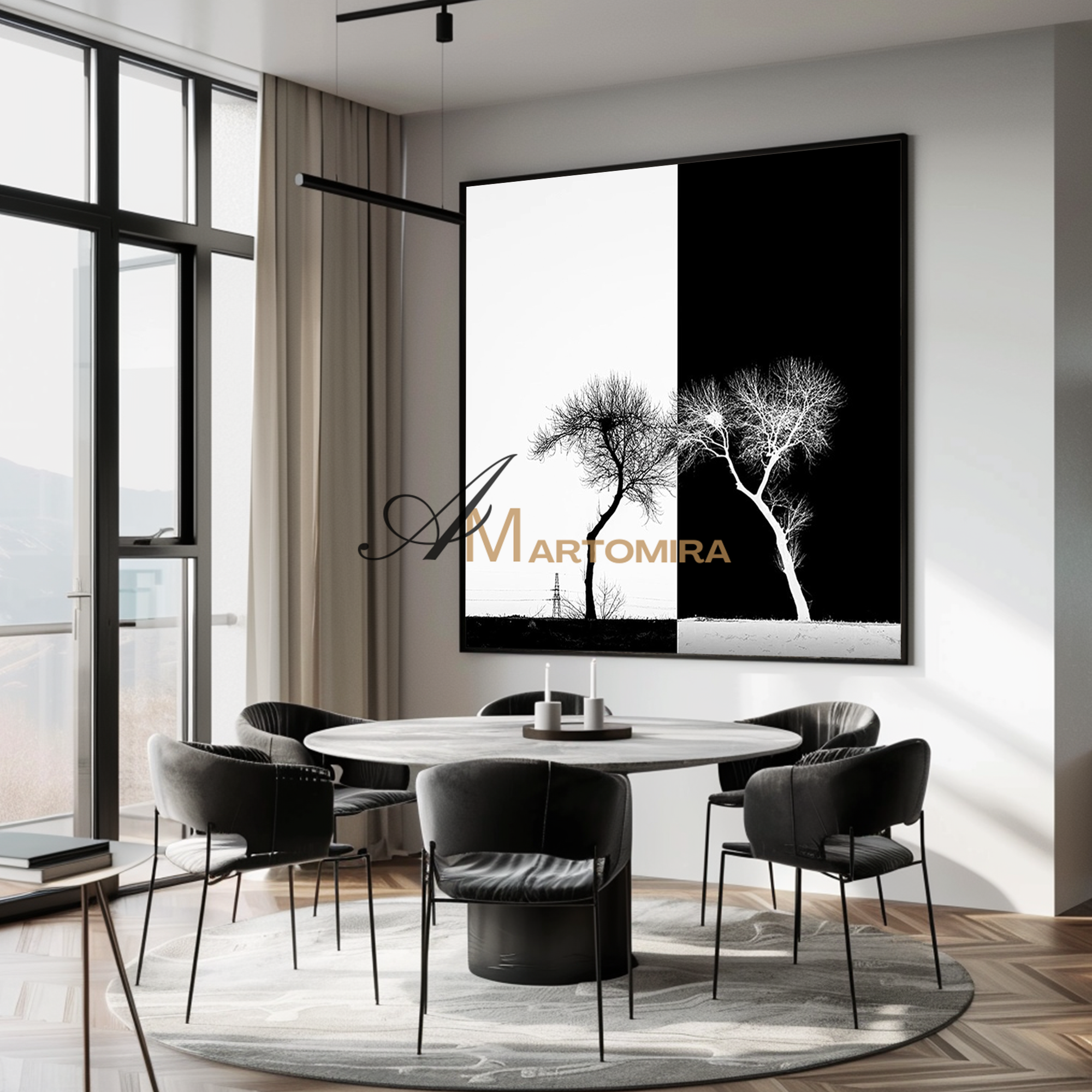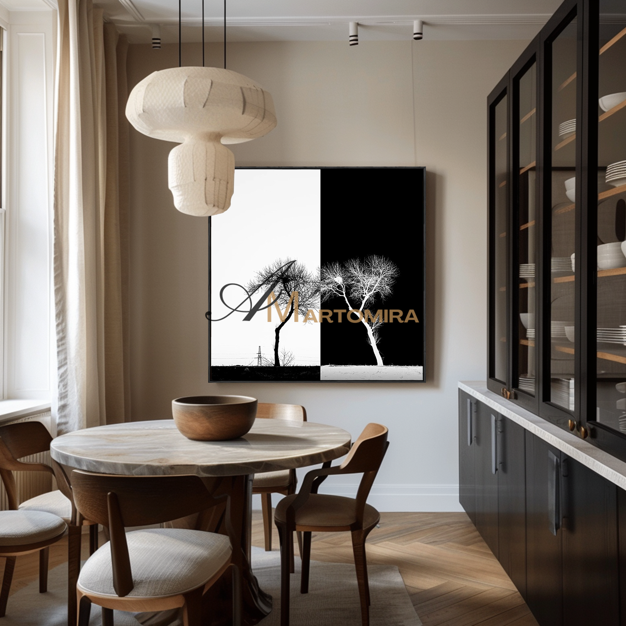 Malen des Baumes | Schwarz-Weiß-Wandkunst | Großformatige minimalistische Wandkunst | Moderne Kunst #MF127