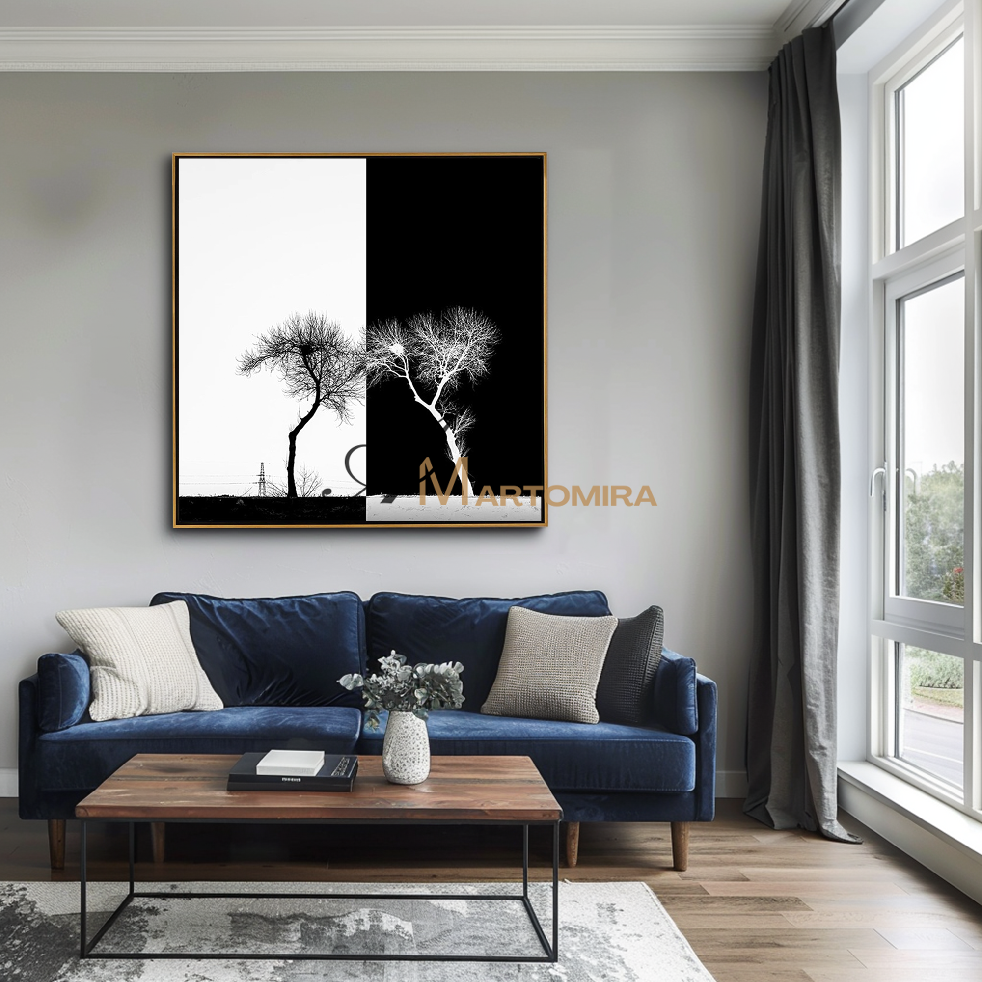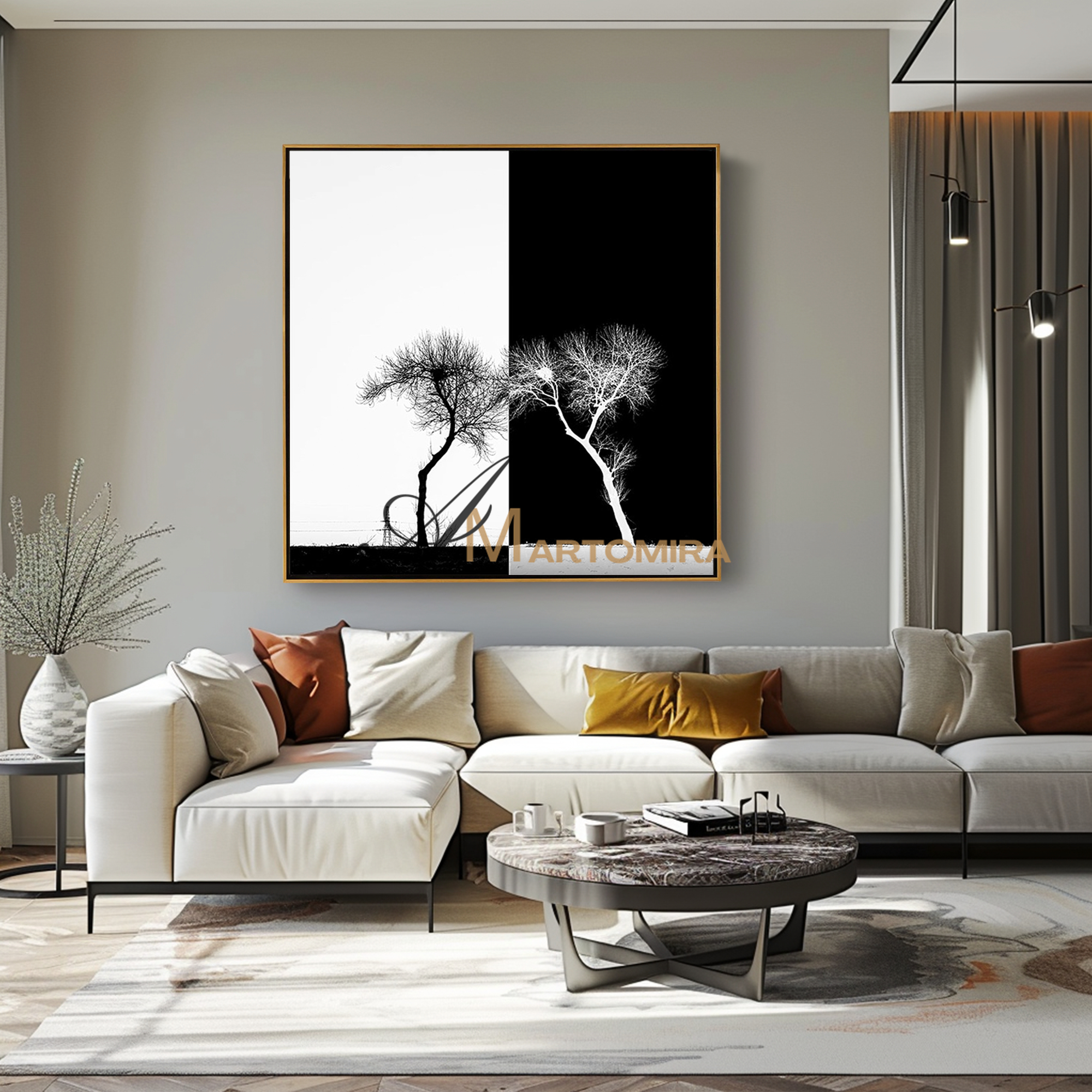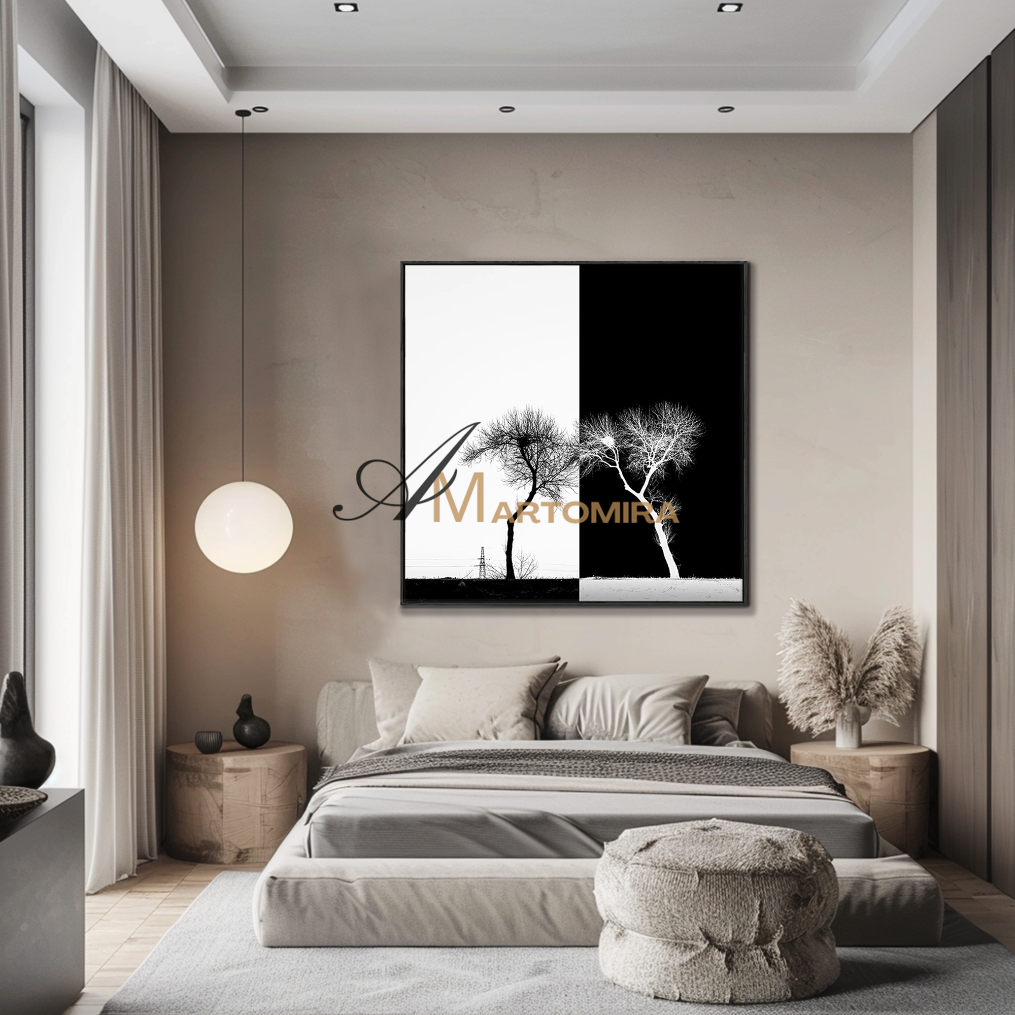 Malen des Baumes | Schwarz-Weiß-Wandkunst | Großformatige minimalistische Wandkunst | Moderne Kunst #MF127