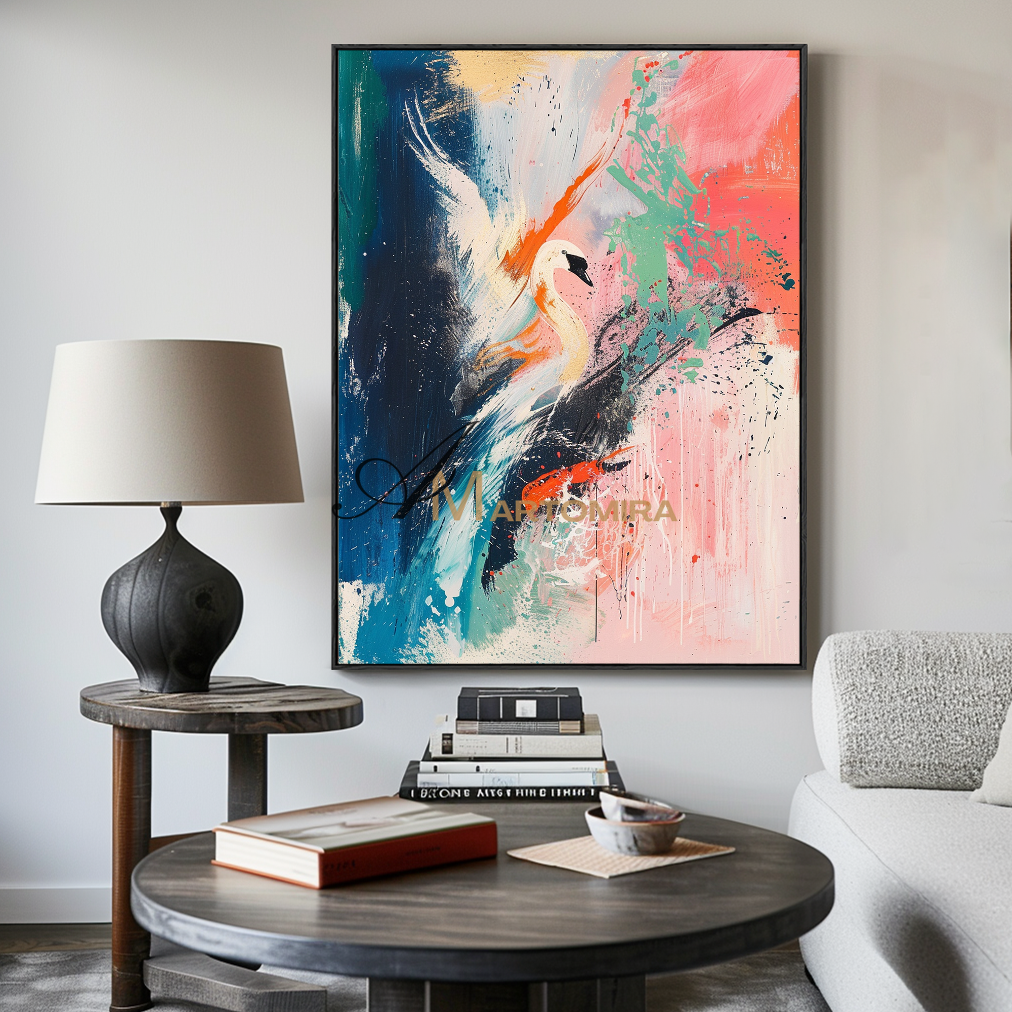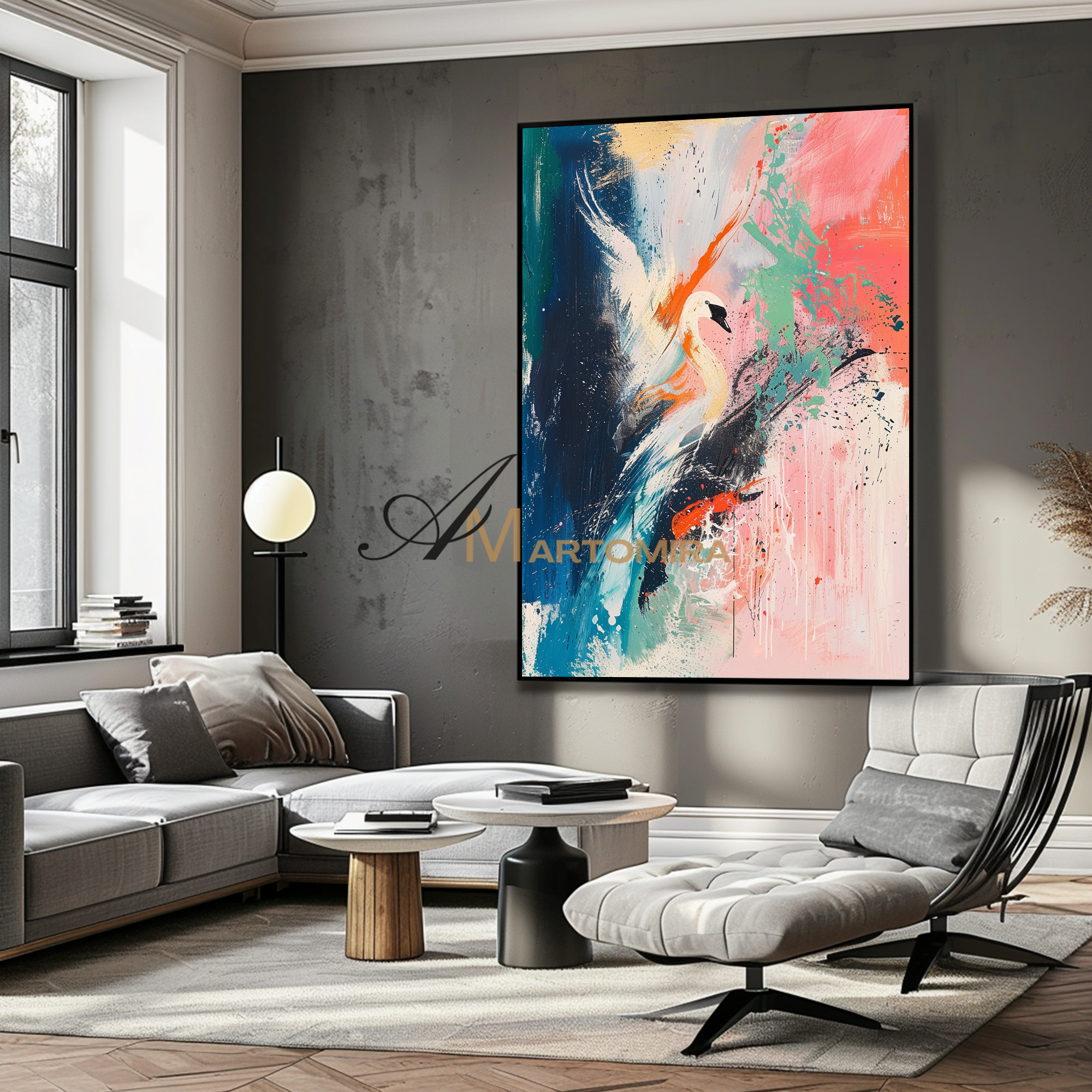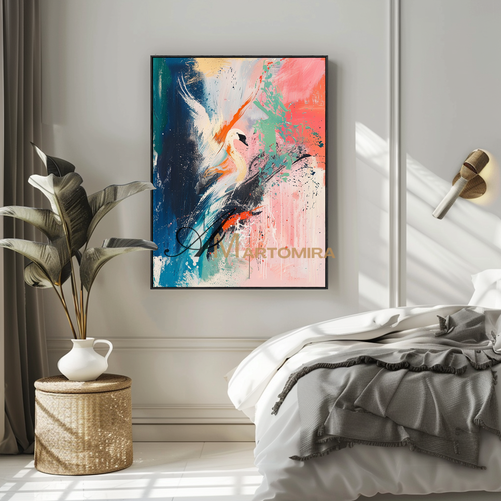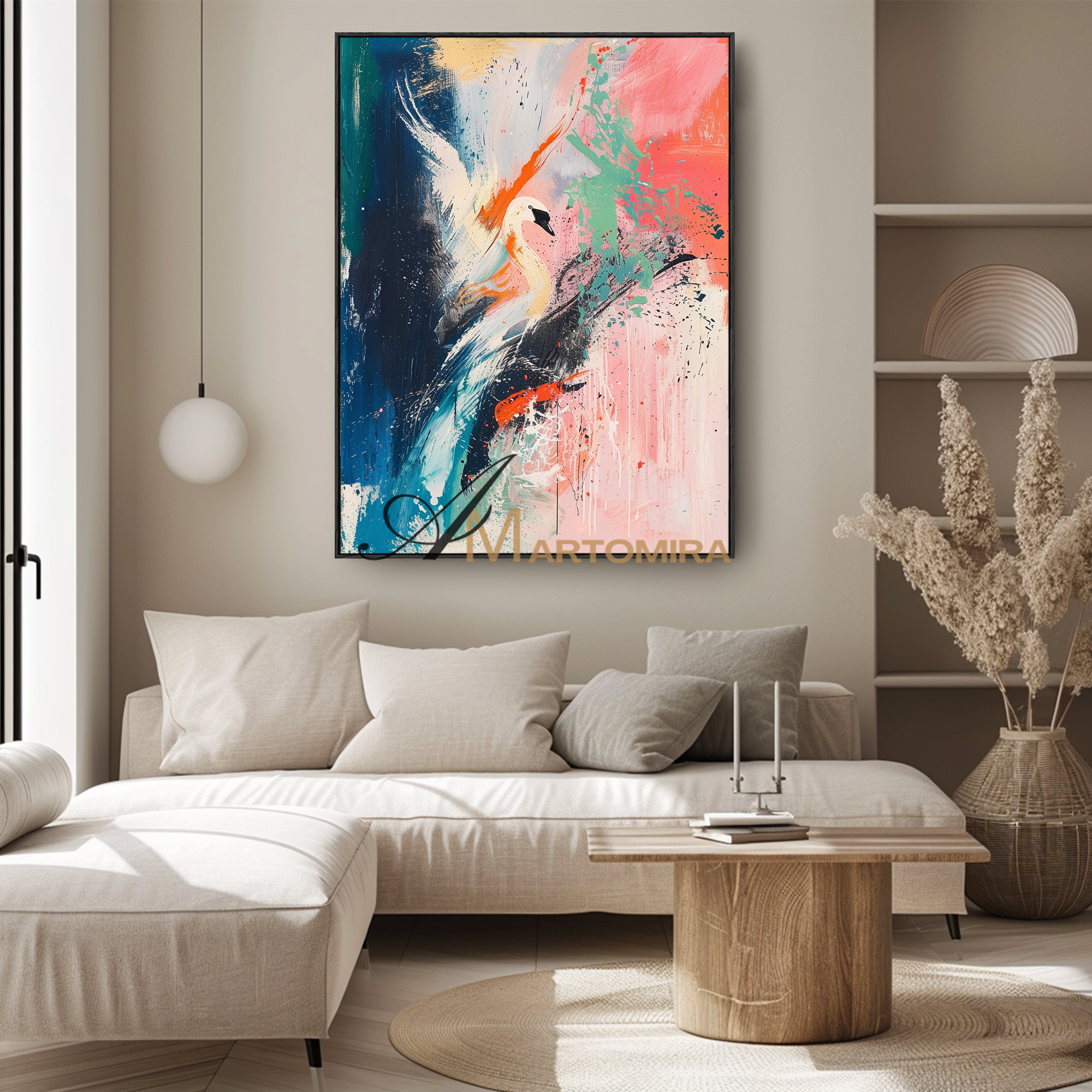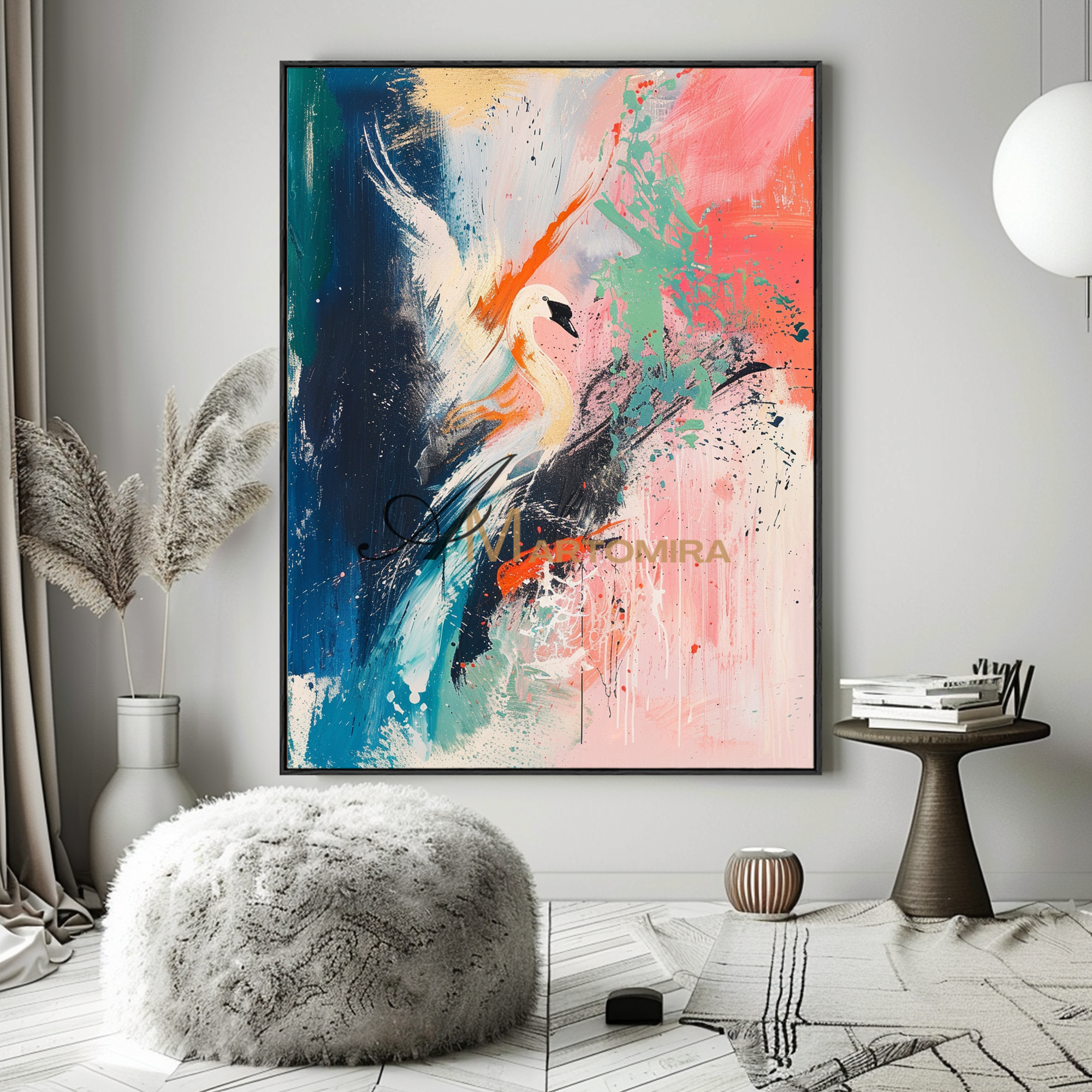 Kranich-Gemälde | Großes, farbenfrohes Wandbild | Abstraktes Gemälde fürs Wohnzimmer | Leinwandbild #CA083