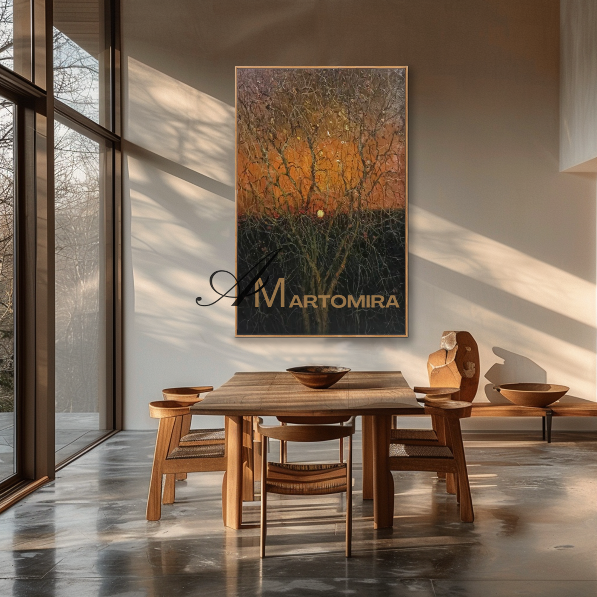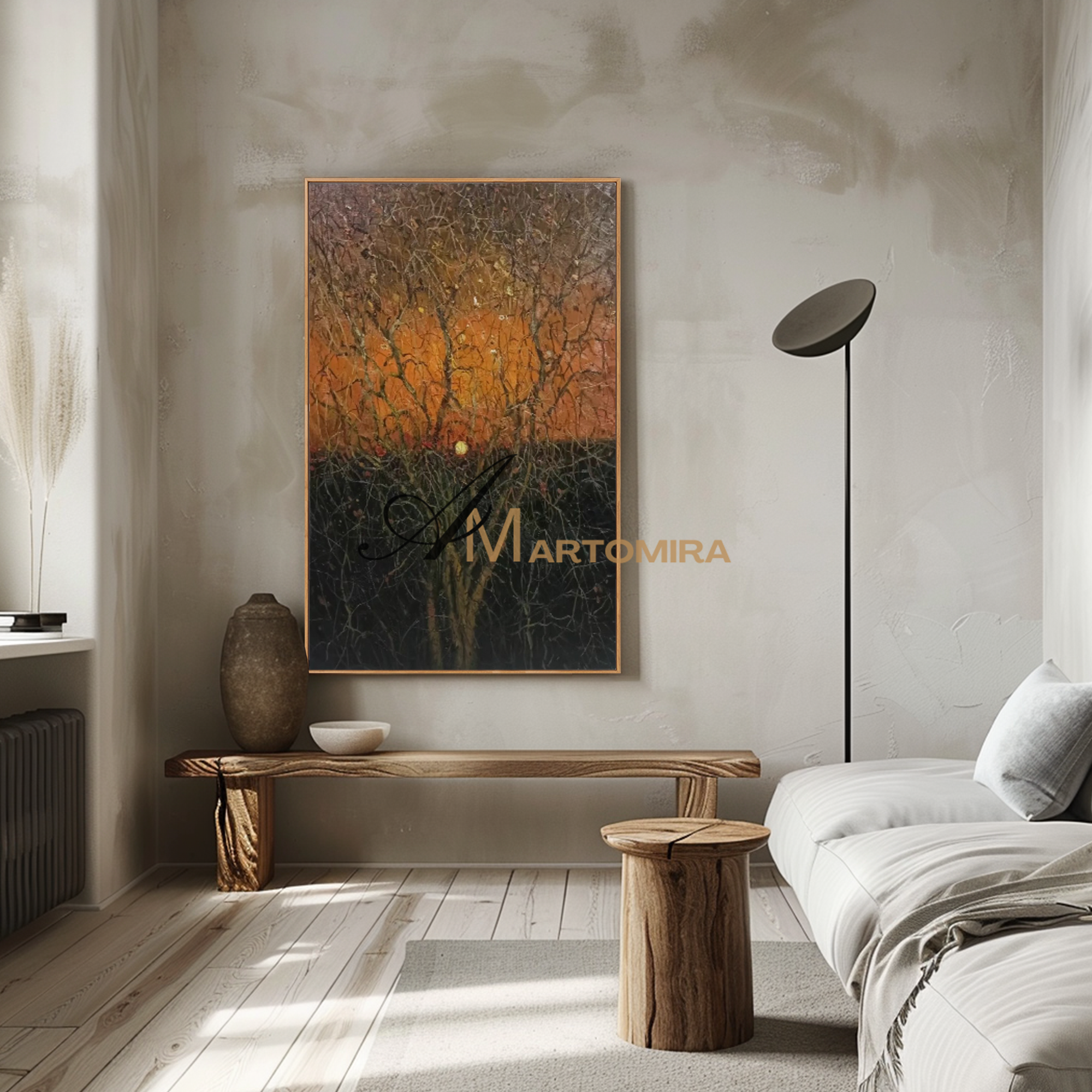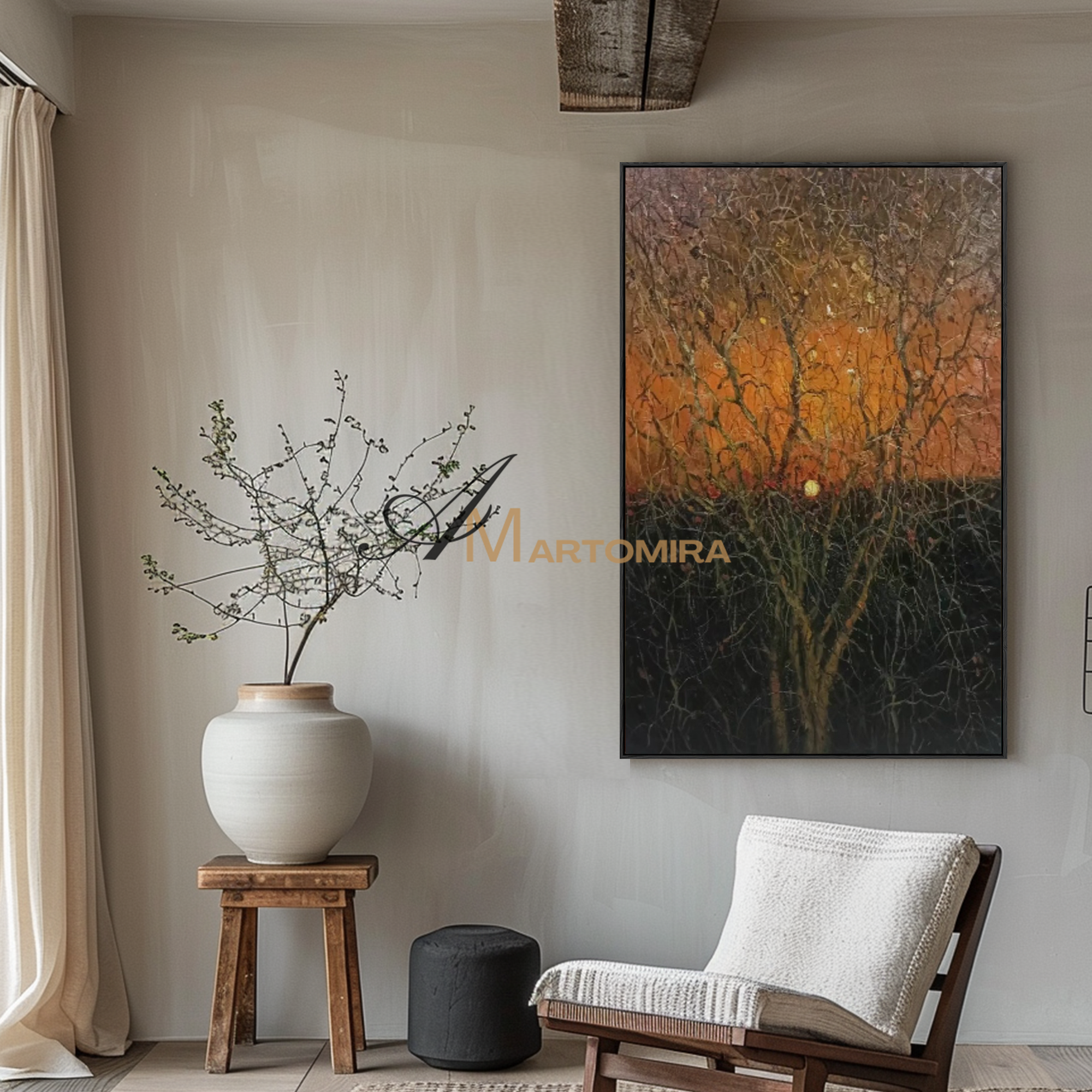 Abstrakte Landschaftsmalerei | Gemälde eines Baumes | Sonnenuntergangs-Wandkunst | Schwarz-braune Wandkunst #MF090