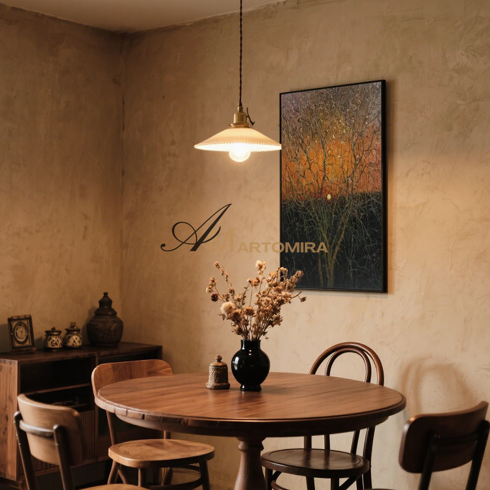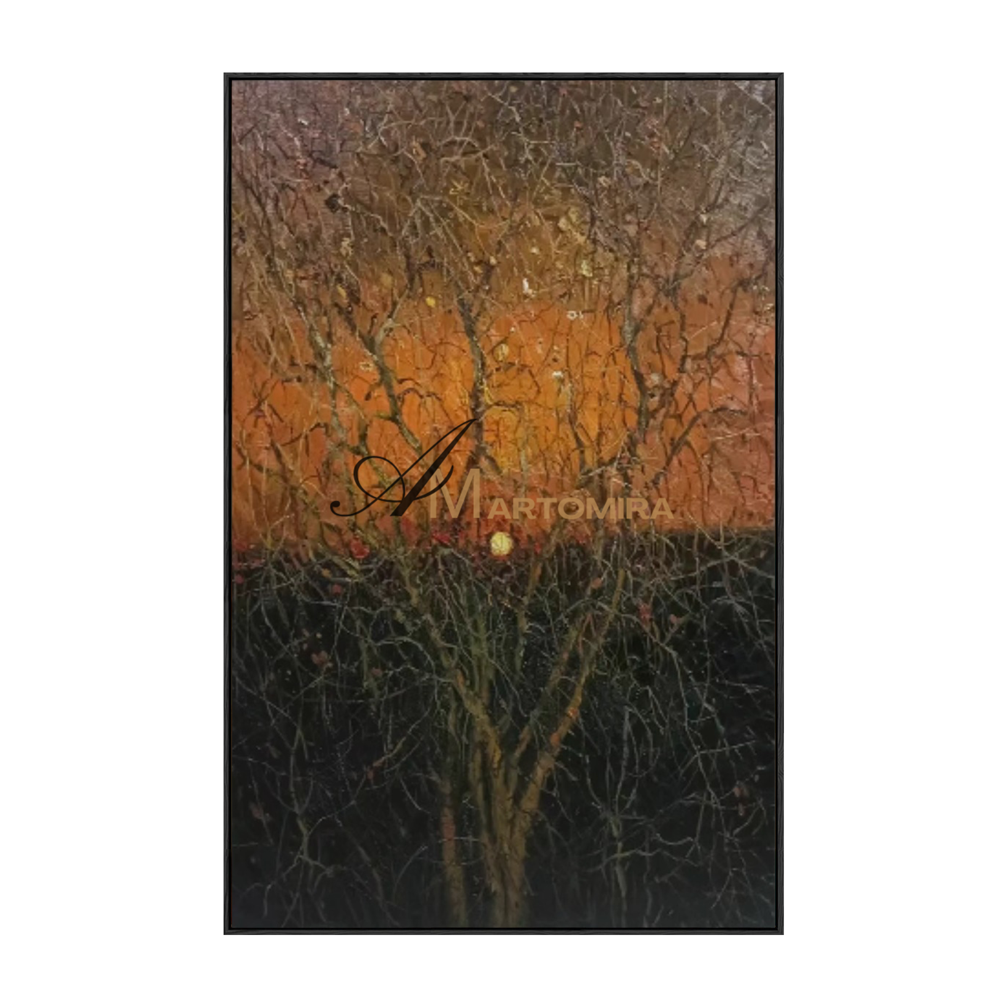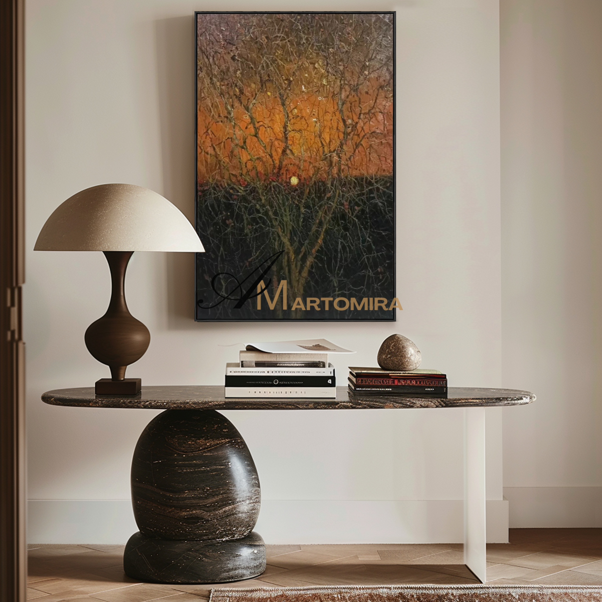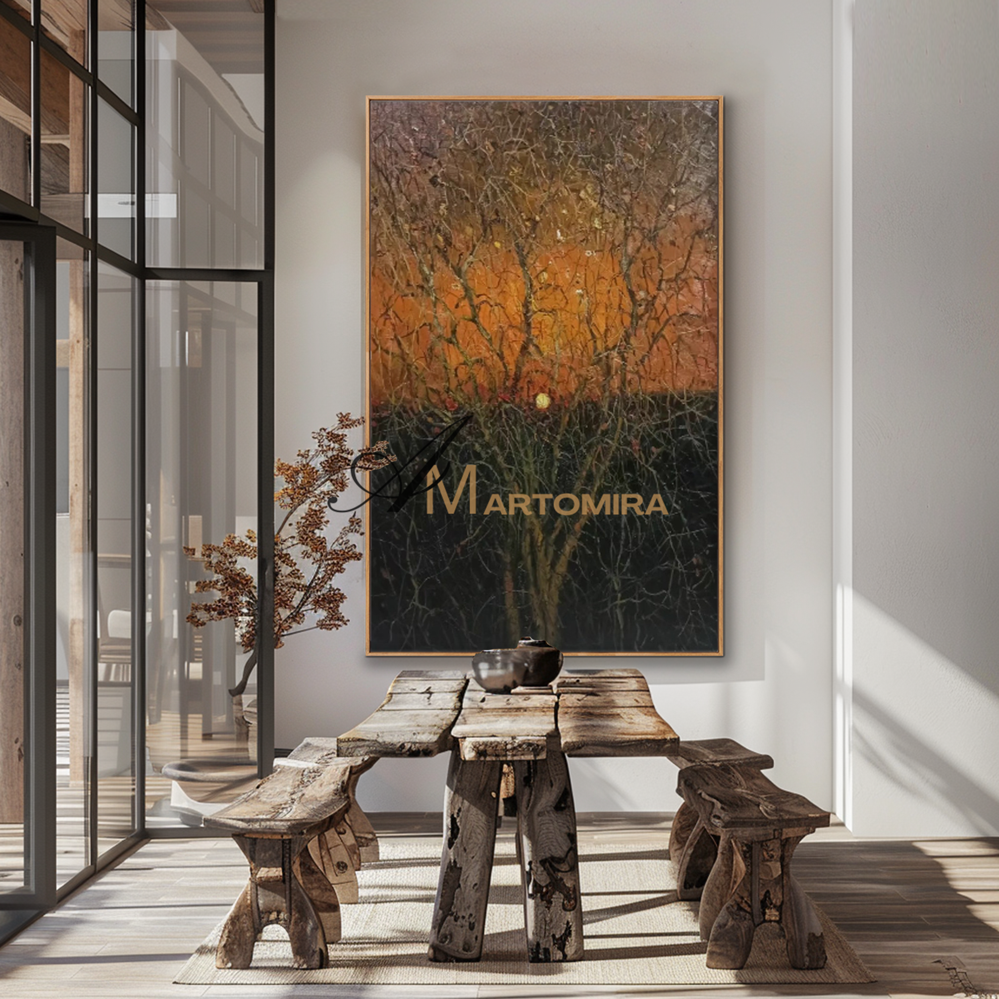 Abstrakte Landschaftsmalerei | Gemälde eines Baumes | Sonnenuntergangs-Wandkunst | Schwarz-braune Wandkunst #MF090