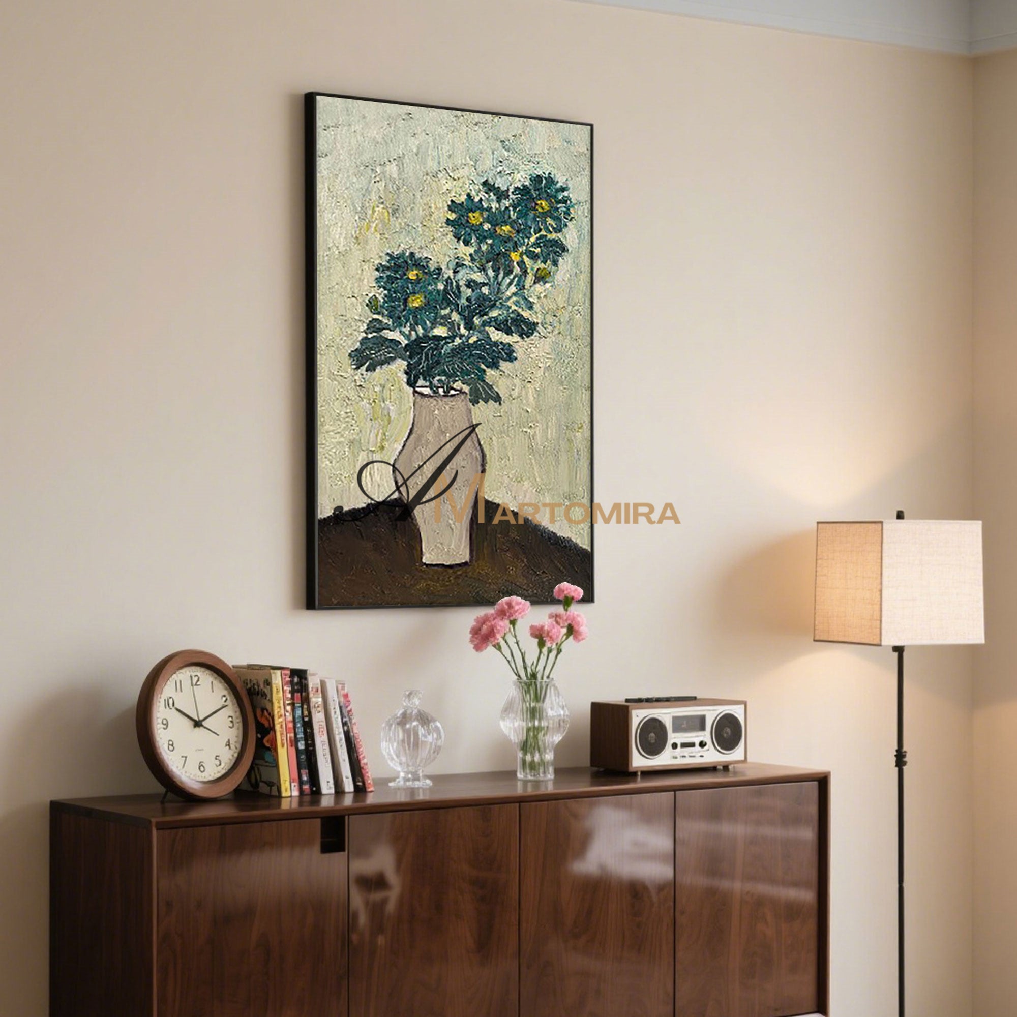 Blumenbild auf Leinwand | Acryl-Blumenbild | Gemälde von Blumen in einer Vase #MF016