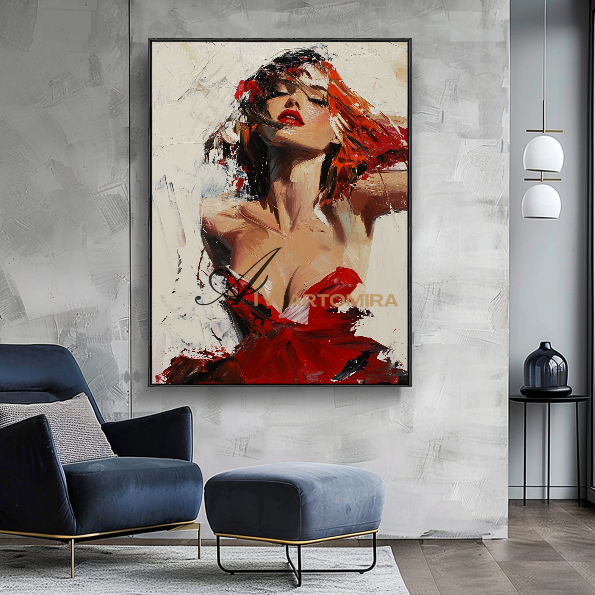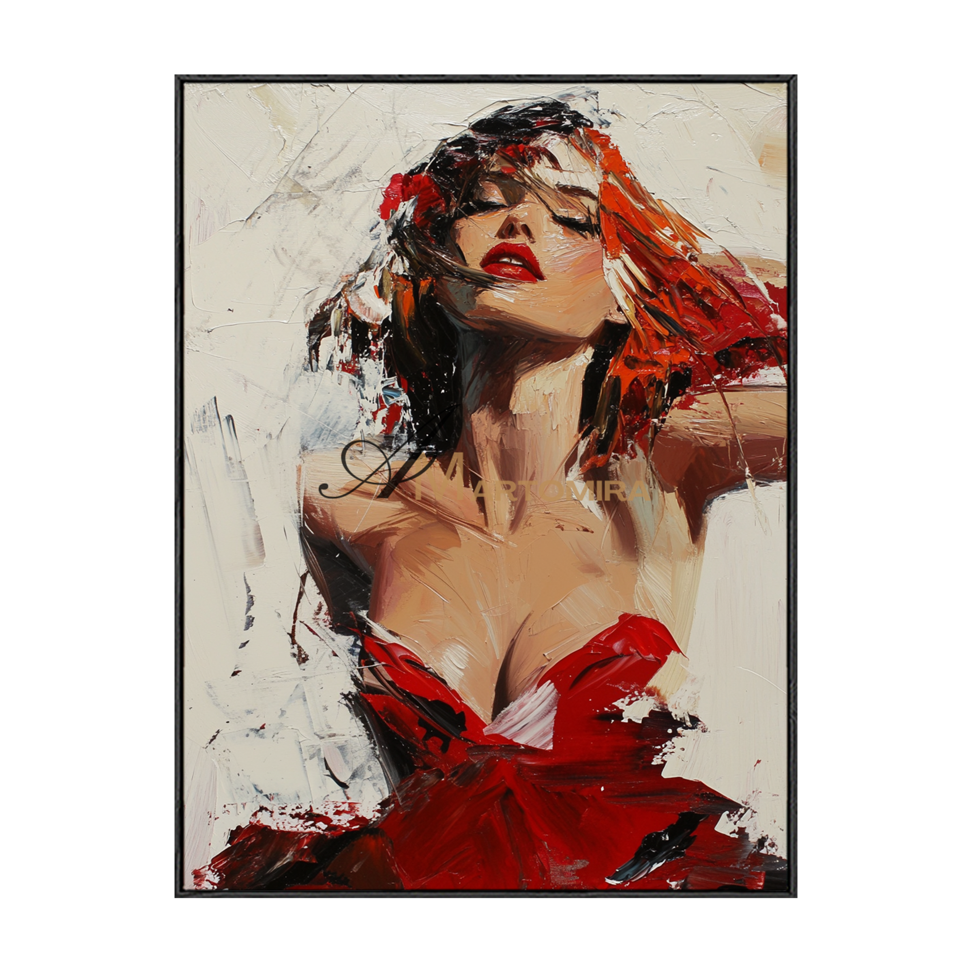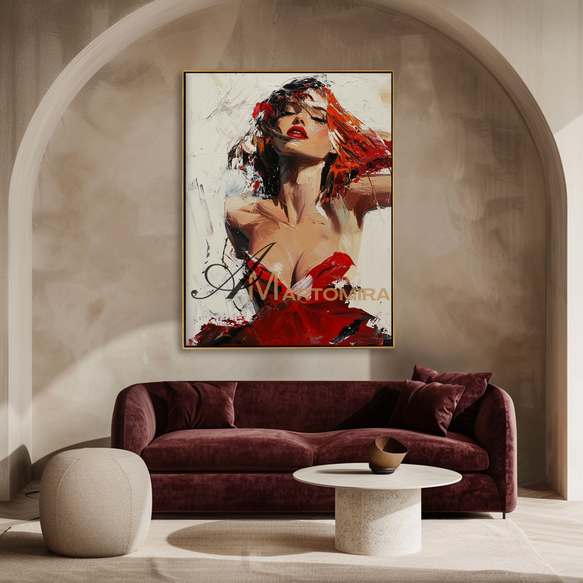 Frauenbild | Gemälde einer Frau im roten Kleid | Feminine Wandkunst fürs Schlafzimmer | Leinwandbild, Wanddekoration #AP132