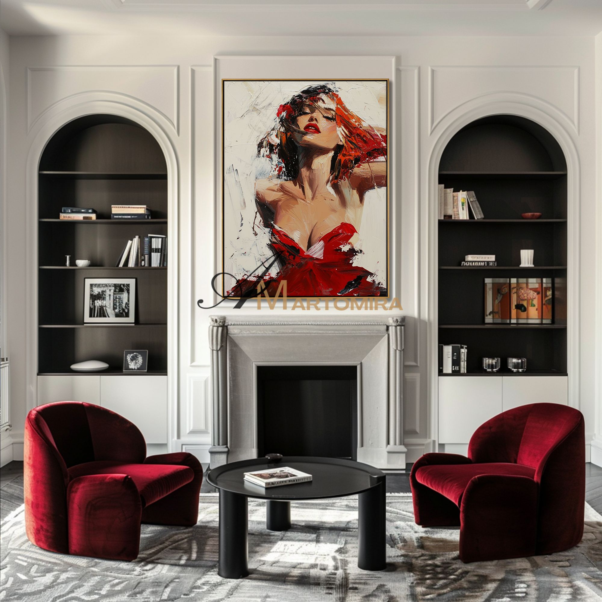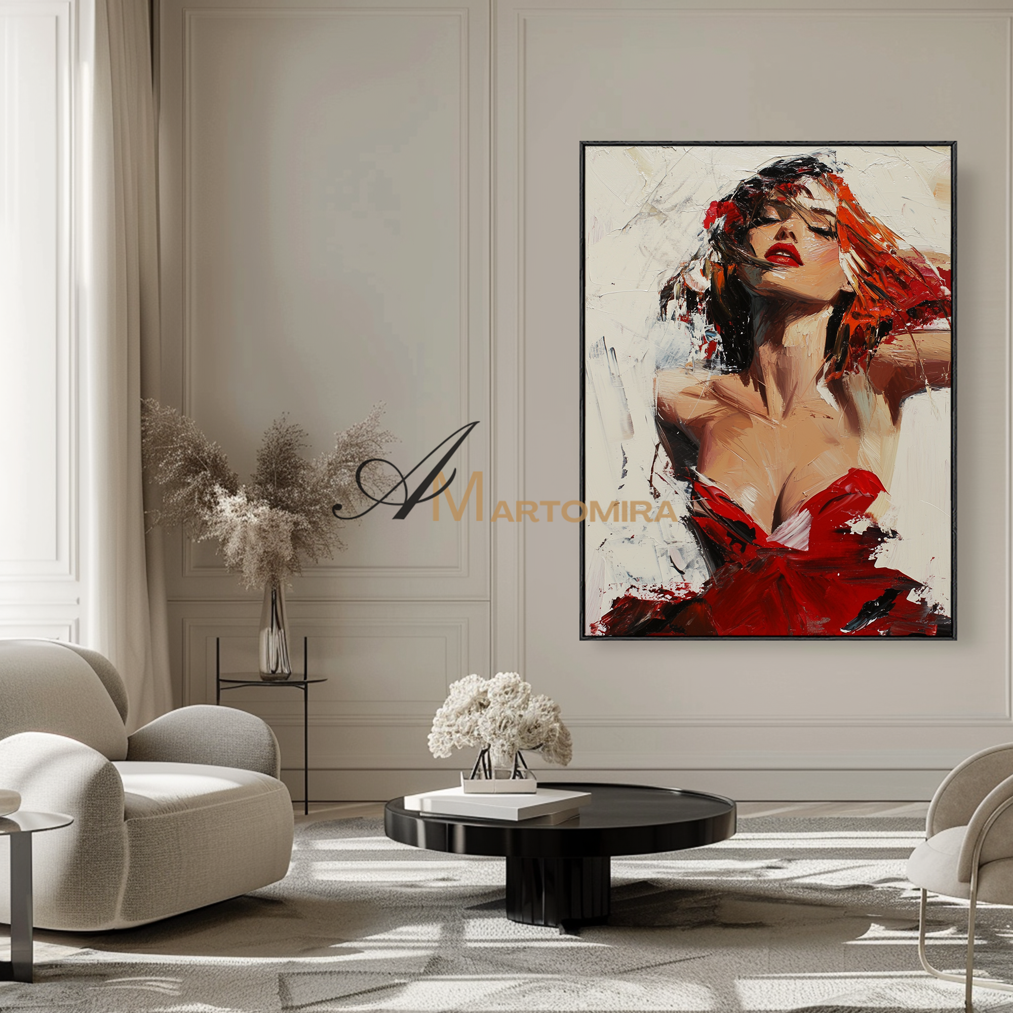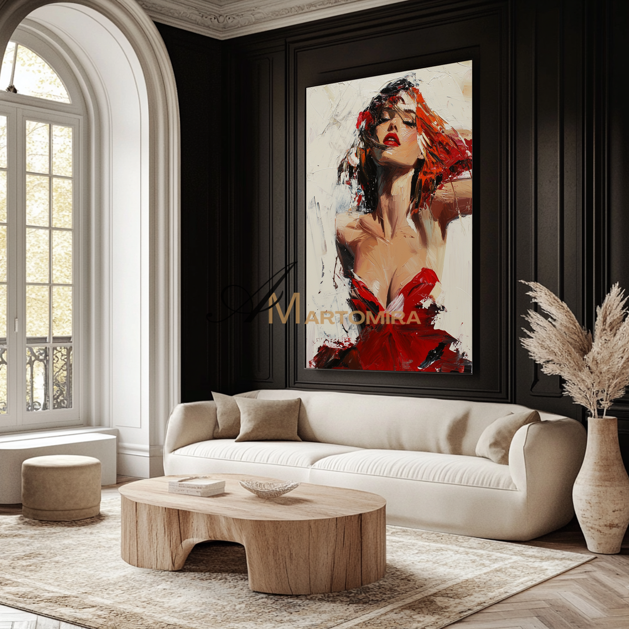 Frauenbild | Gemälde einer Frau im roten Kleid | Feminine Wandkunst fürs Schlafzimmer | Leinwandbild, Wanddekoration #AP132