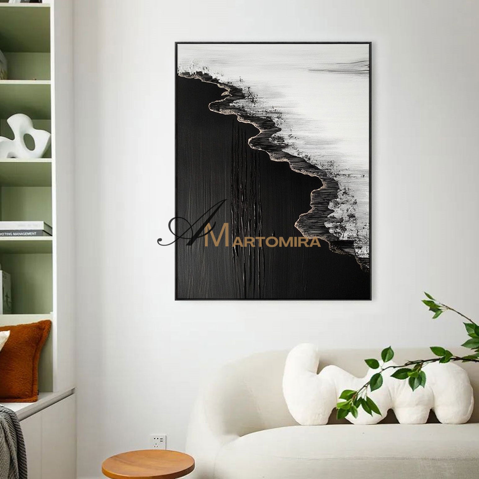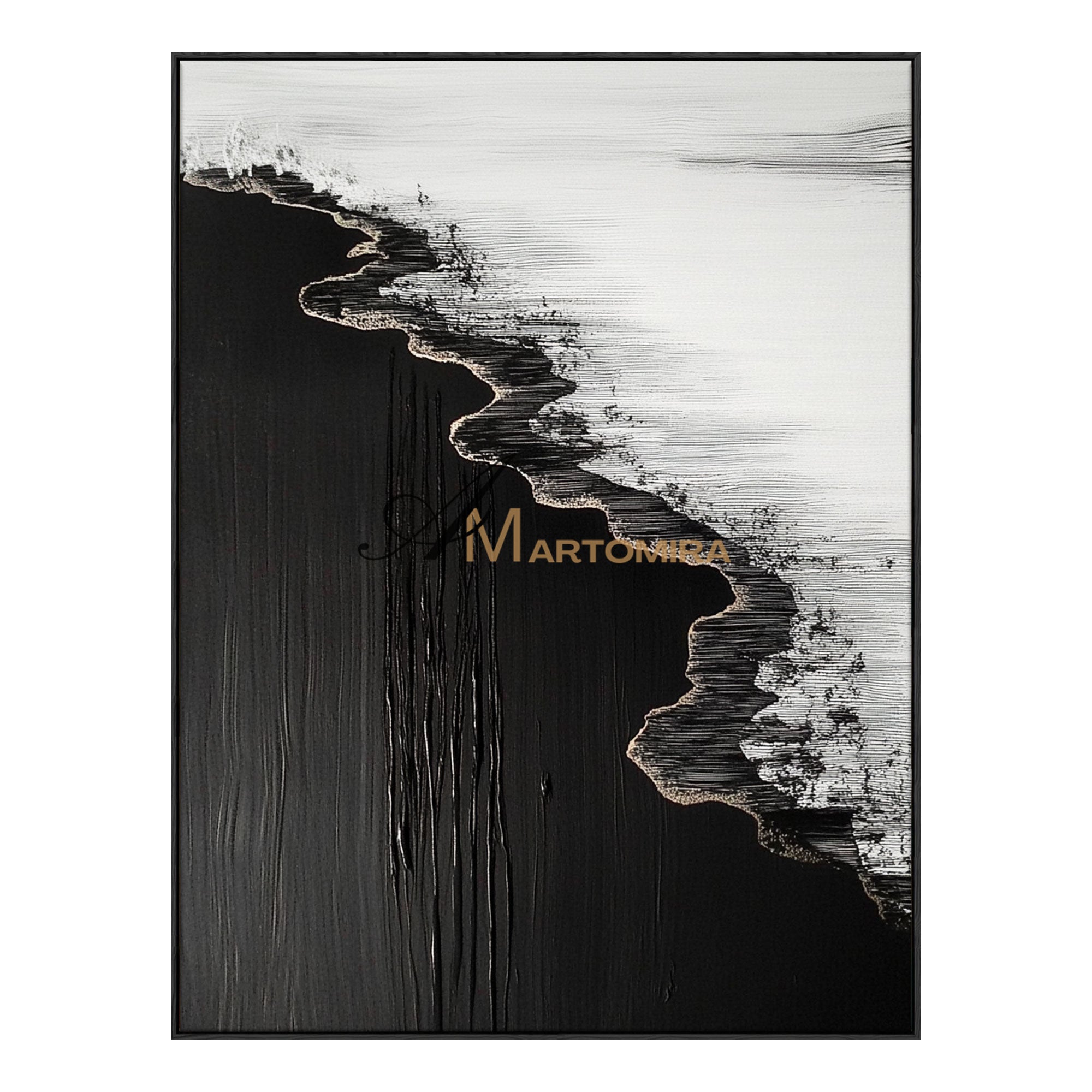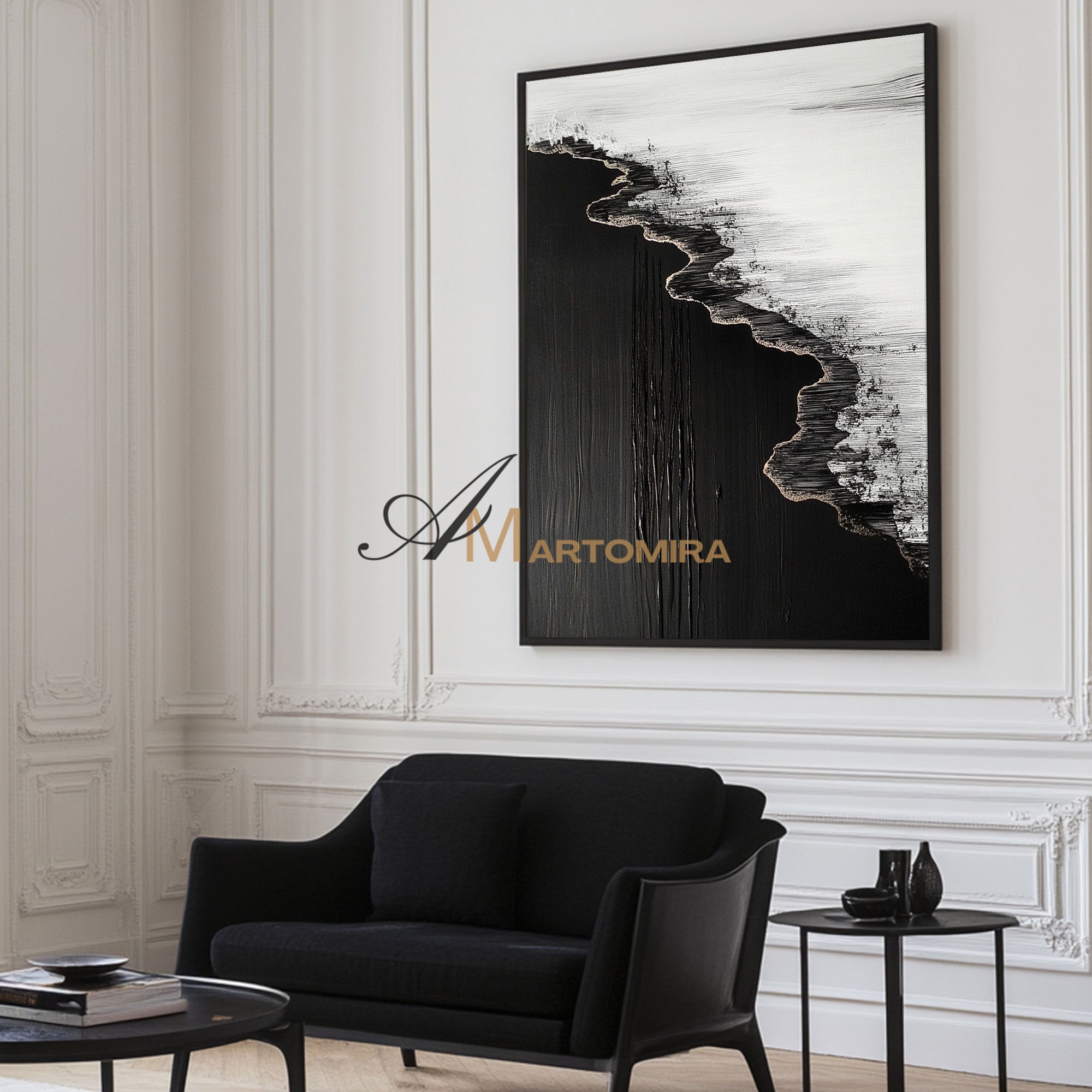 Strandkunst-Gemälde | Schwarz-Weiß-Wandkunst | Abstraktes Meeresbild | Wandbild fürs Wohnzimmer #POS052
