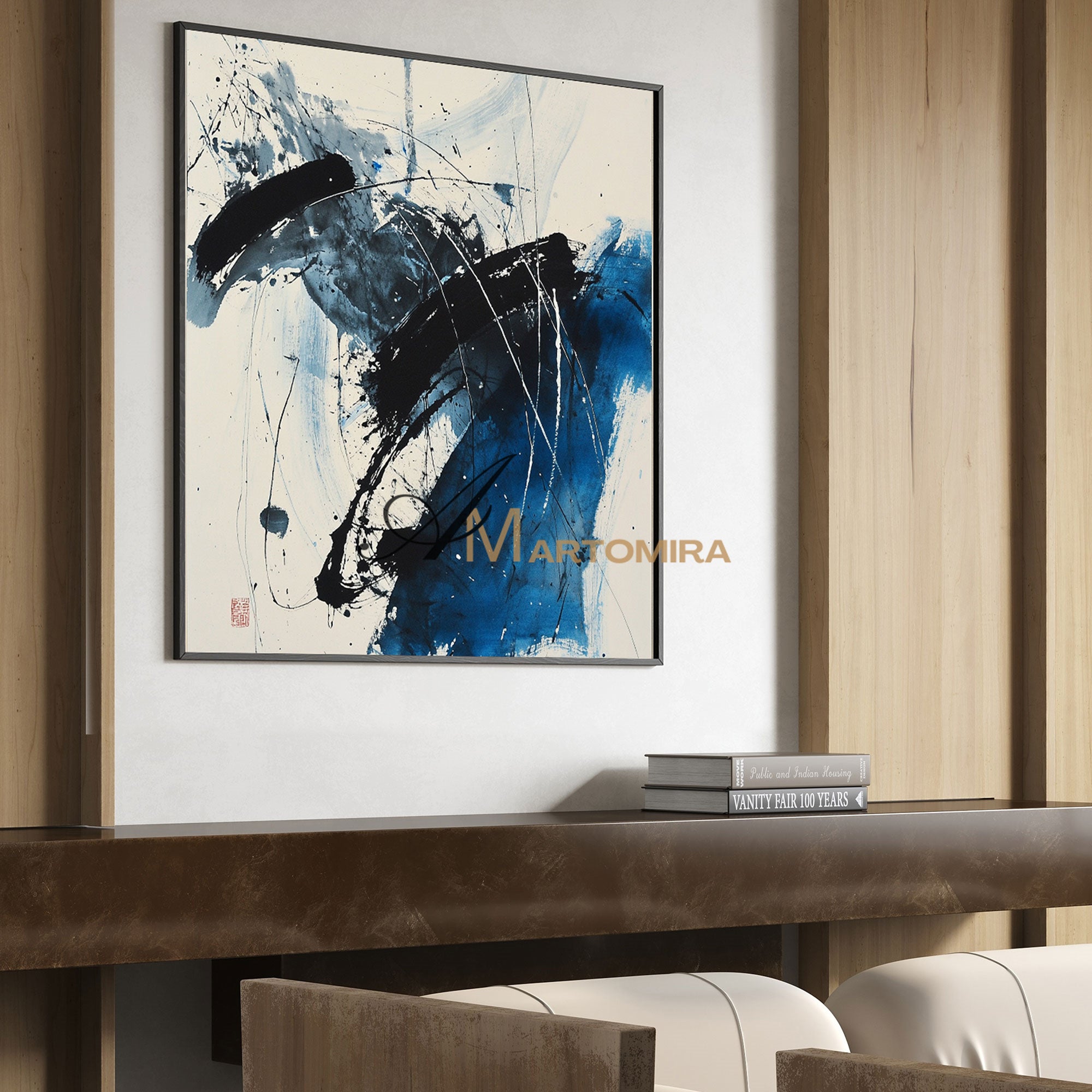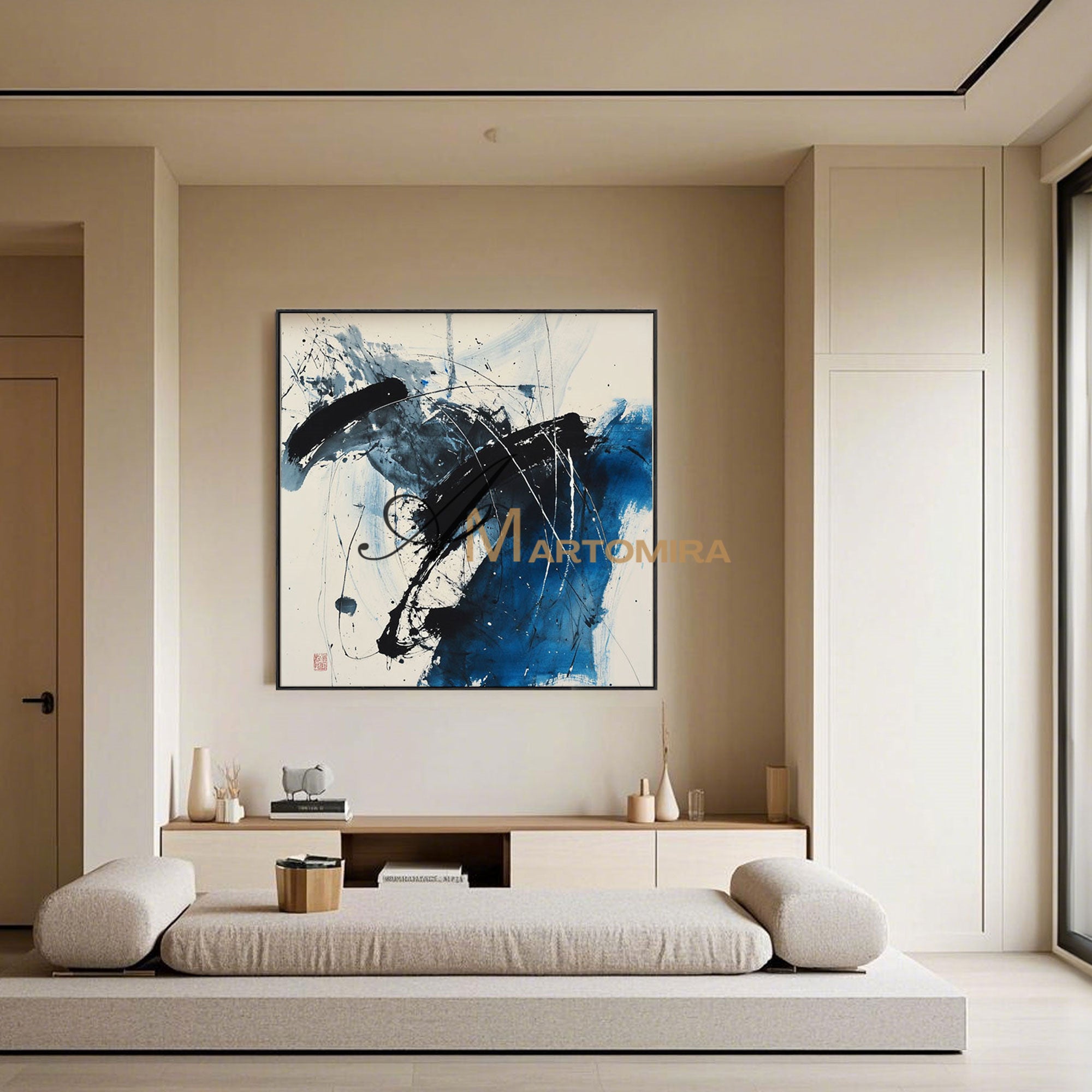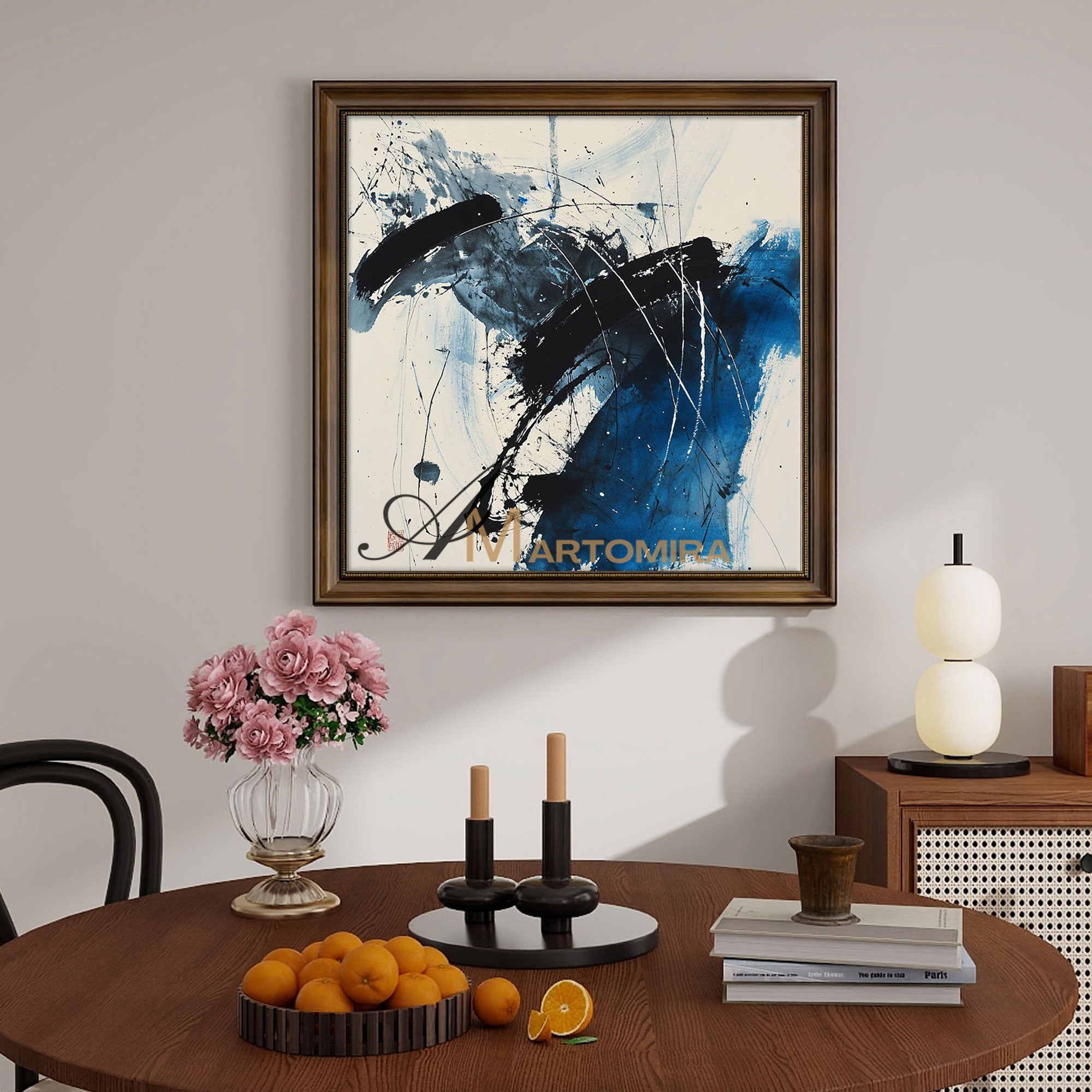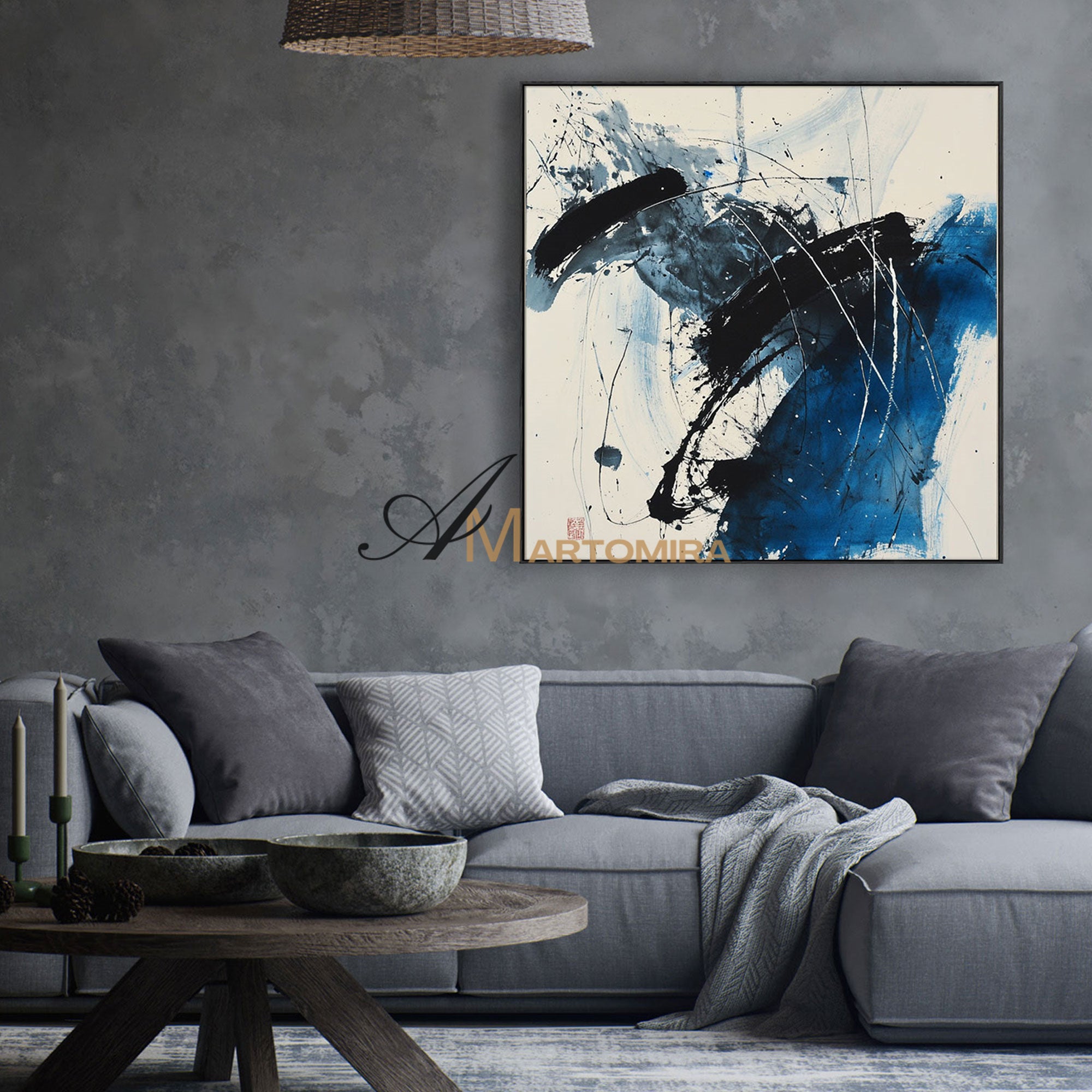 Abstrakte Wandkunst | Leinwandbild | Abstraktes Gemälde in Blau und Weiß | Wanddekoration #AH144