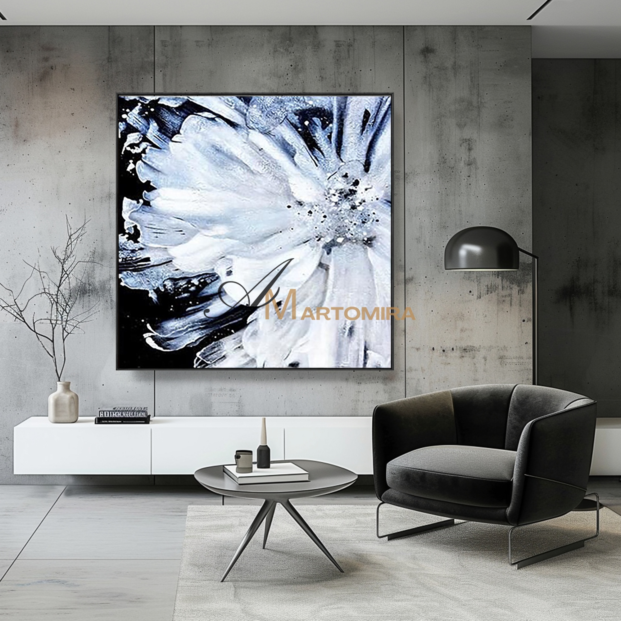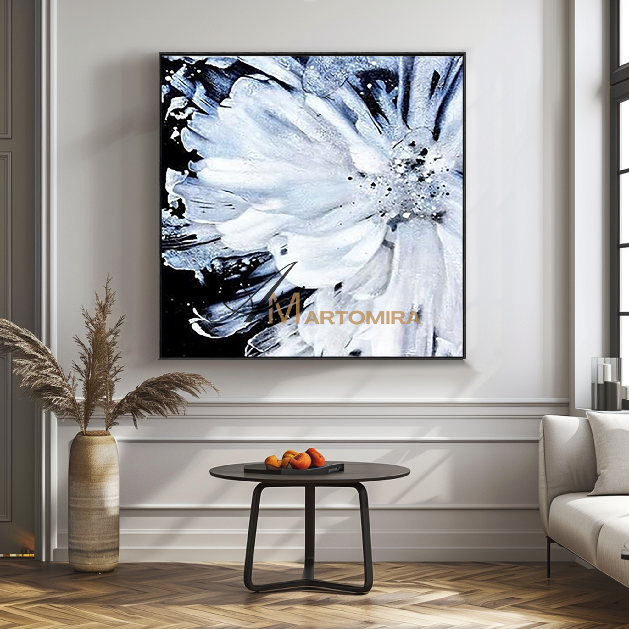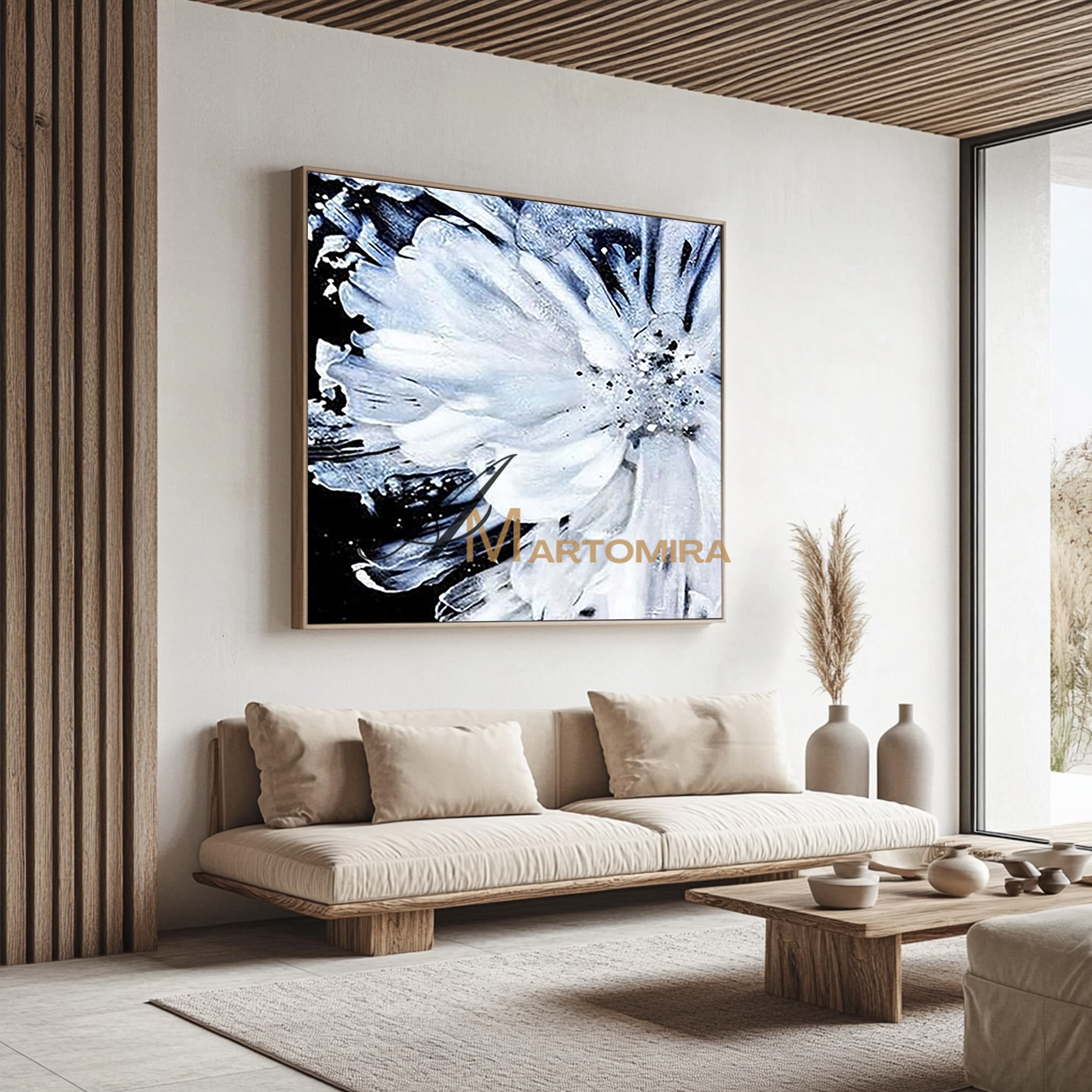 Abstraktes Blumenbild | Gemälde mit weißen Blumen | Großes Blumenbild auf Leinwand #MF104
