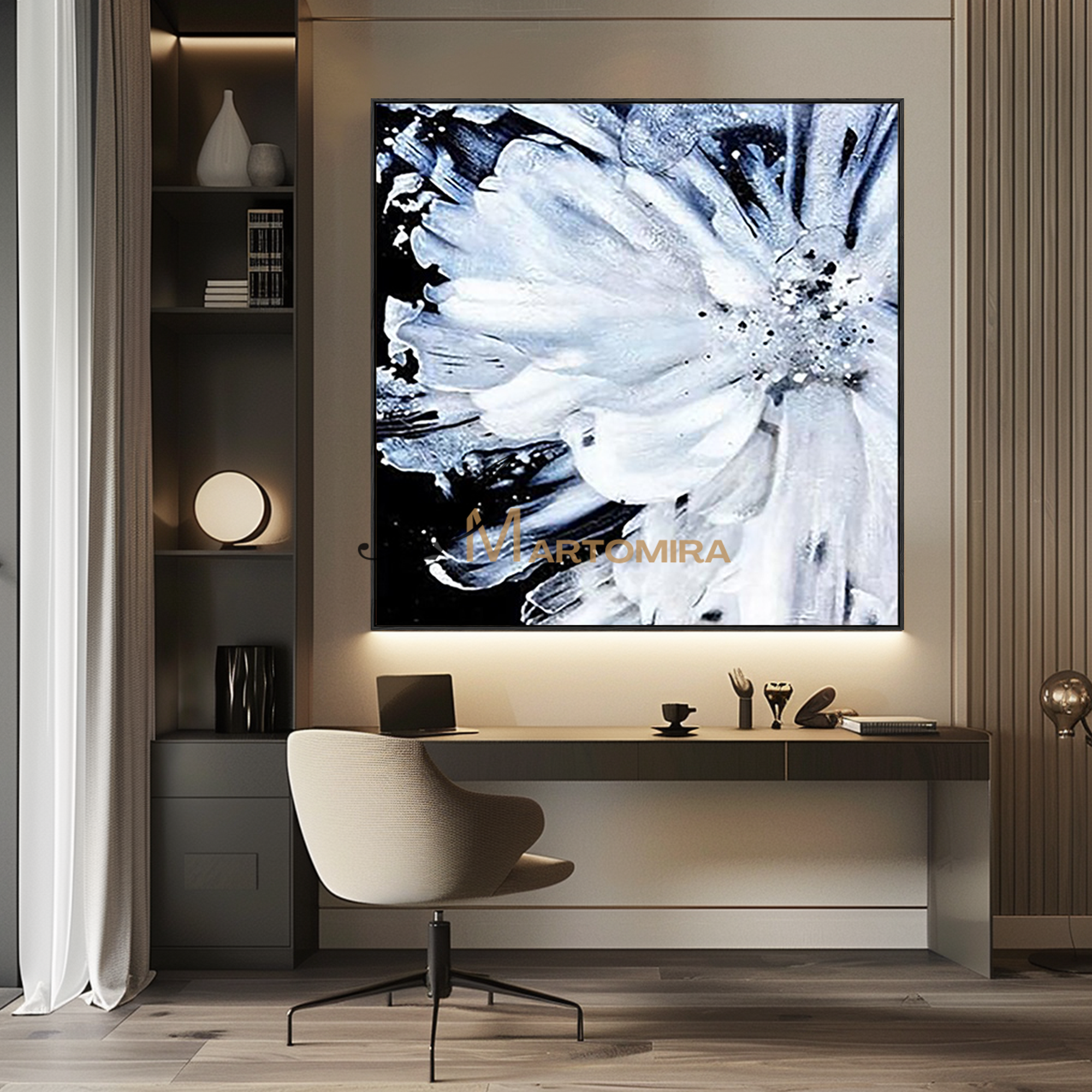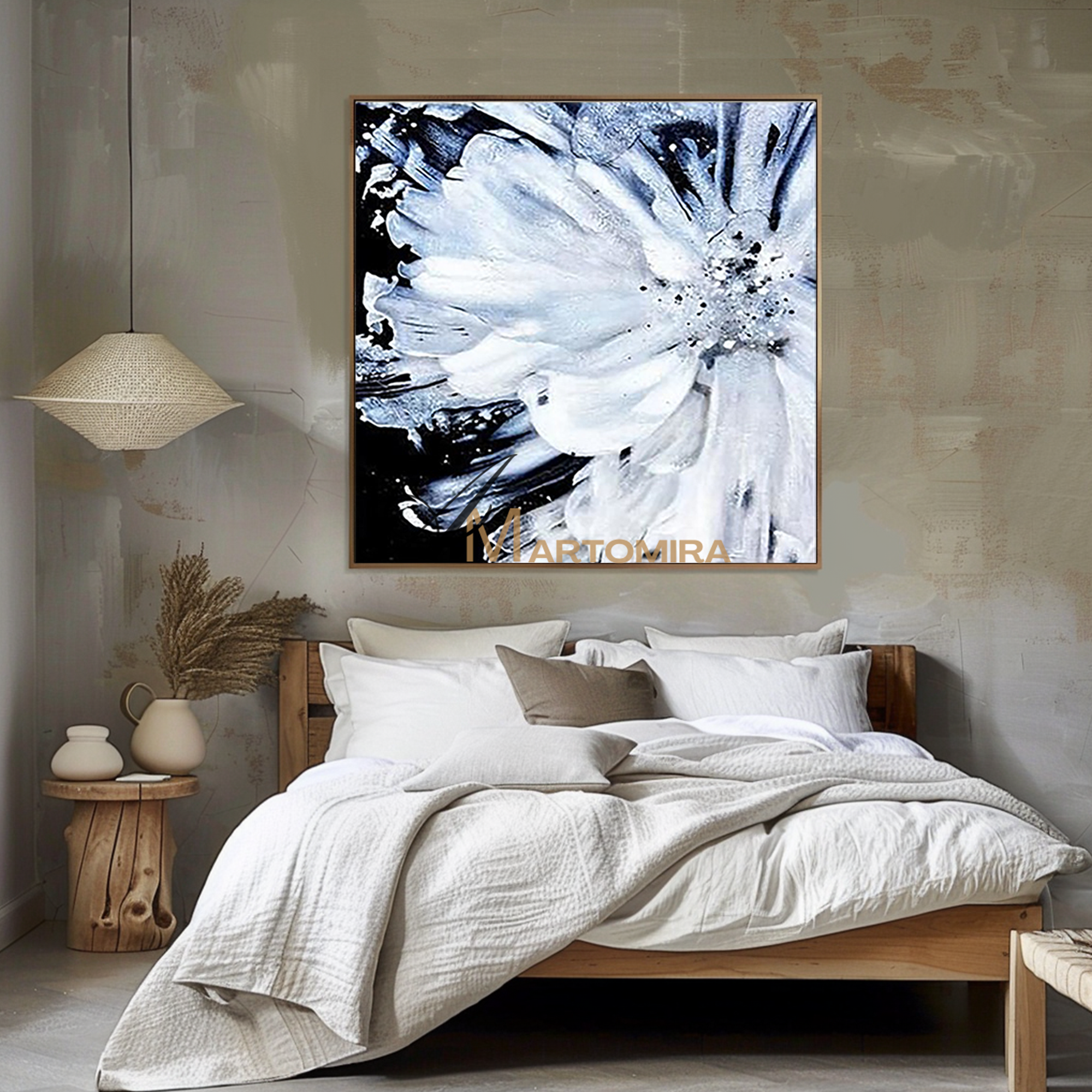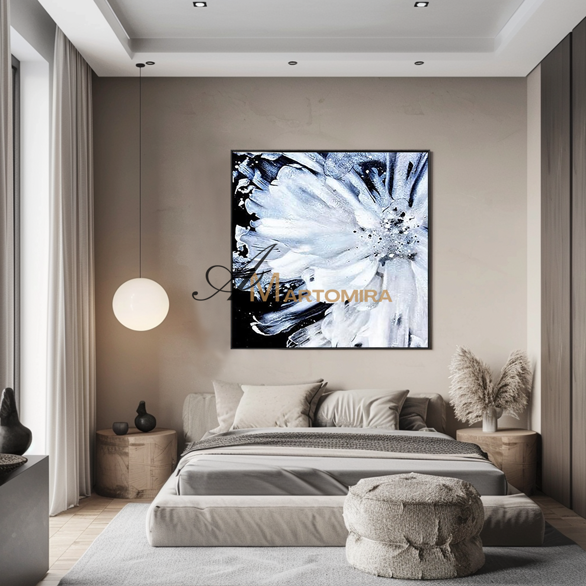 Abstraktes Blumenbild | Gemälde mit weißen Blumen | Großes Blumenbild auf Leinwand #MF104
