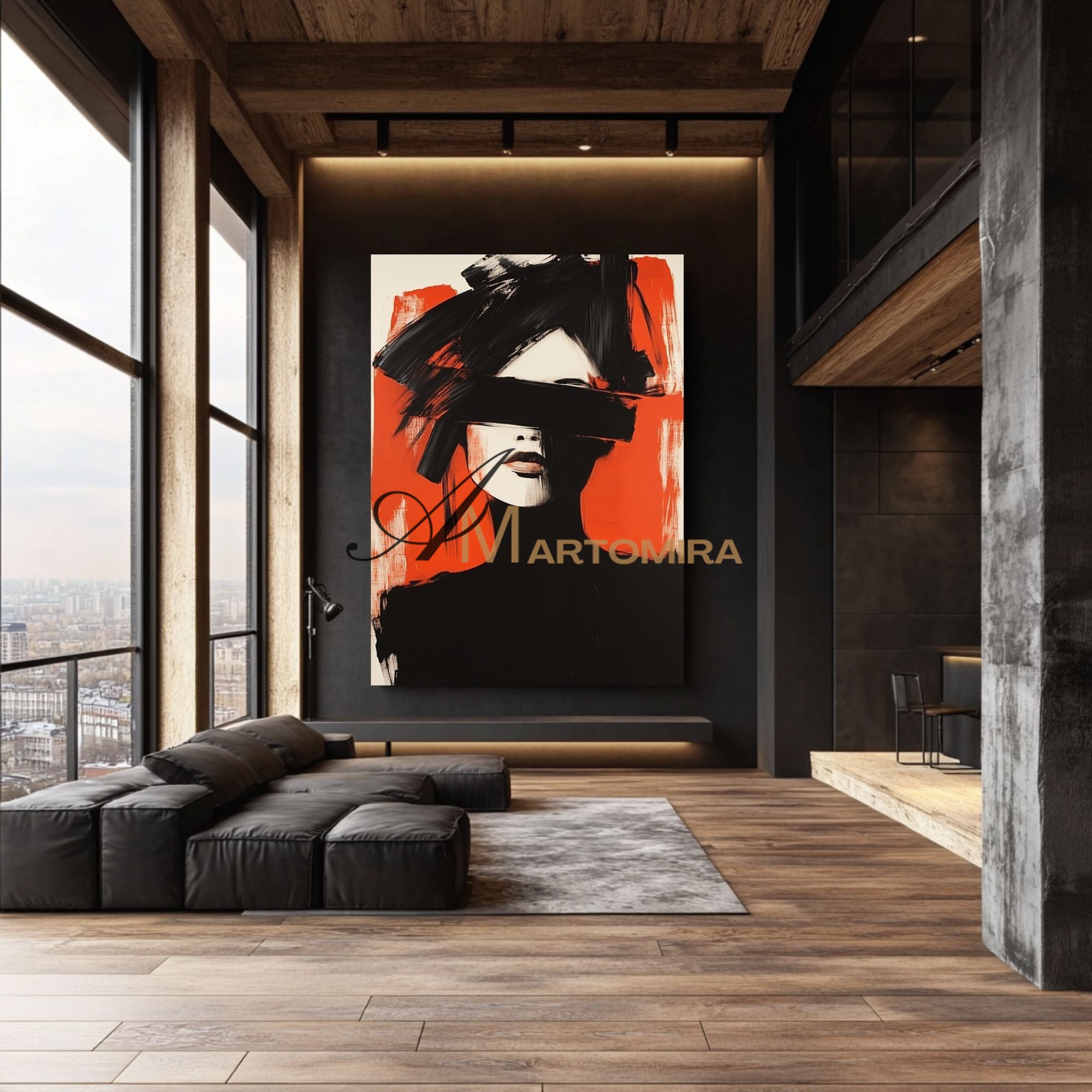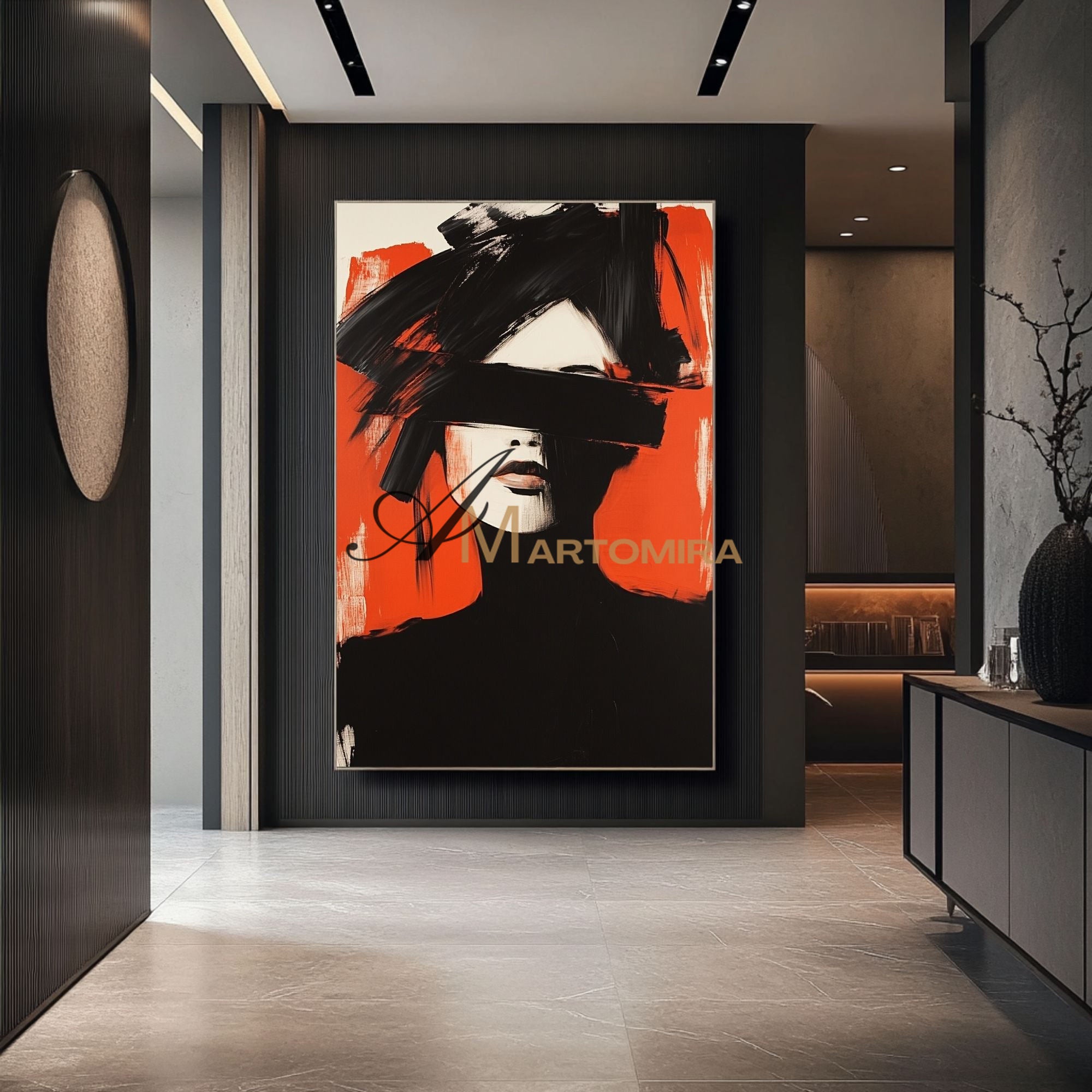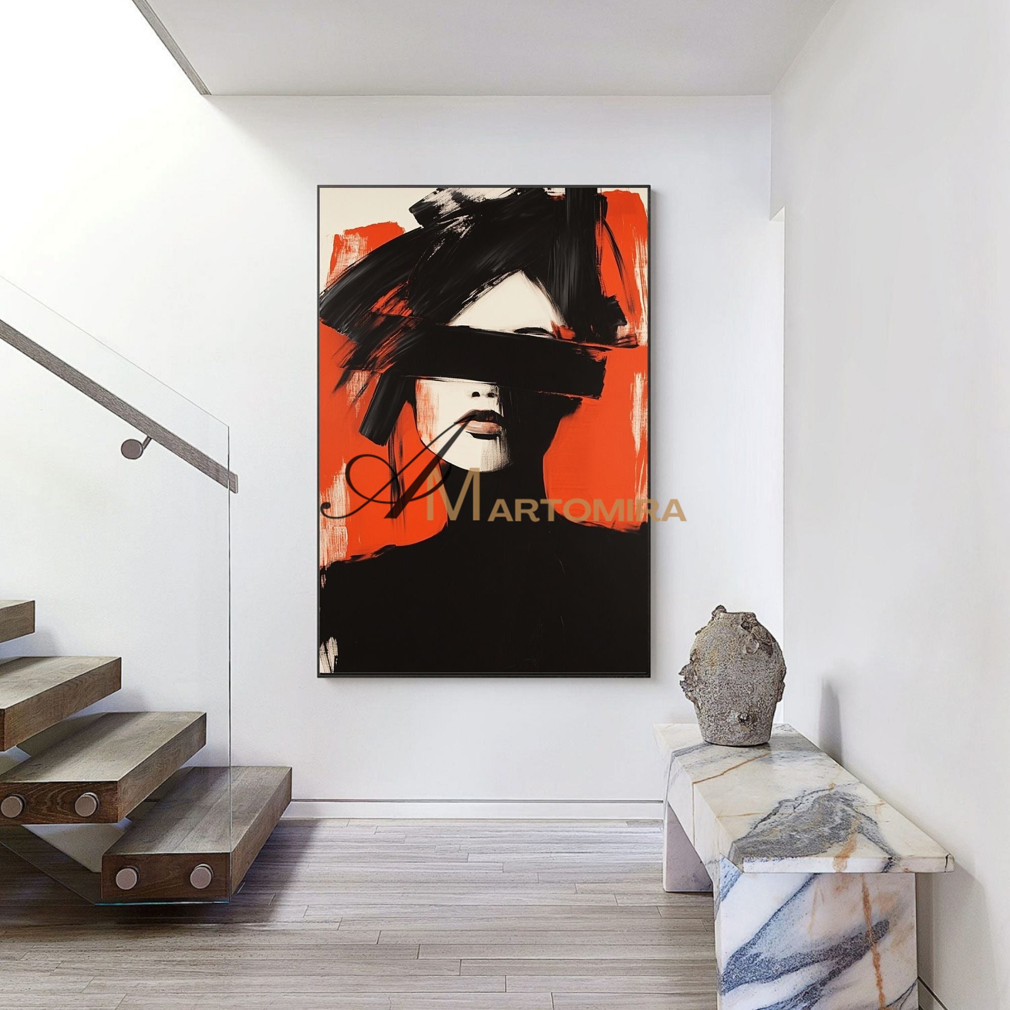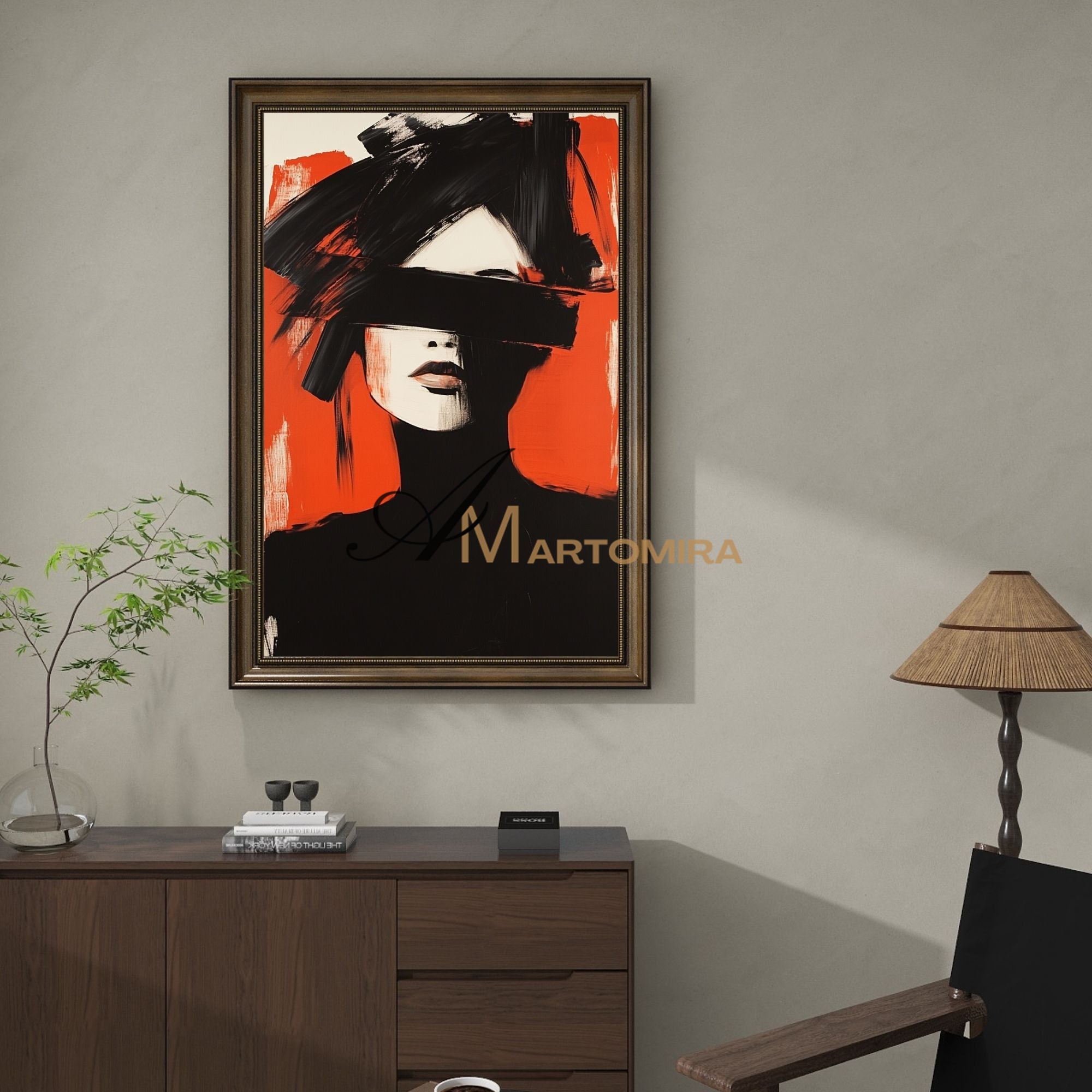 Frauenporträts | Wandbilder in Rot, Schwarz und Weiß | Abstrakte Porträts | Großformatige Wandbilder #AP025