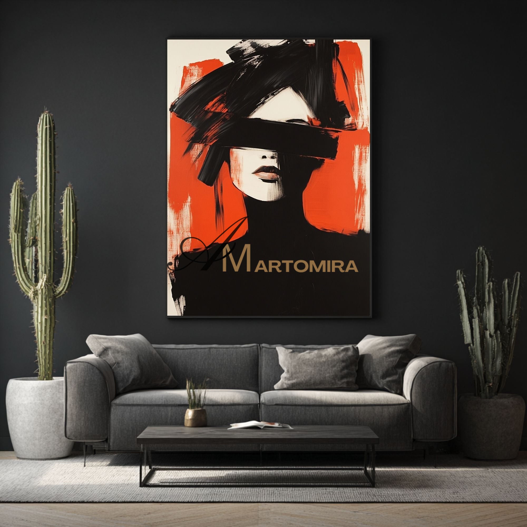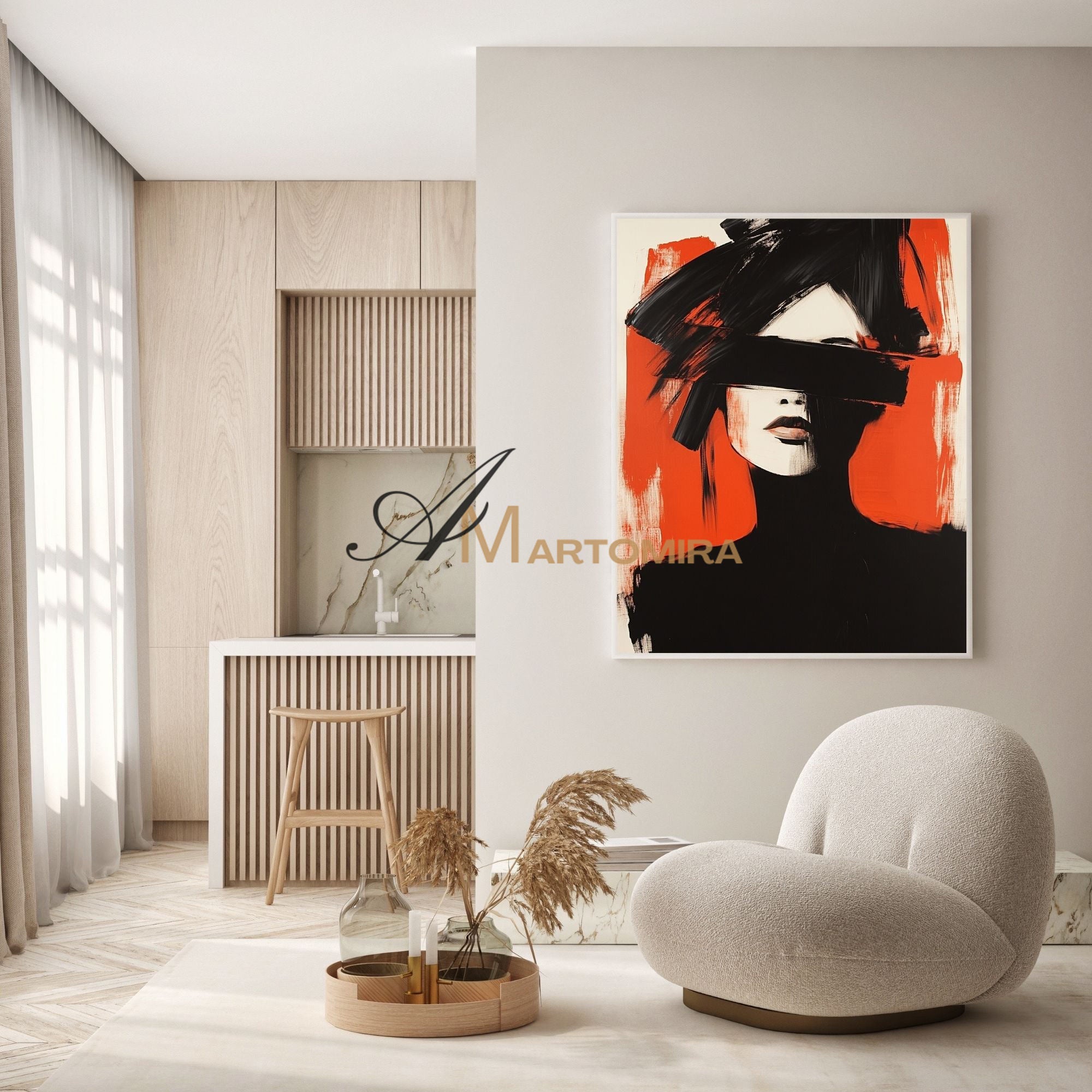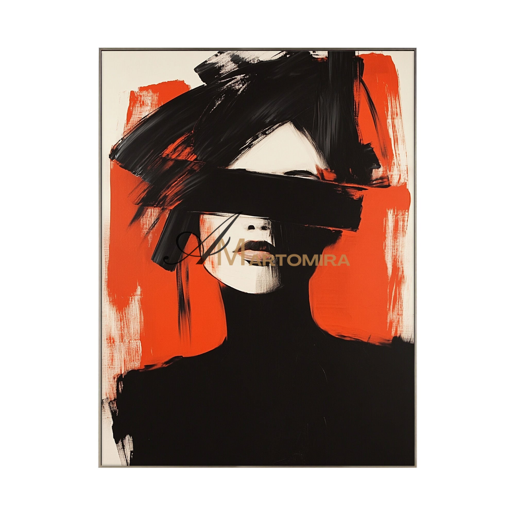 Frauenporträts | Wandbilder in Rot, Schwarz und Weiß | Abstrakte Porträts | Großformatige Wandbilder #AP025