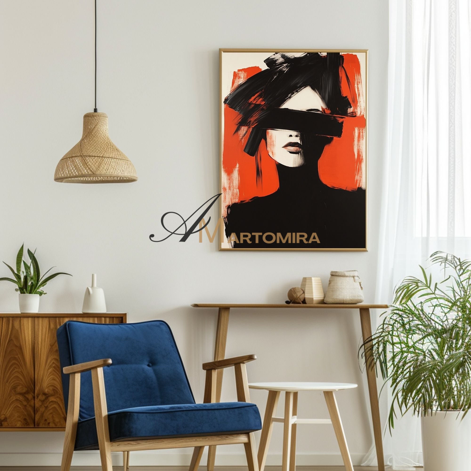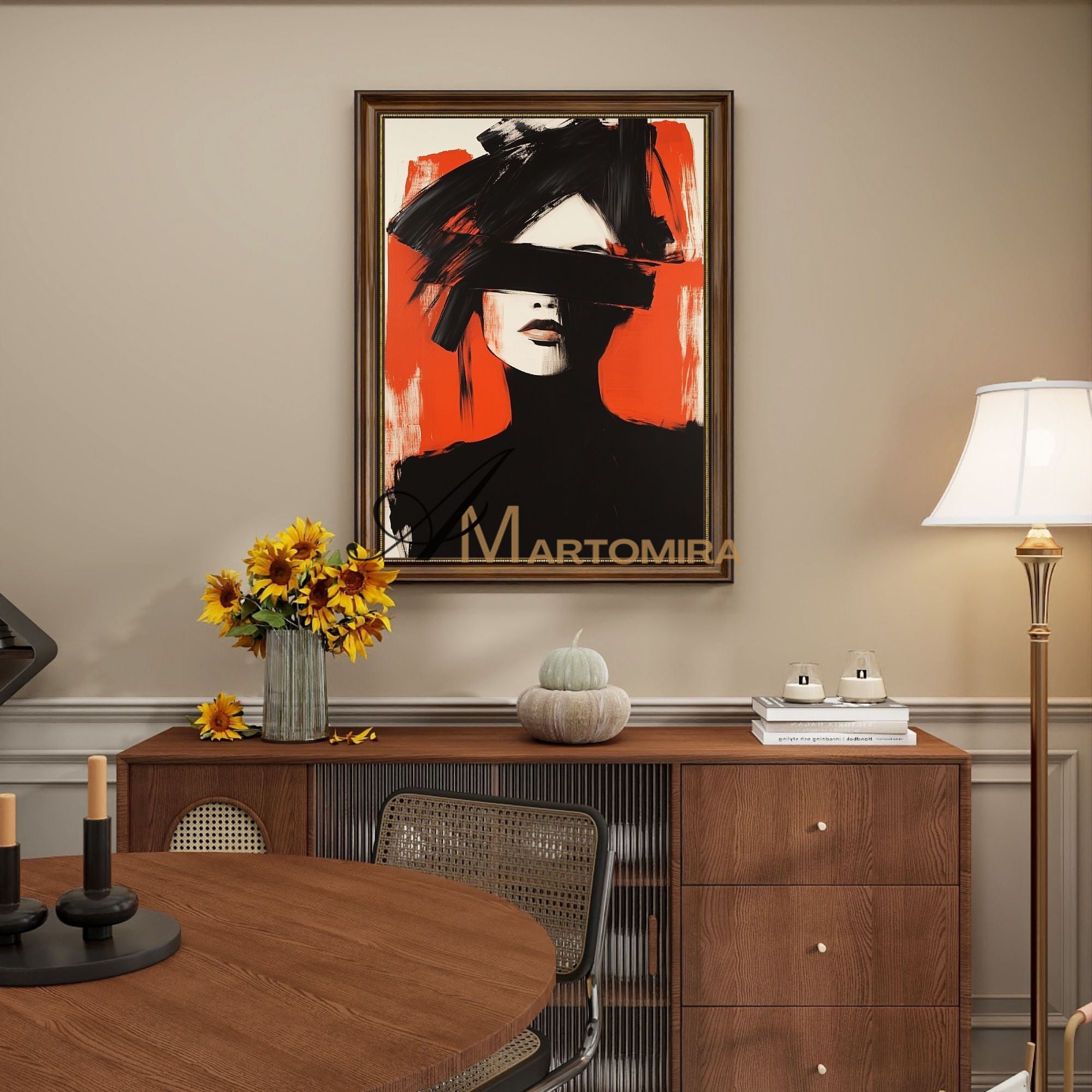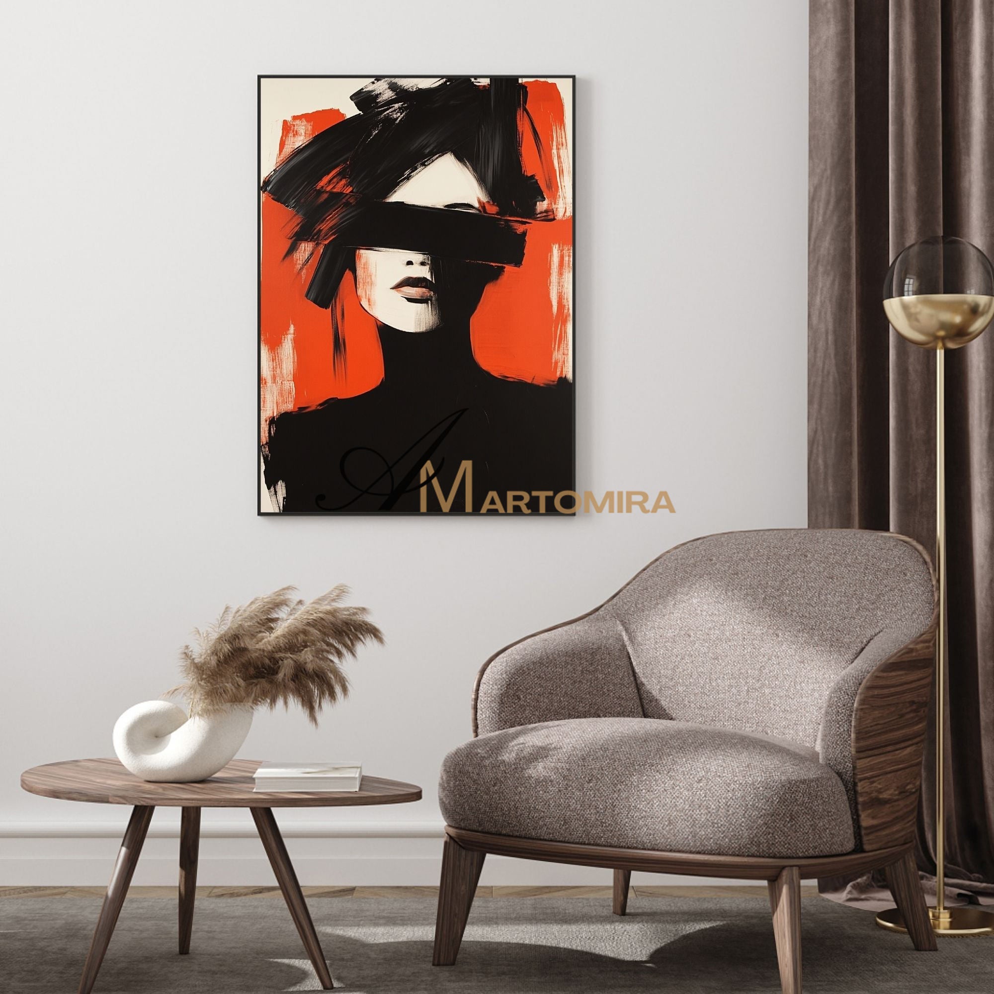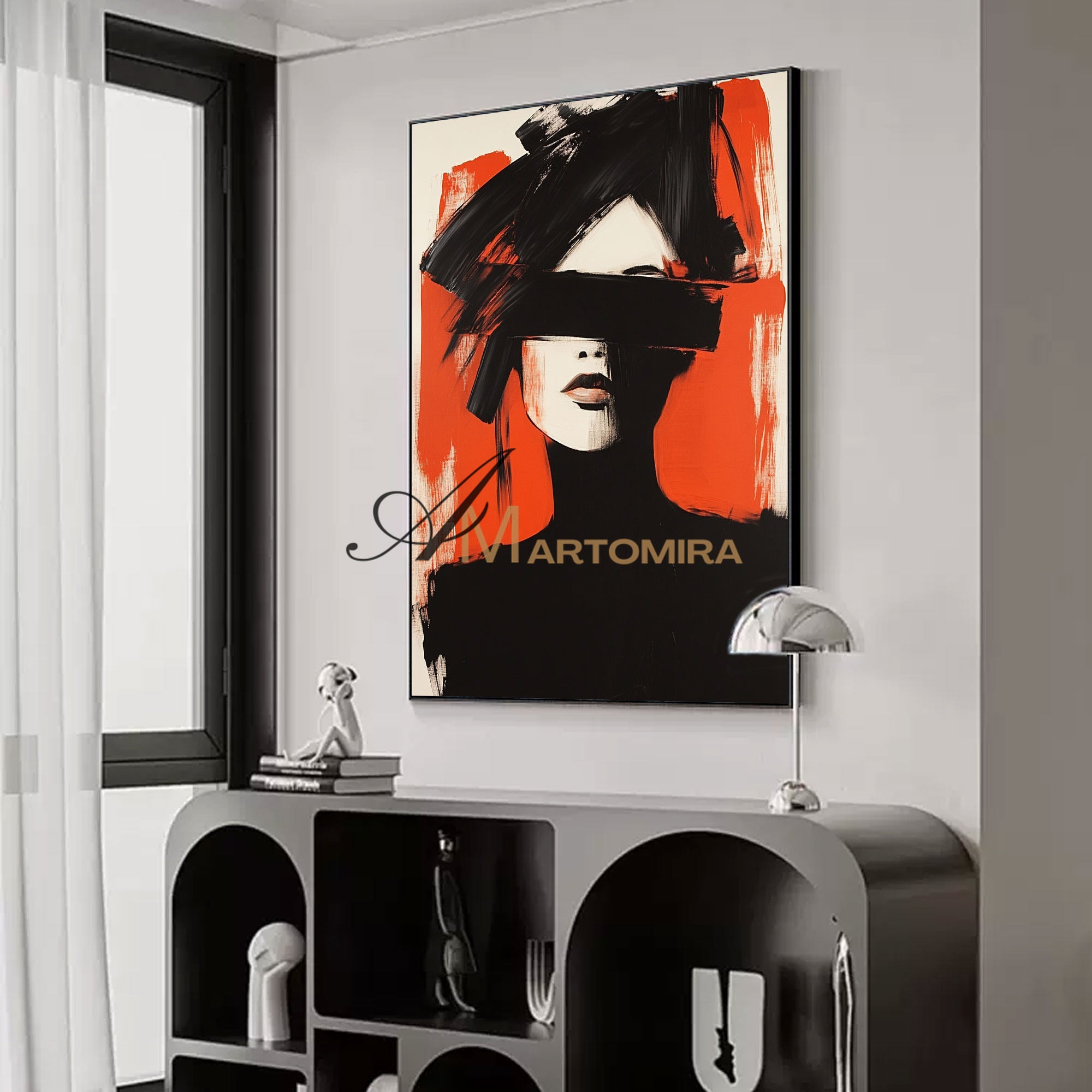 Frauenporträts | Wandbilder in Rot, Schwarz und Weiß | Abstrakte Porträts | Großformatige Wandbilder #AP025