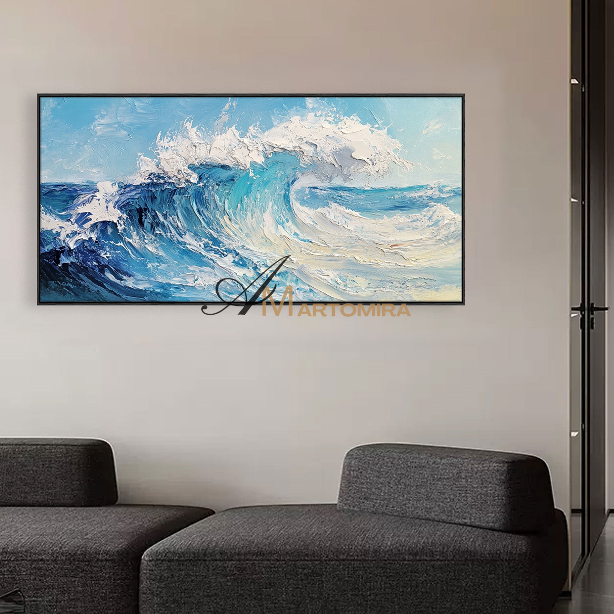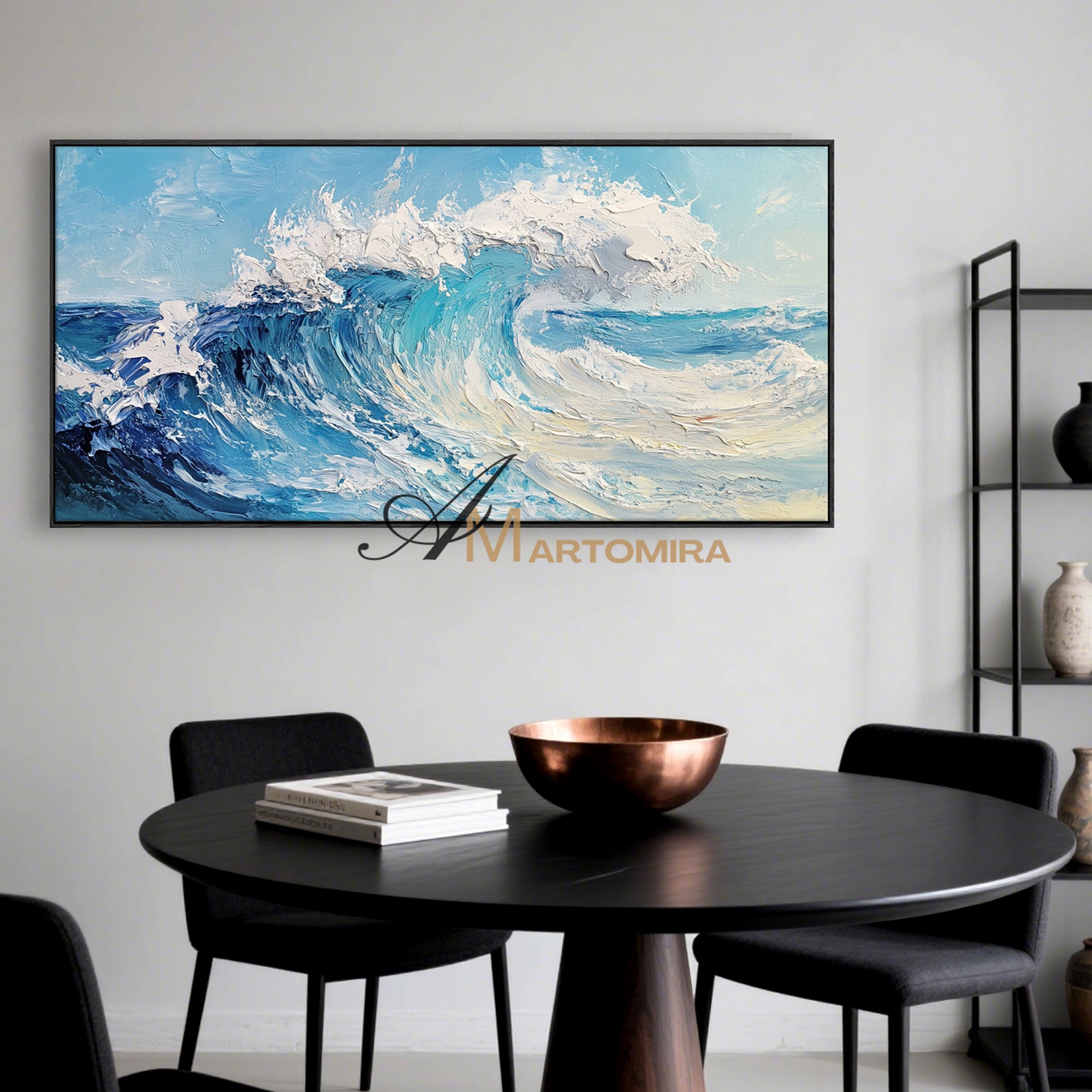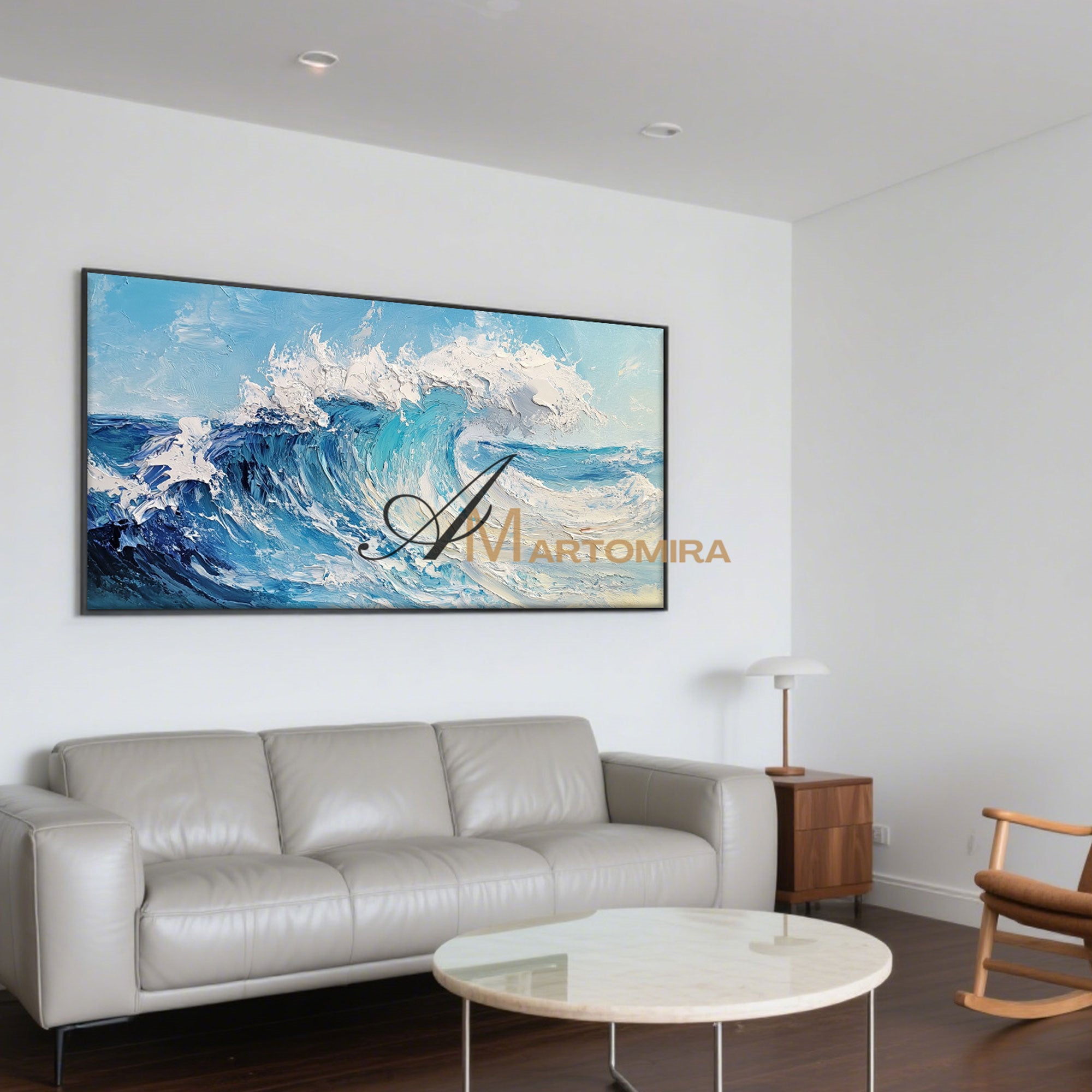 Wellenbild | Gemälde des blauen Ozeans | Großformatige, strukturierte Wandkunst | Abstraktes Ozeanbild #POS076