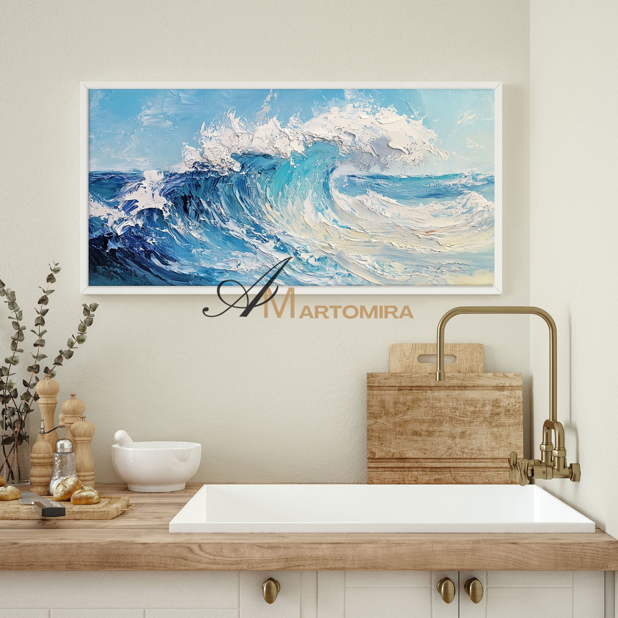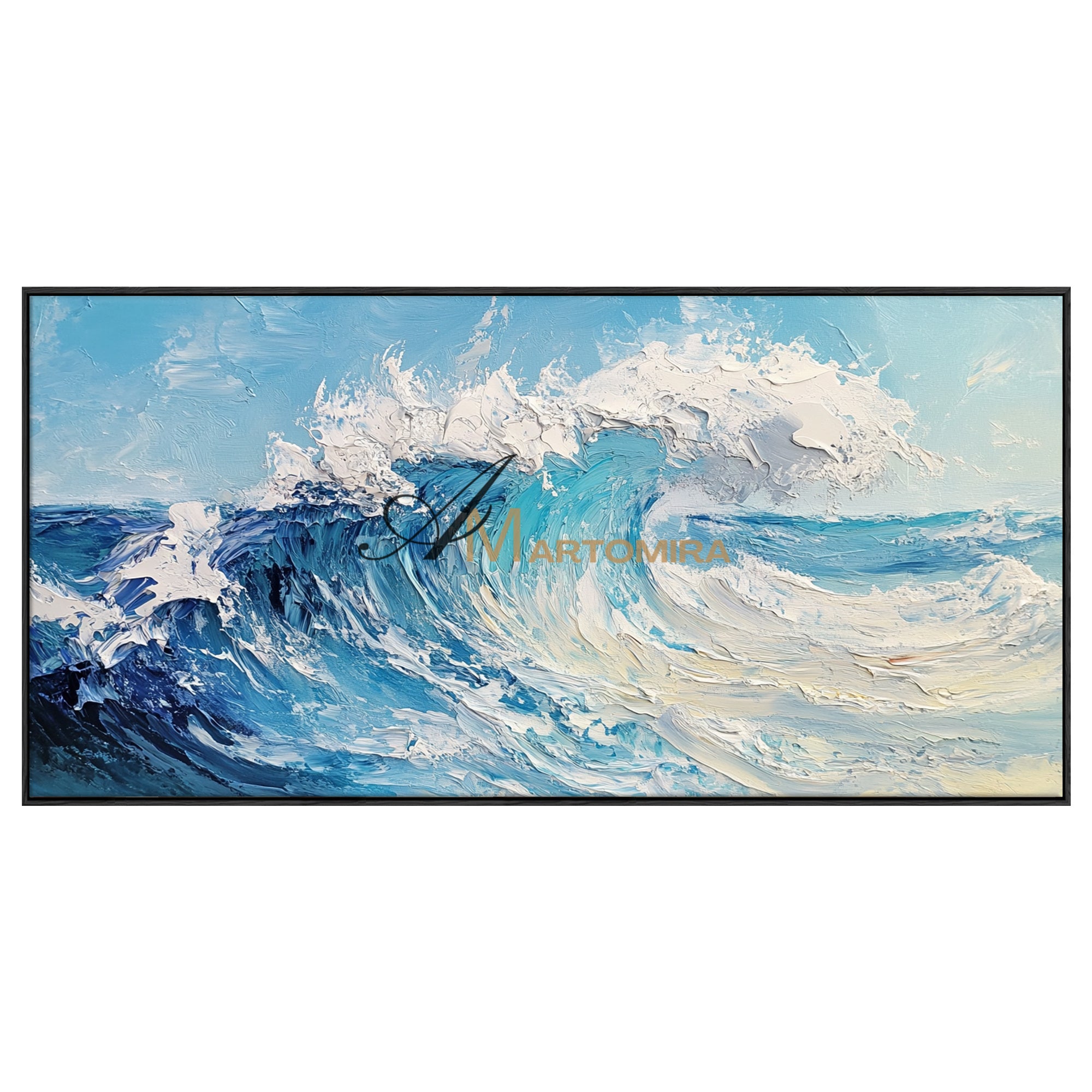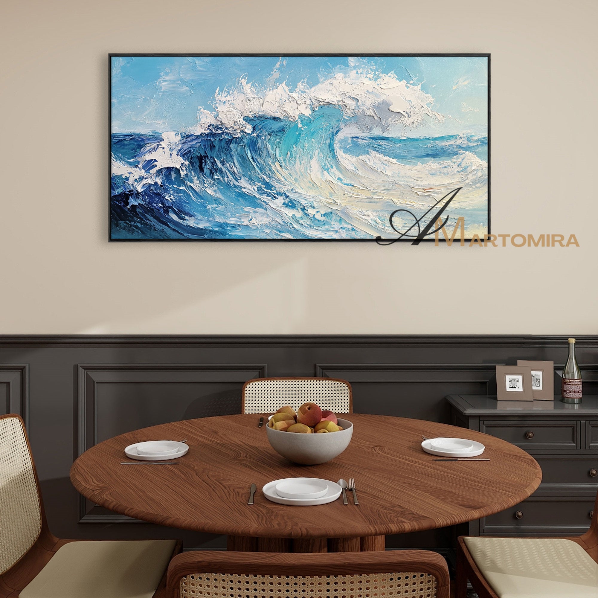 Wellenbild | Gemälde des blauen Ozeans | Großformatige, strukturierte Wandkunst | Abstraktes Ozeanbild #POS076