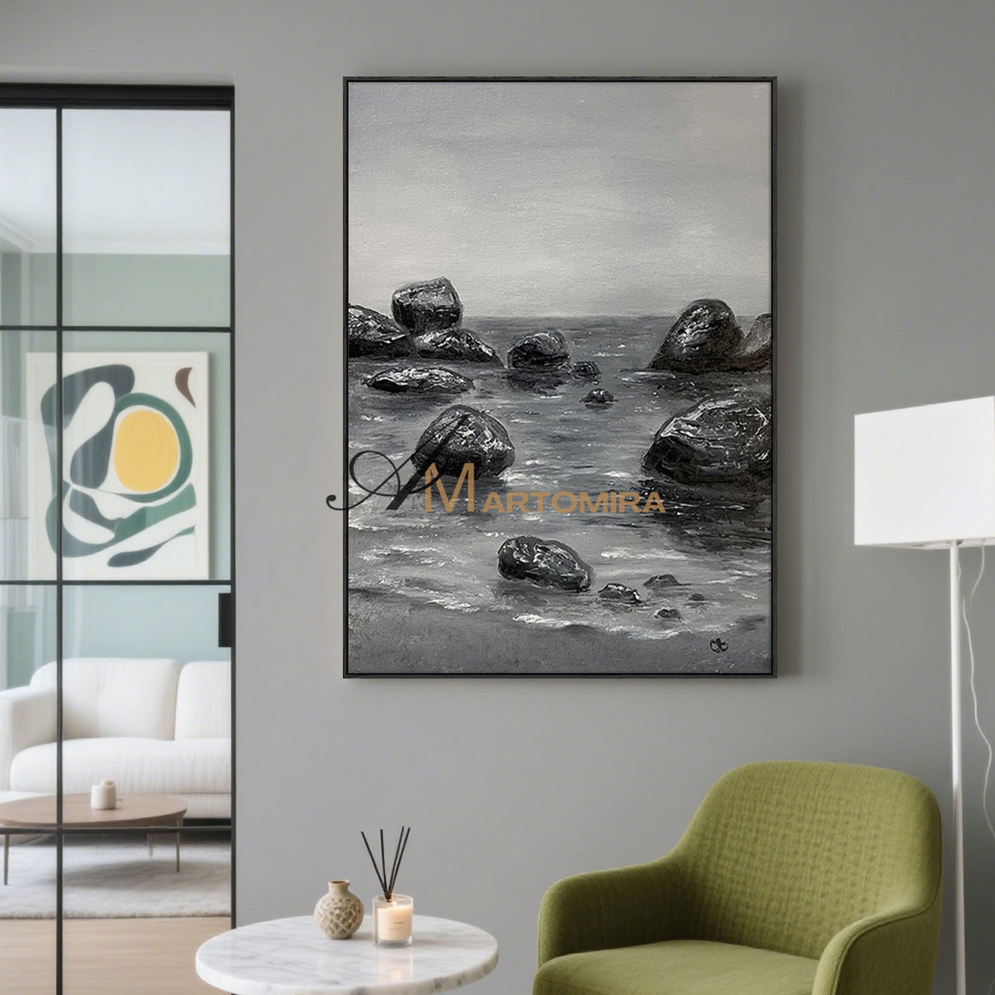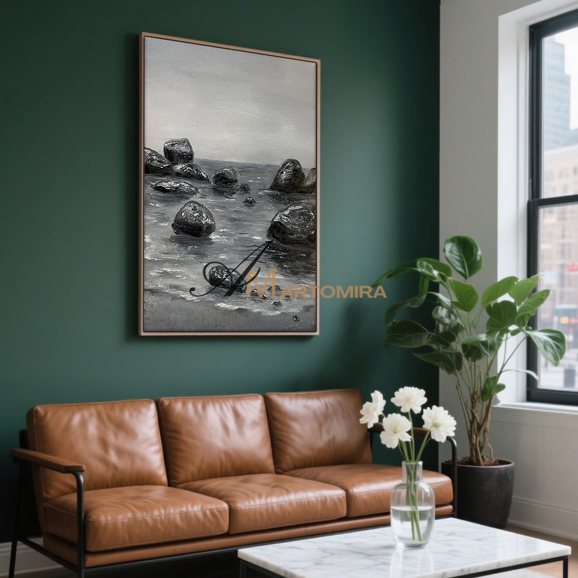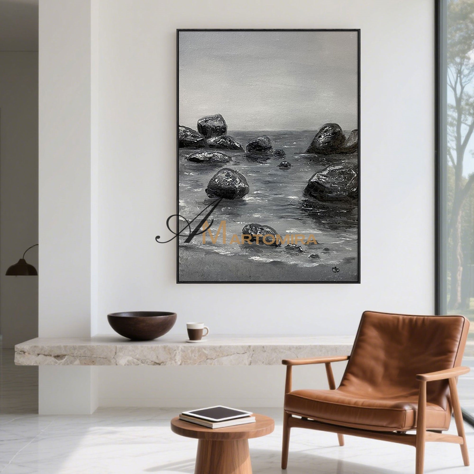 Wandkunst mit Ozeanmotiven | Küstenmotive | Strandlandschaften | Großformatige Schwarz-Weiß-Wandkunst #MF053