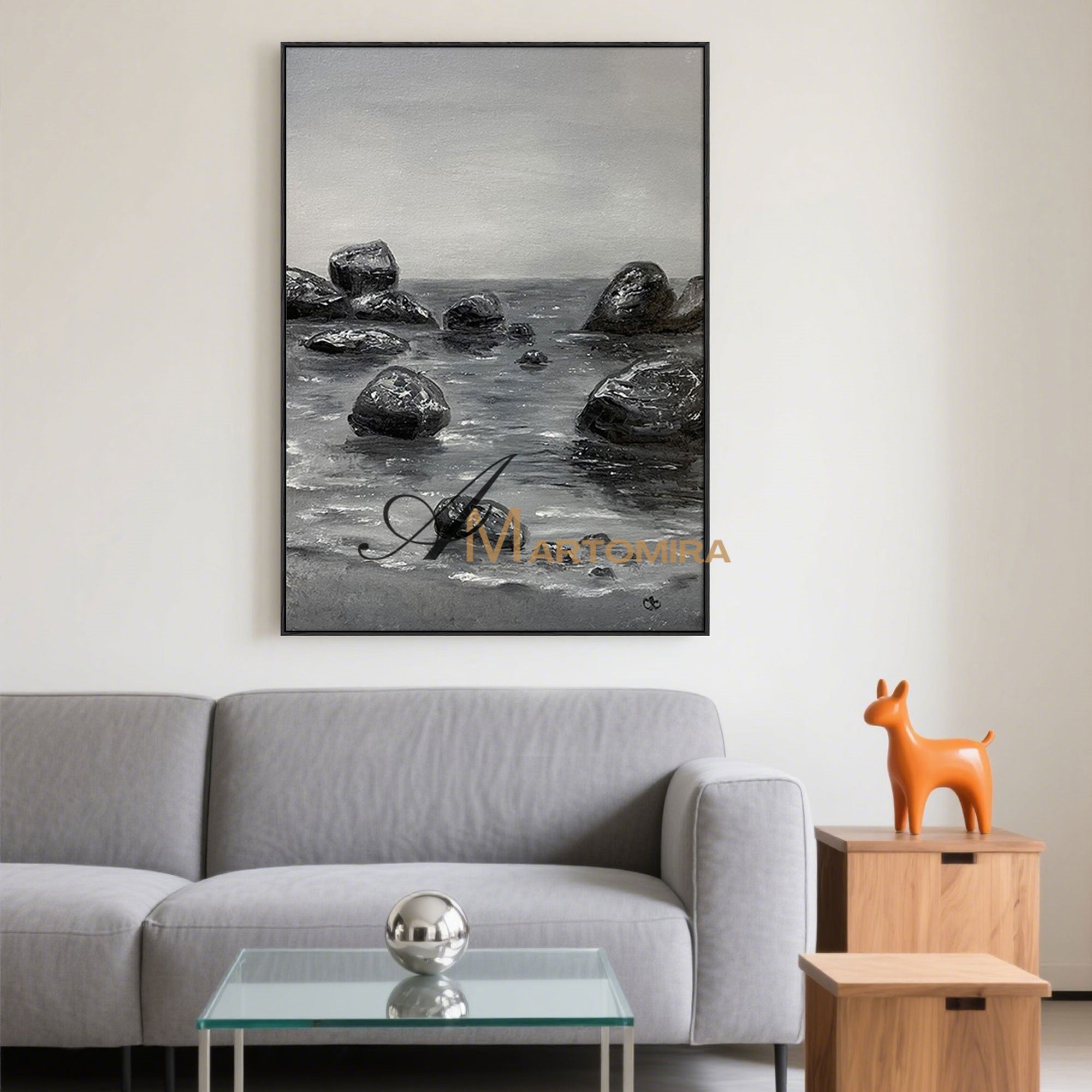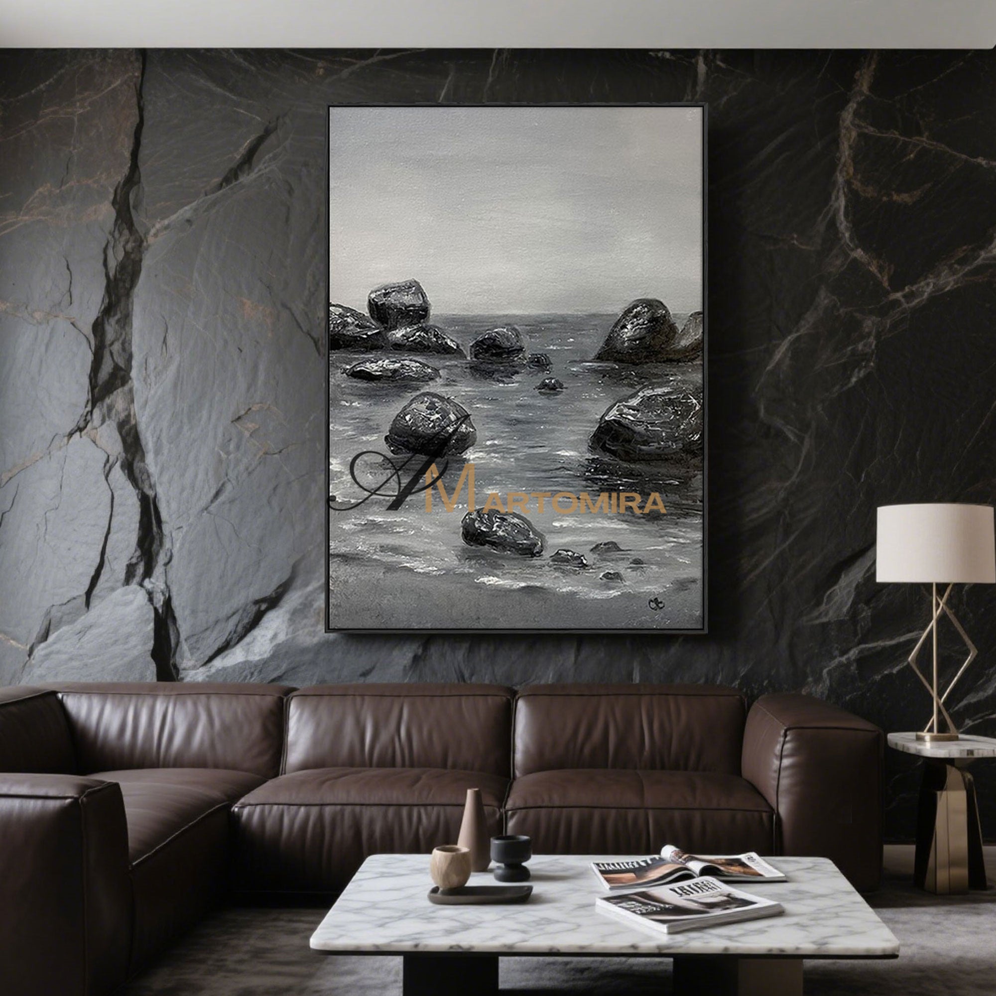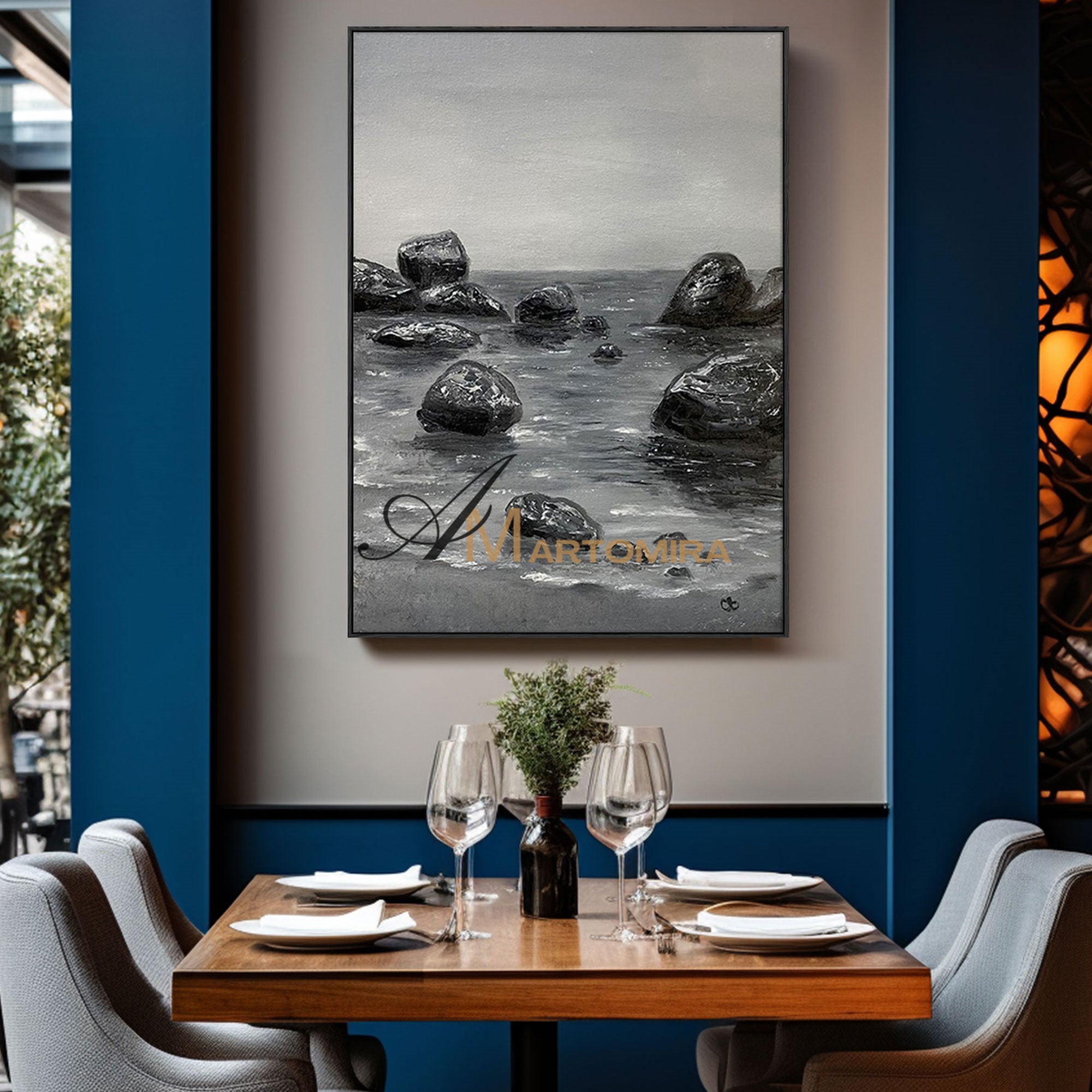 Wandkunst mit Ozeanmotiven | Küstenmotive | Strandlandschaften | Großformatige Schwarz-Weiß-Wandkunst #MF053
