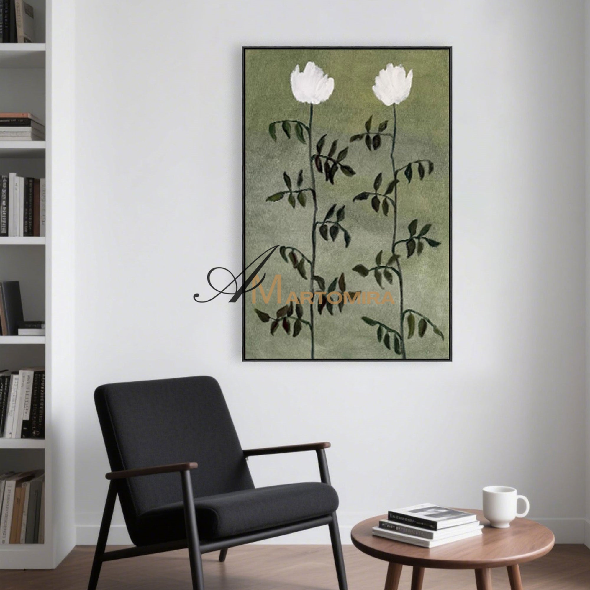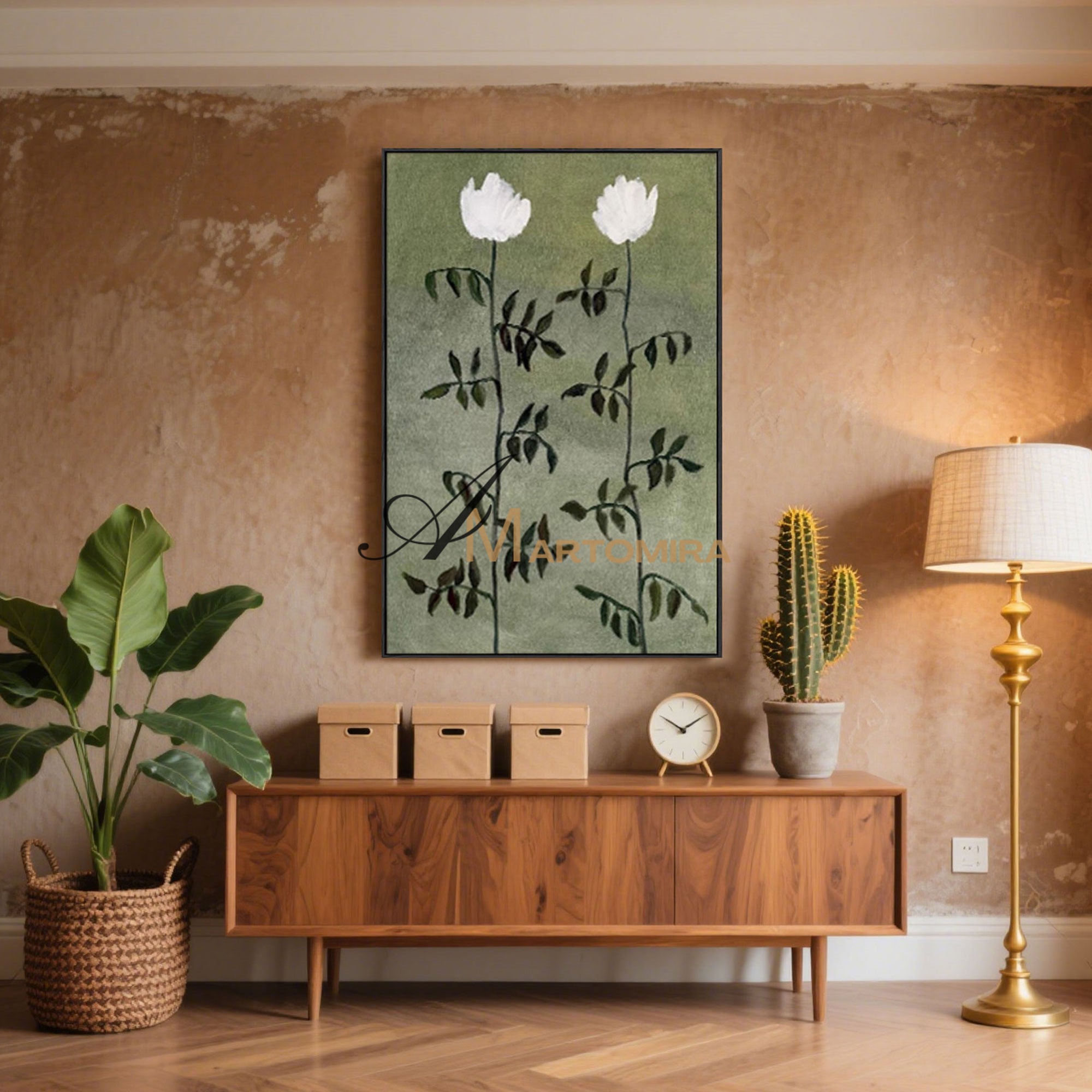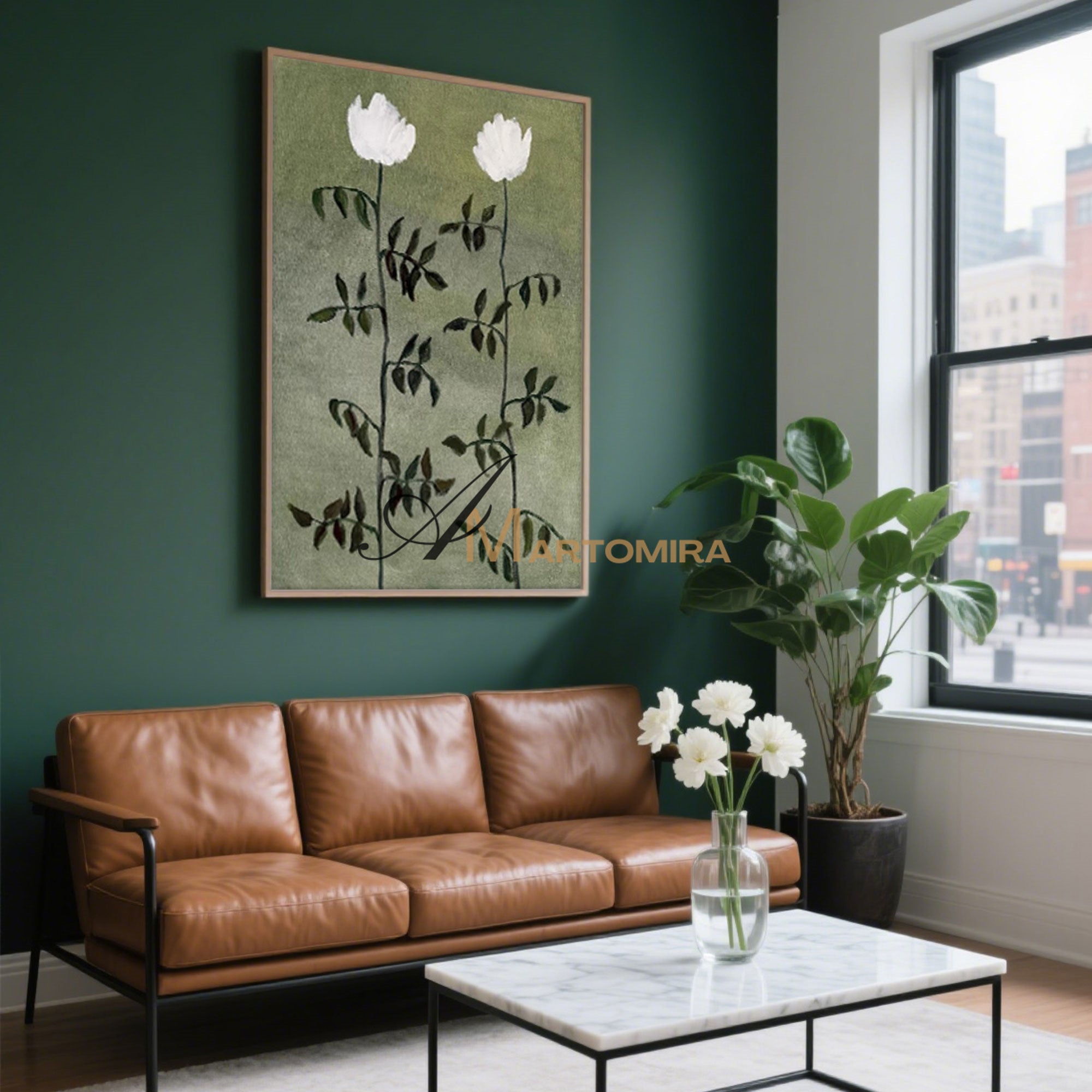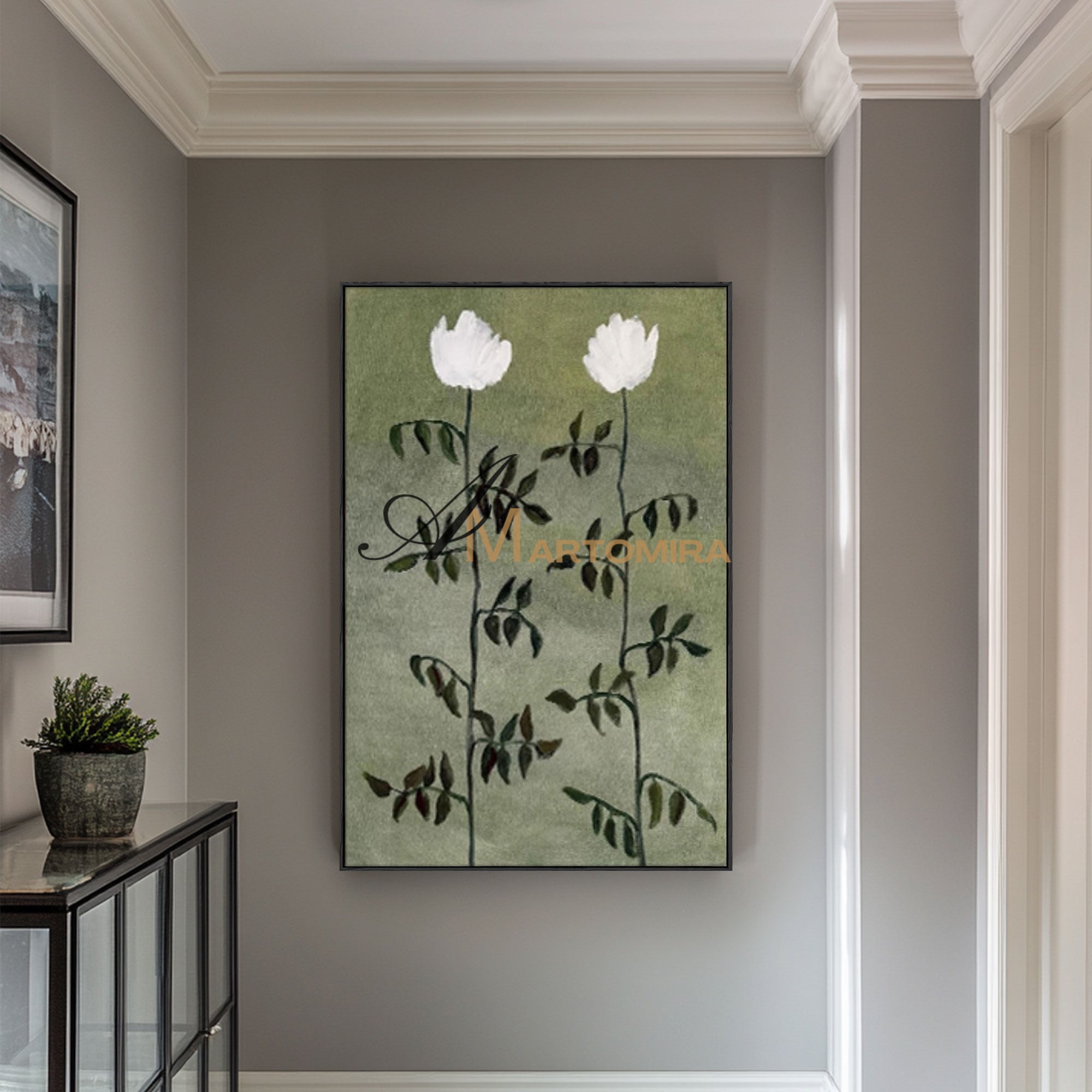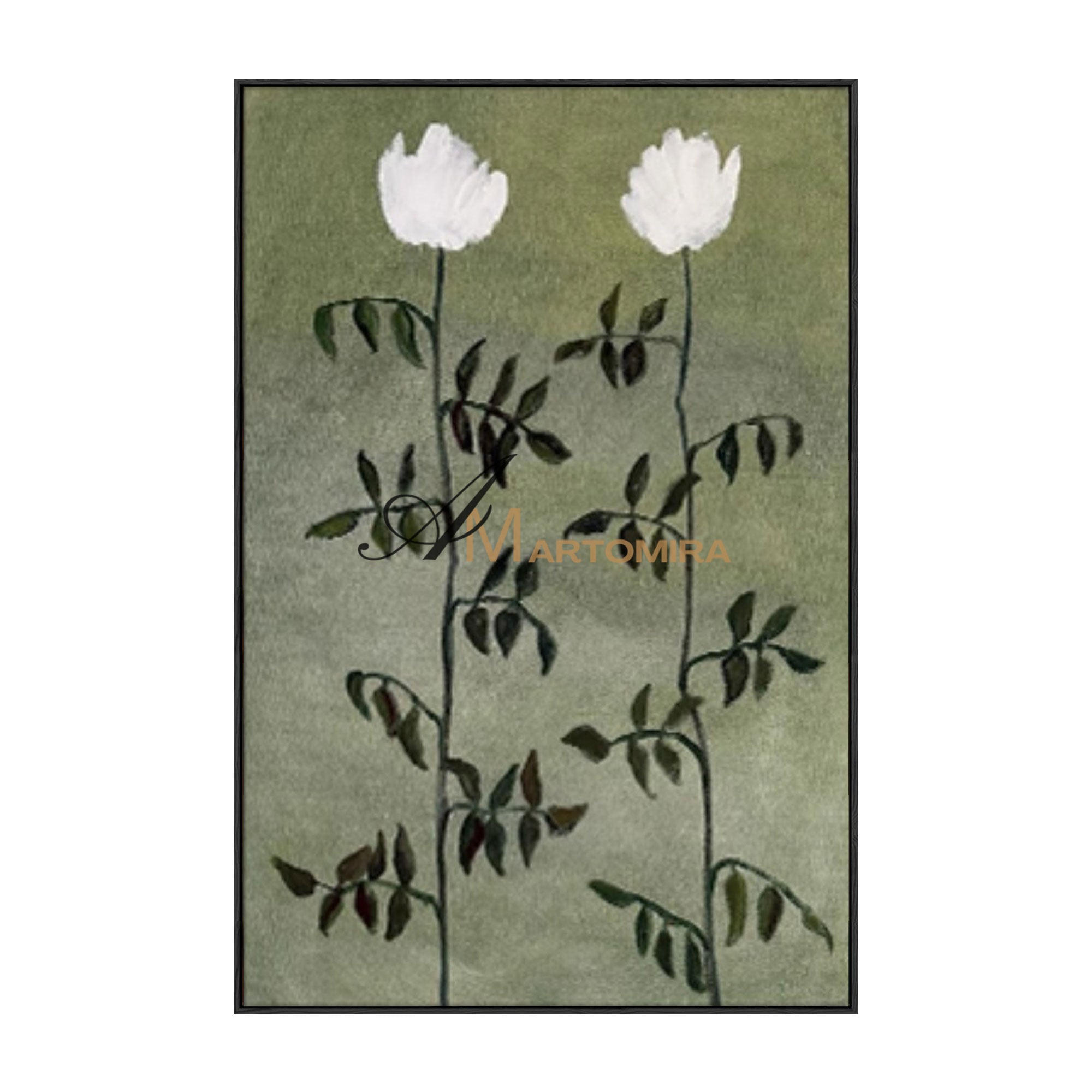 Blumenbild auf Leinwand | Grüne Wandkunst | Blumenmalerei auf Leinwand | Acrylfarbe #MF032