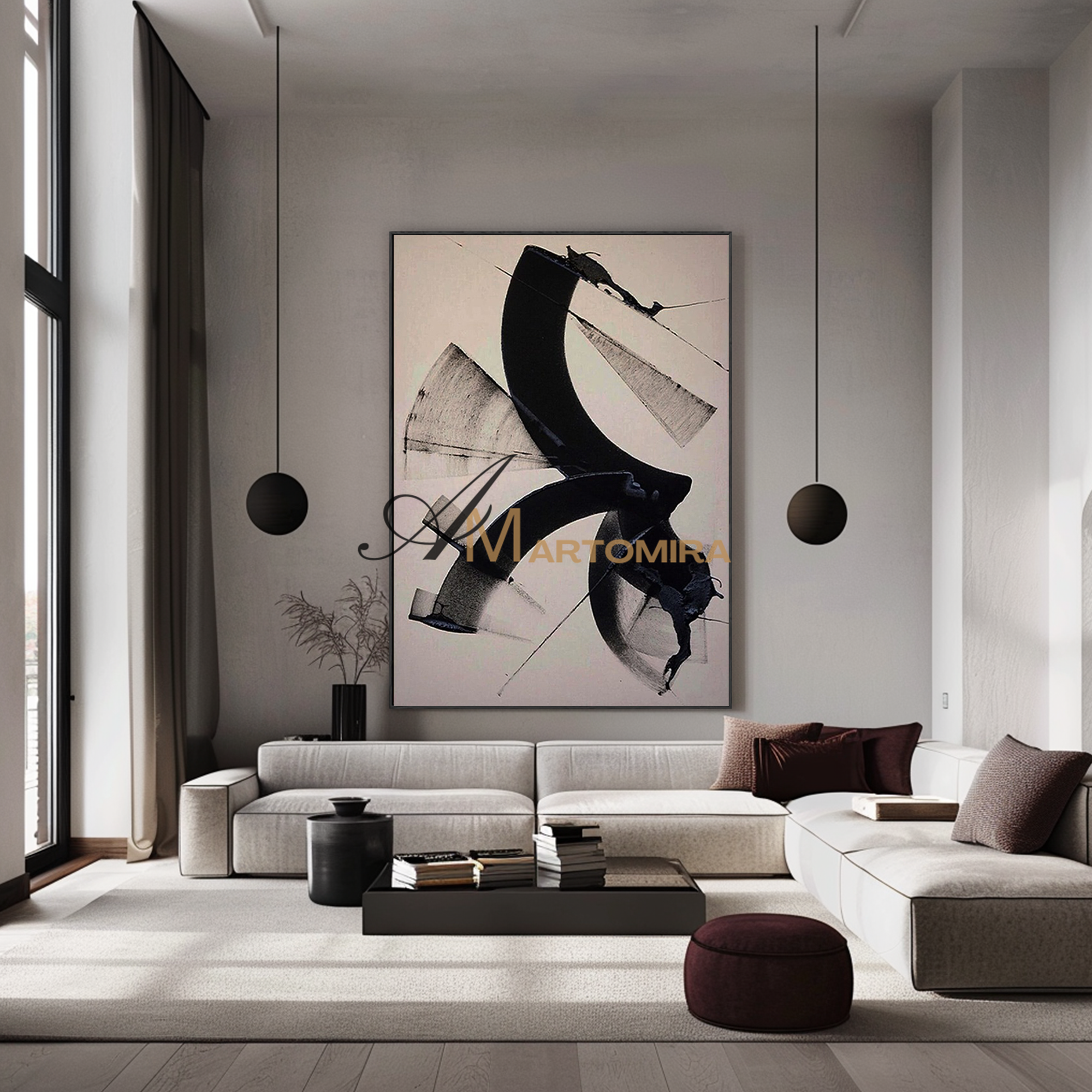 Enhance your interior with our contemporary hand-painted wall art, blending texture, form, and timeless style.