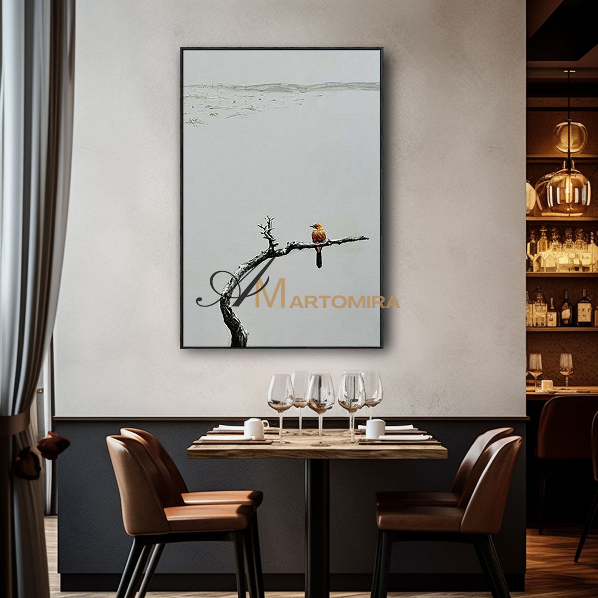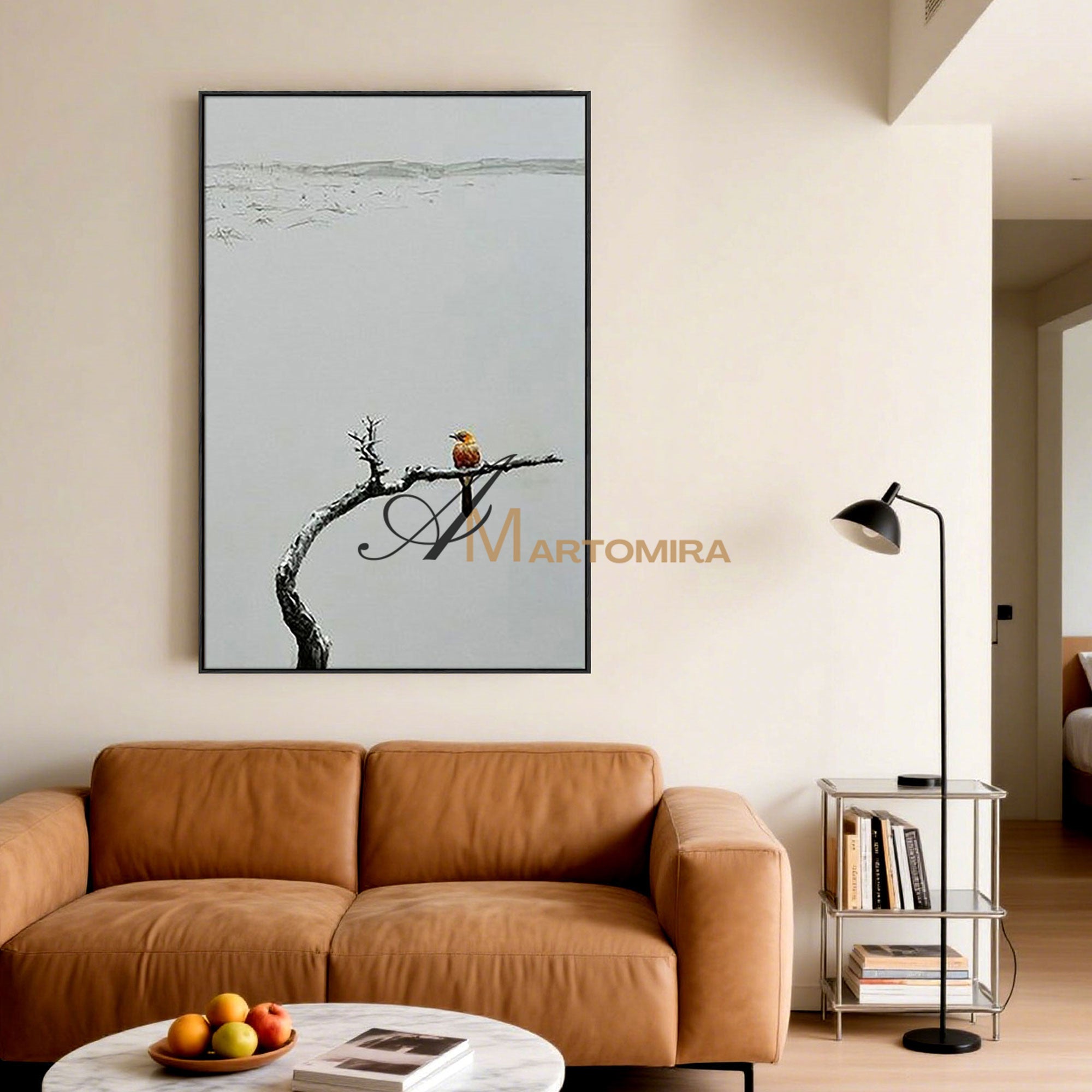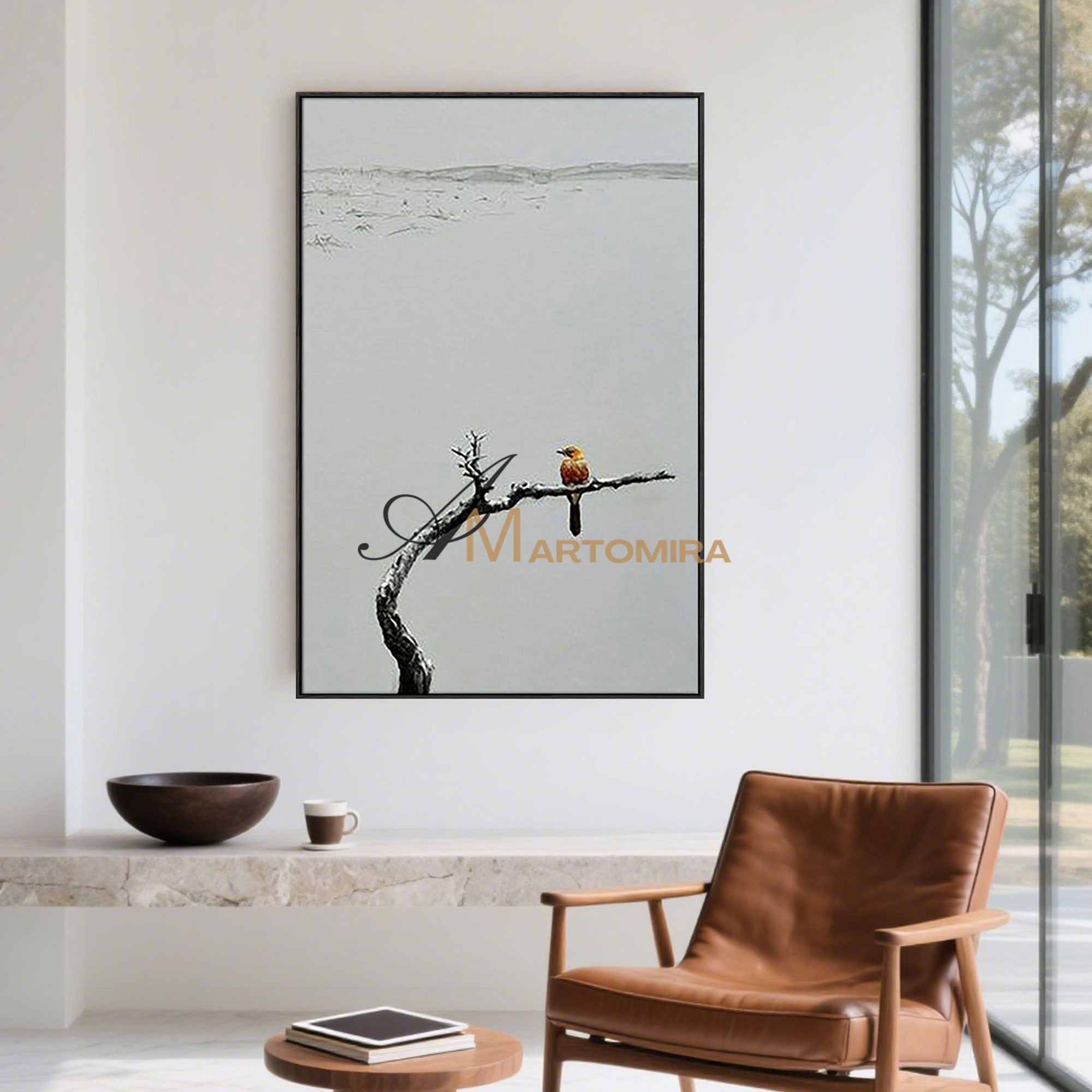 Vogel-Wandbild | Acryl-Landschaftsmalerei | Großes abstraktes Wandbild in neutralen Farben | Moderne Kunst #MF075