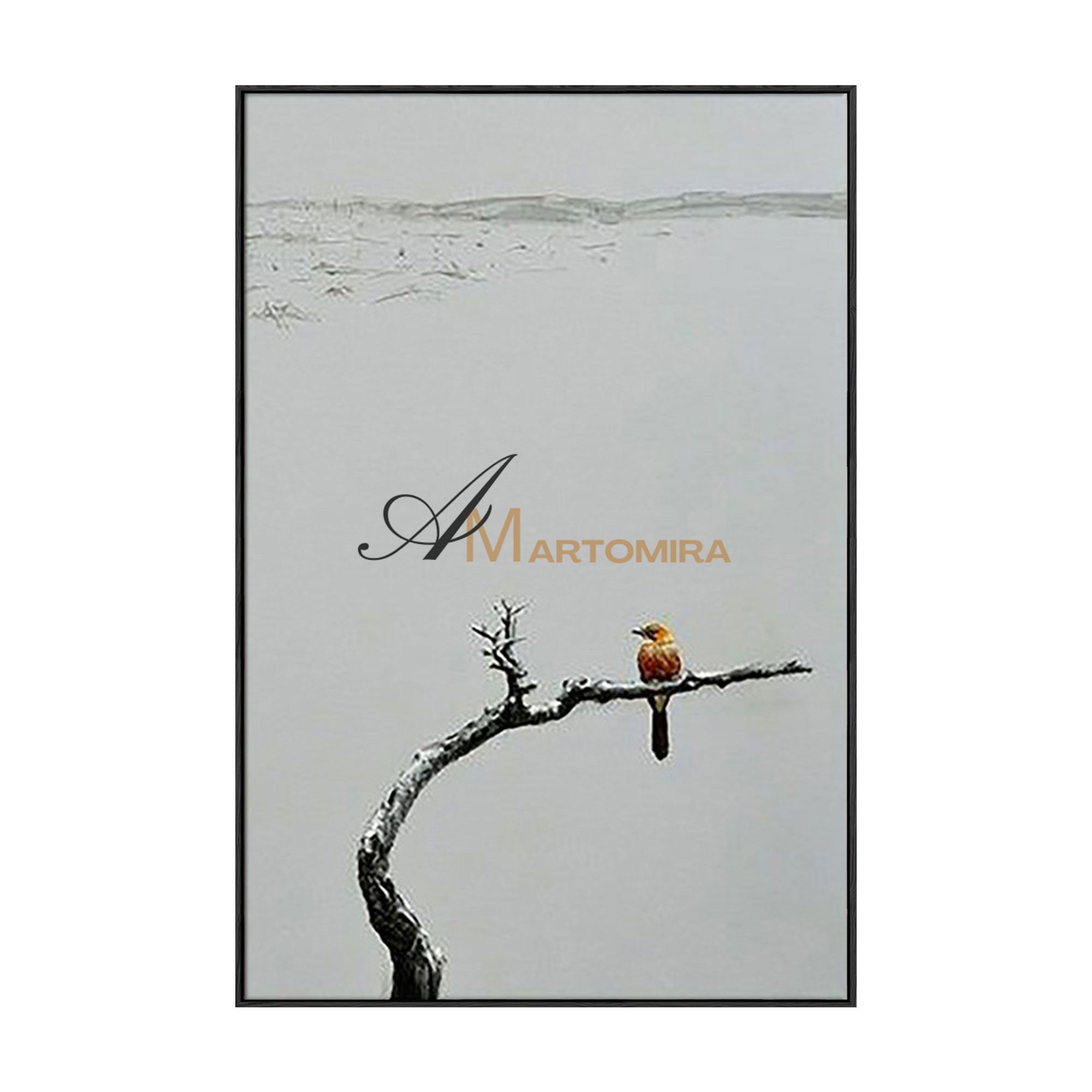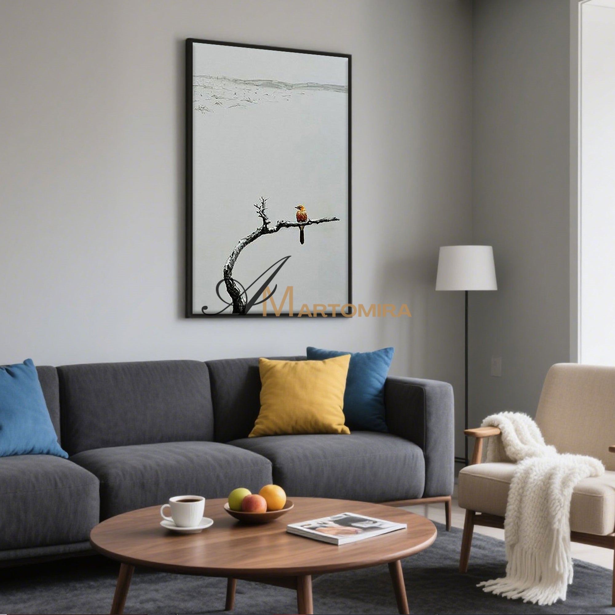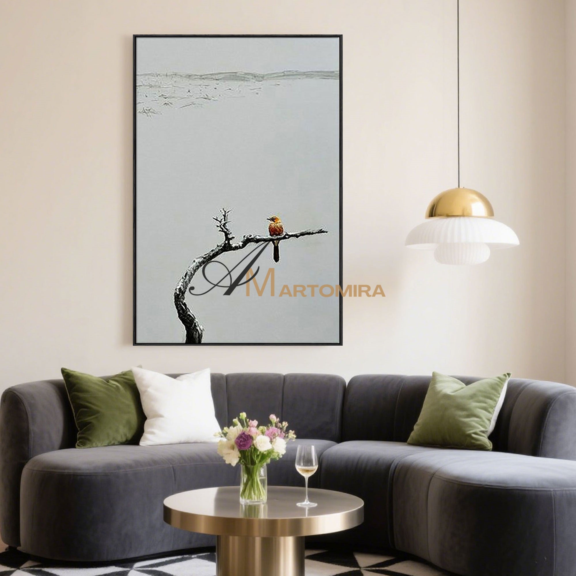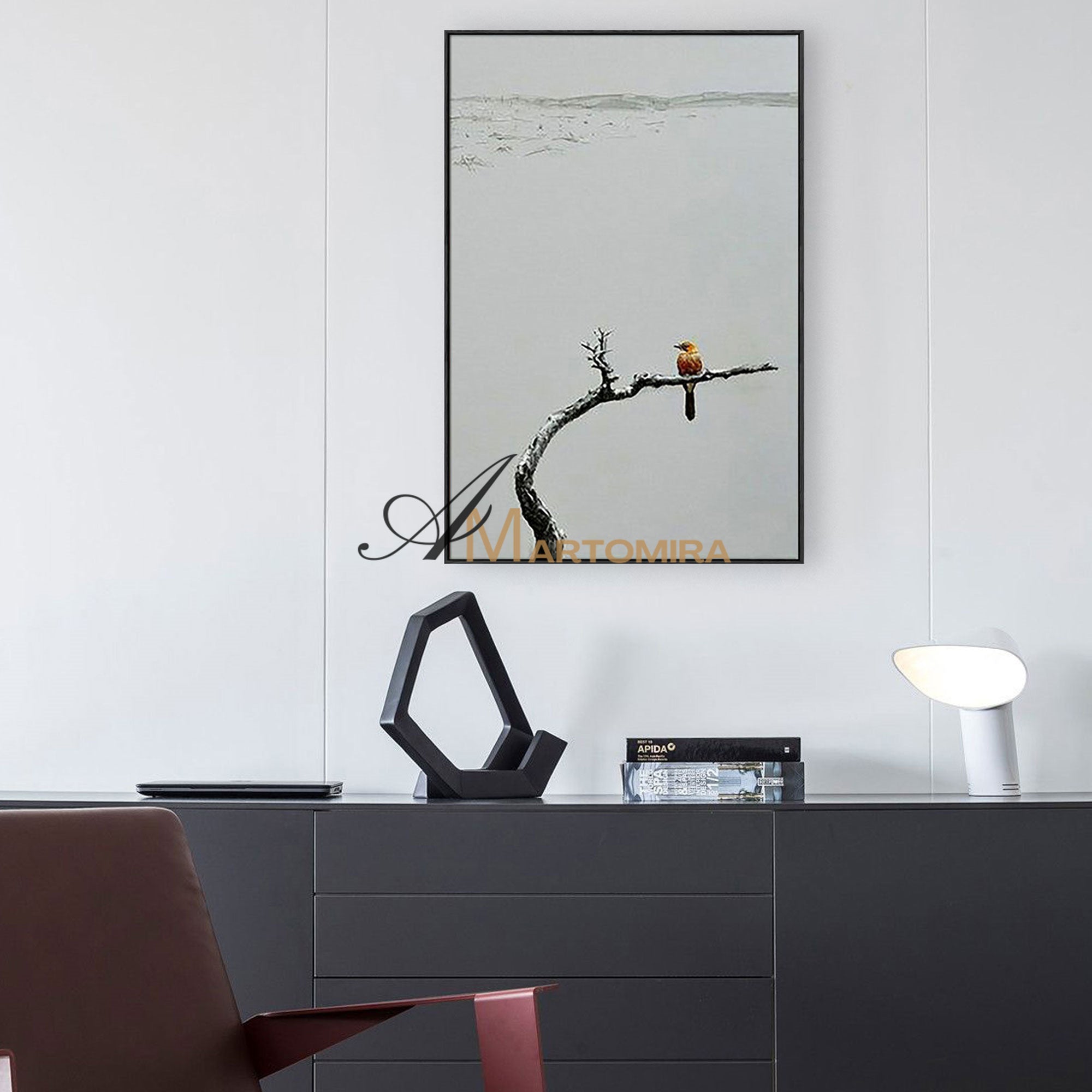 Vogel-Wandbild | Acryl-Landschaftsmalerei | Großes abstraktes Wandbild in neutralen Farben | Moderne Kunst #MF075