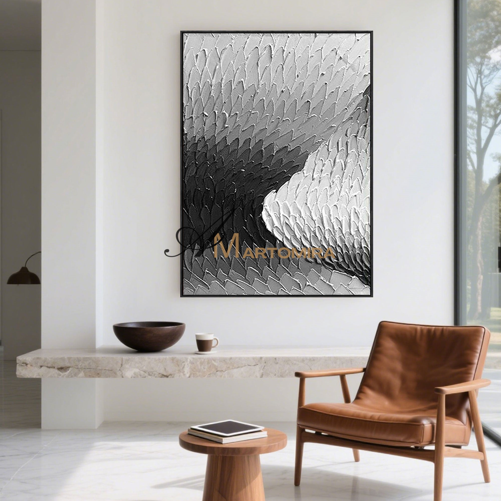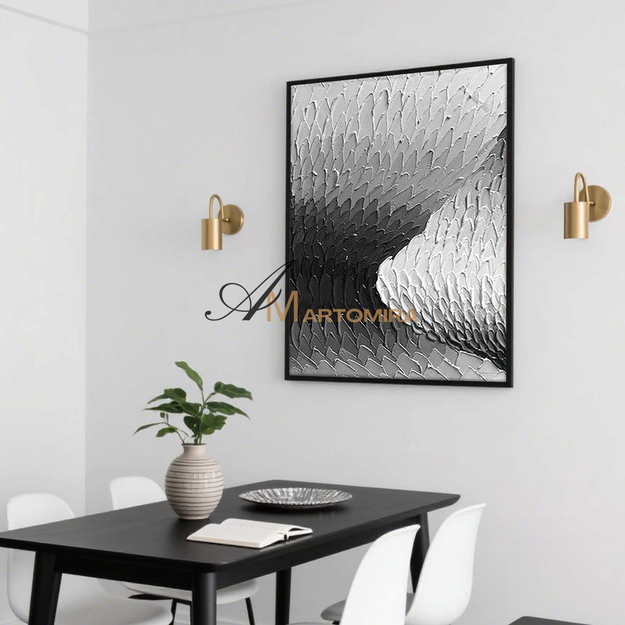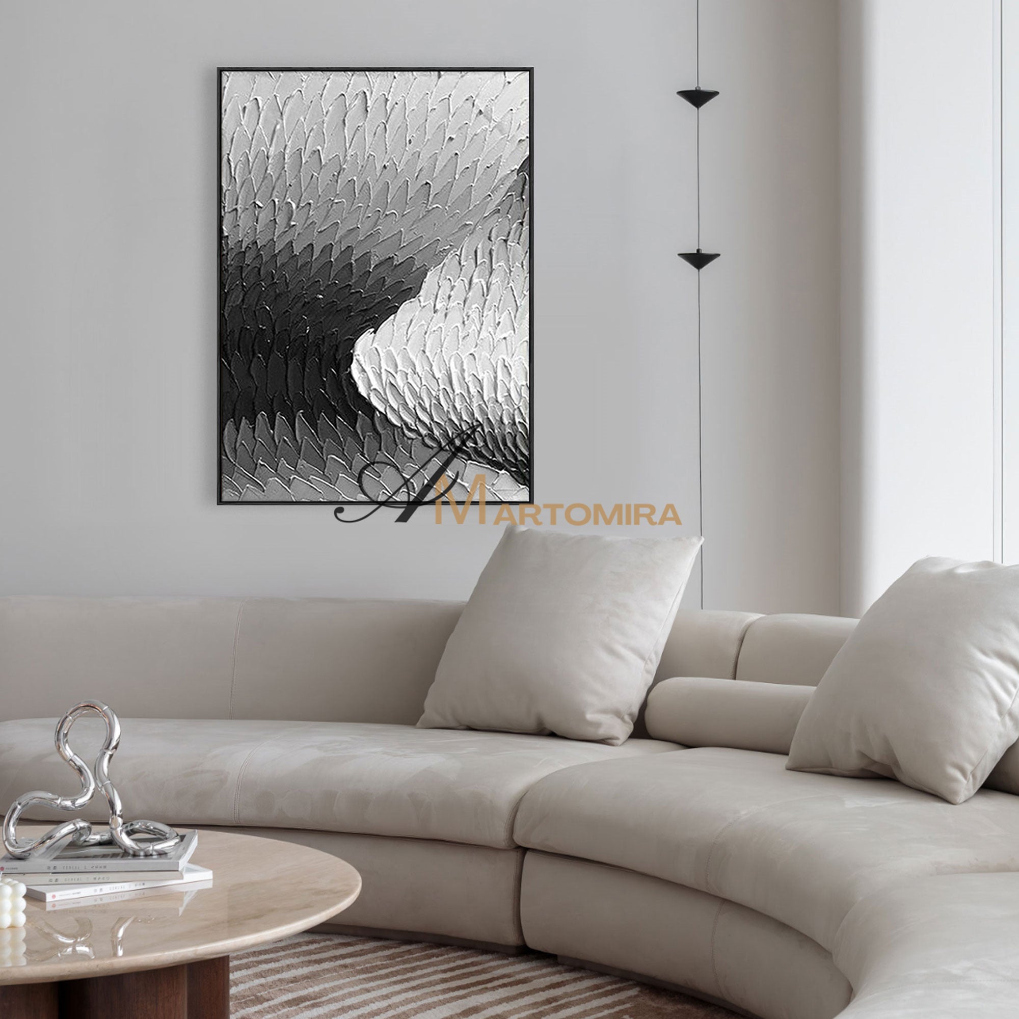 Enhance your interior with our contemporary hand-painted wall art, blending texture, form, and timeless style.
