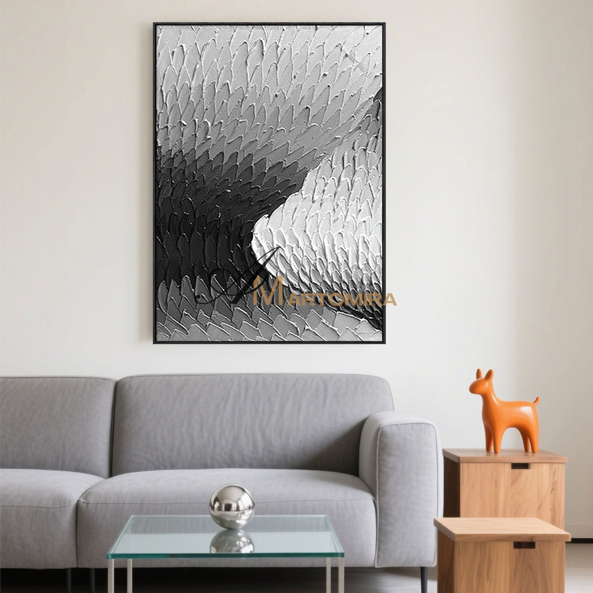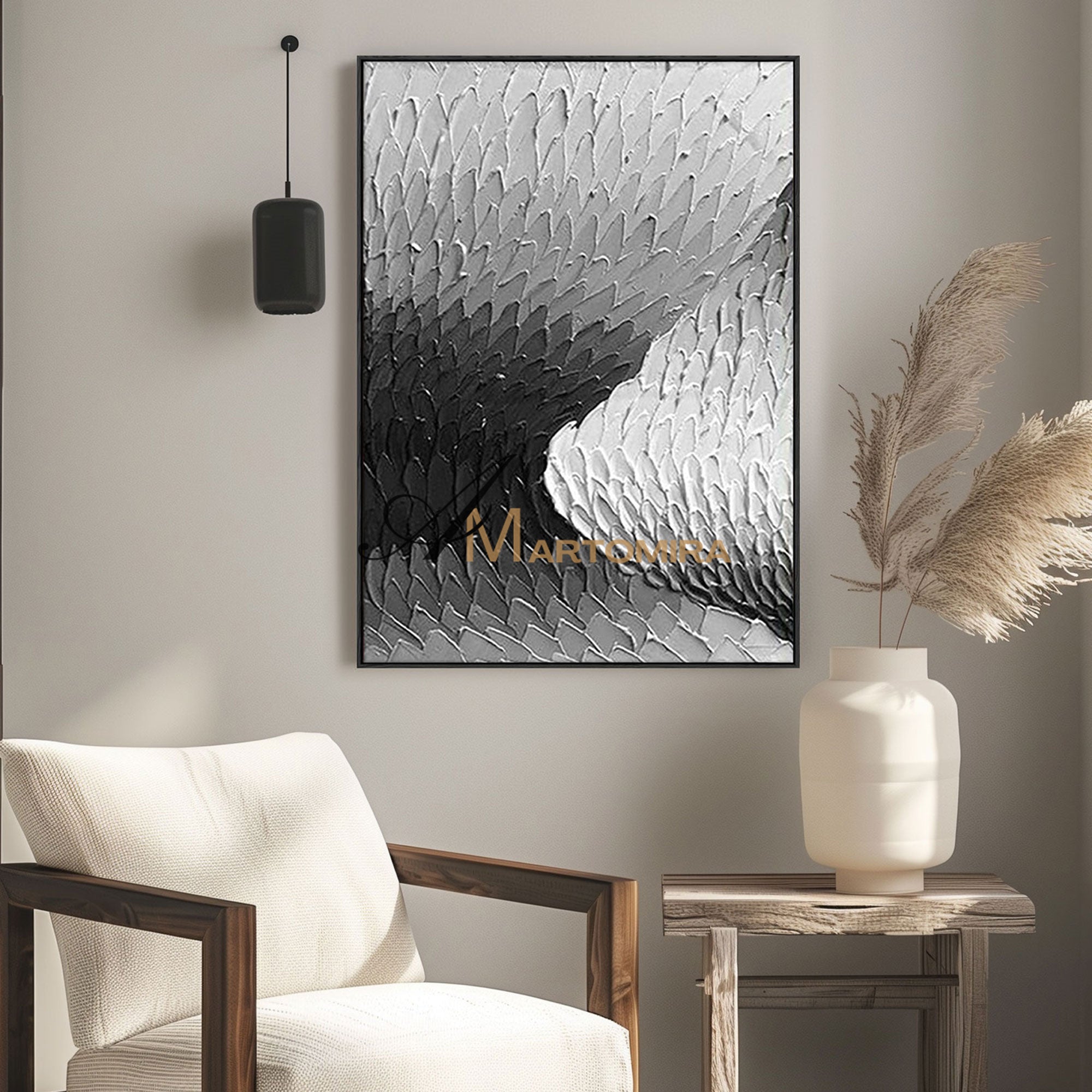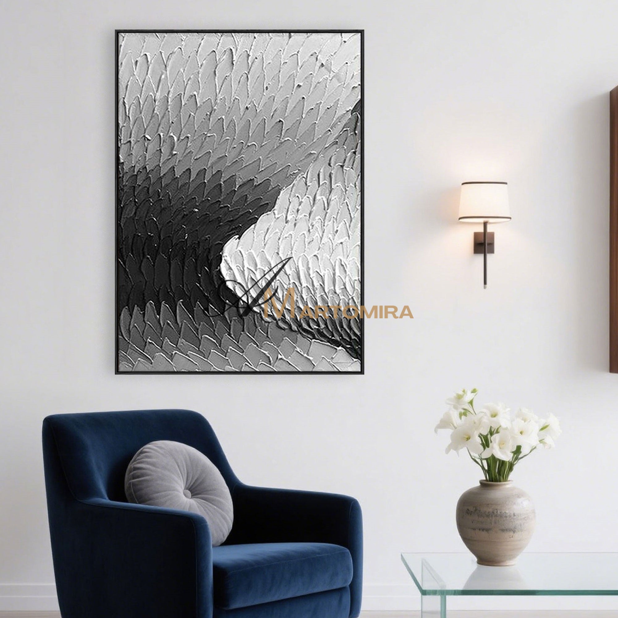 Enhance your interior with our contemporary hand-painted wall art, blending texture, form, and timeless style.