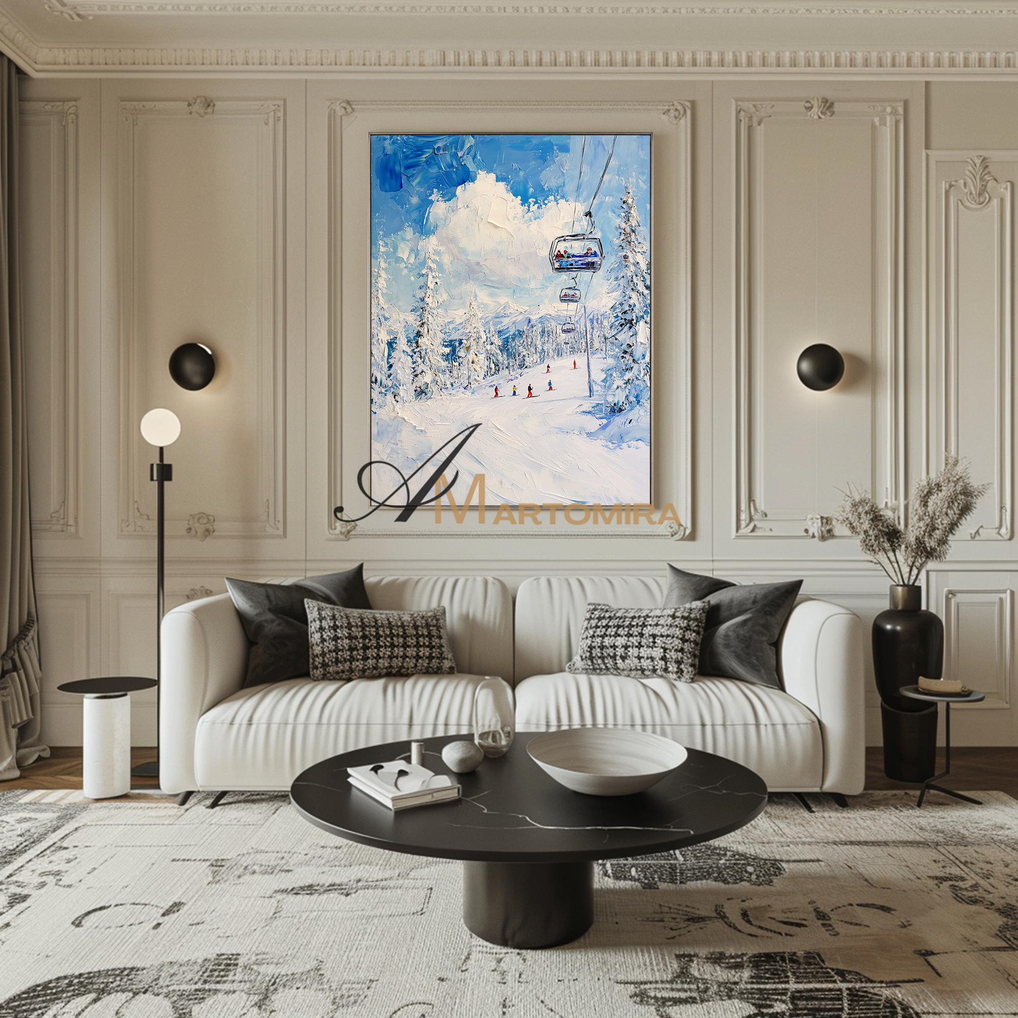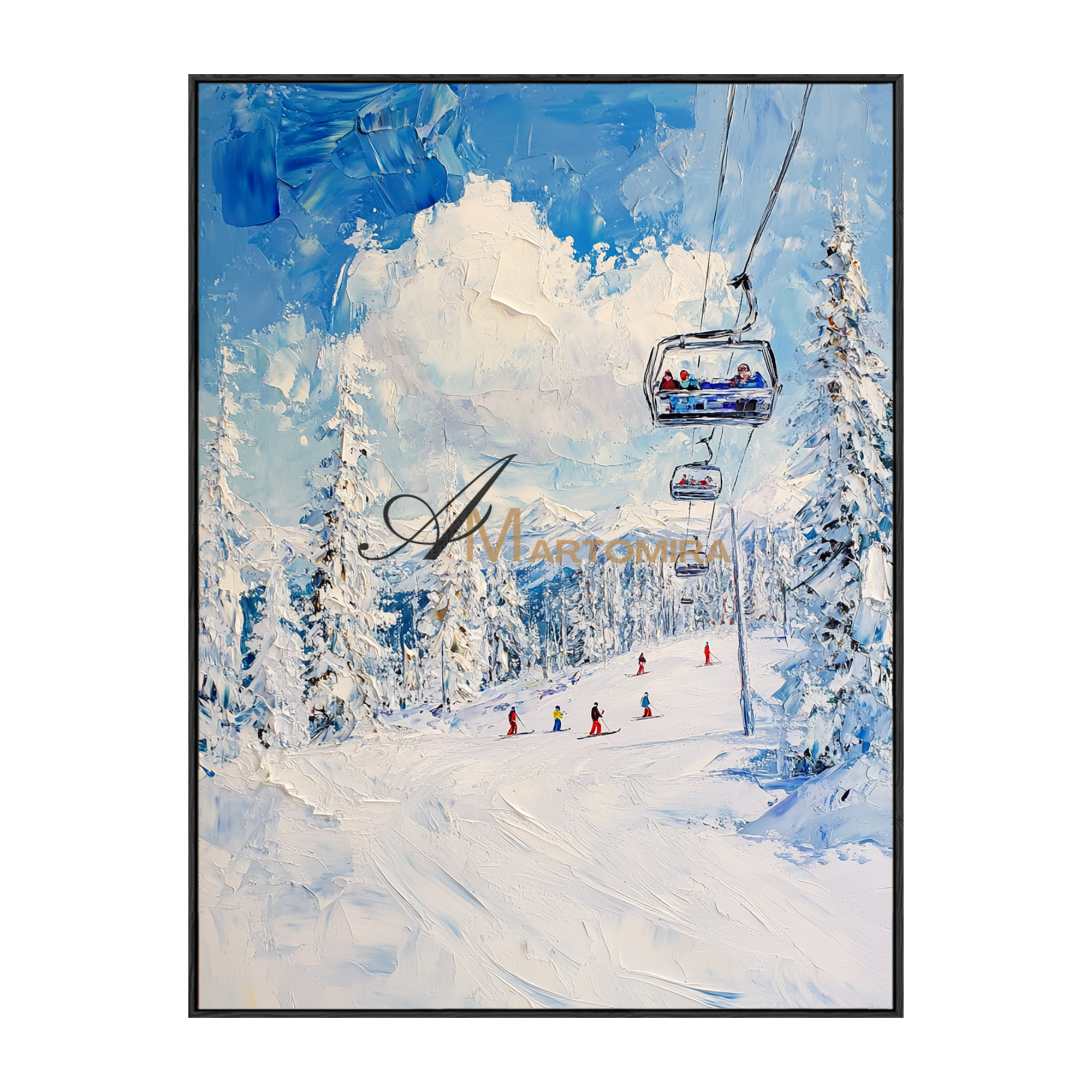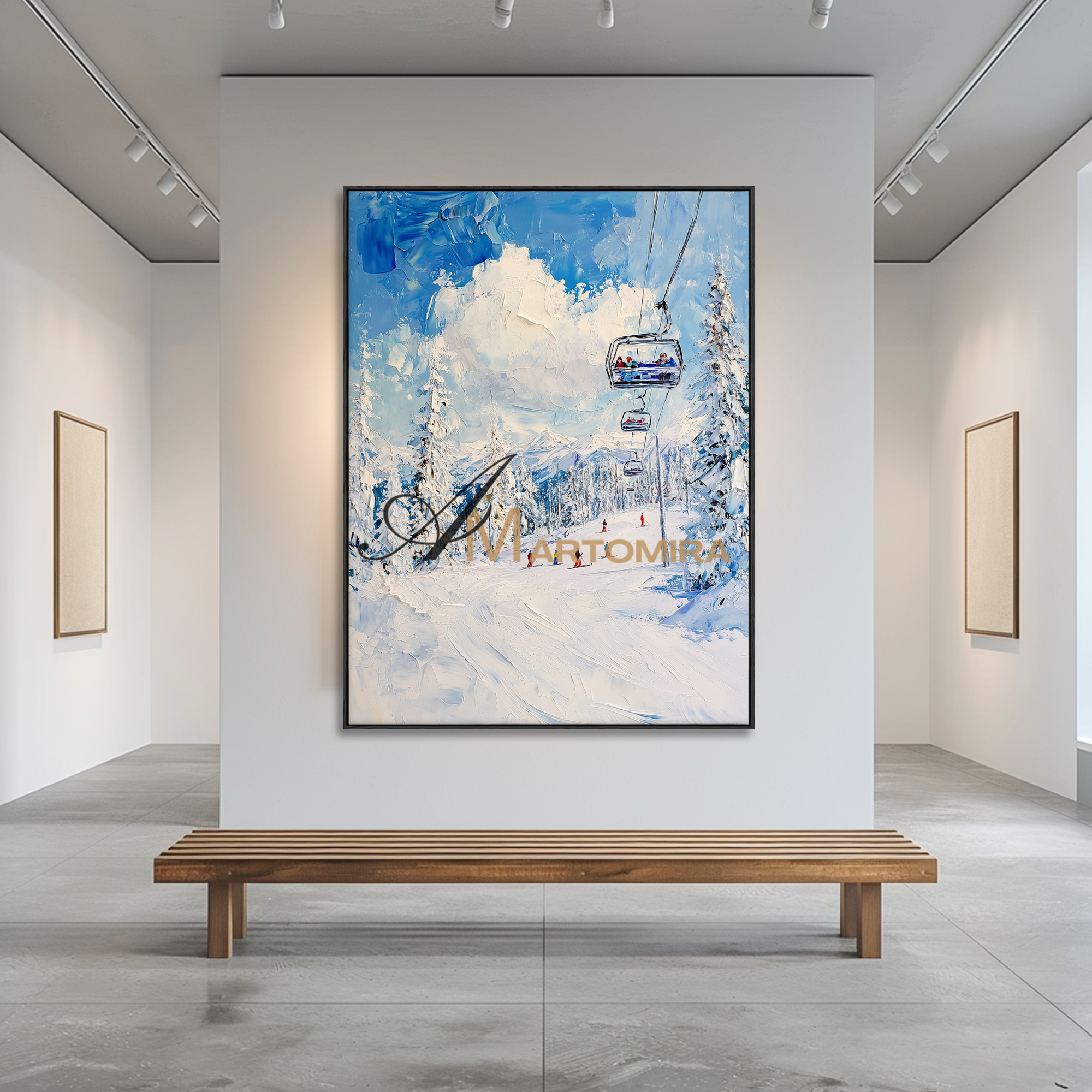 Landschaftsmalerei | Winterkunst | Ski-Gemälde | Verschneite Landschaftsmalerei #CL098