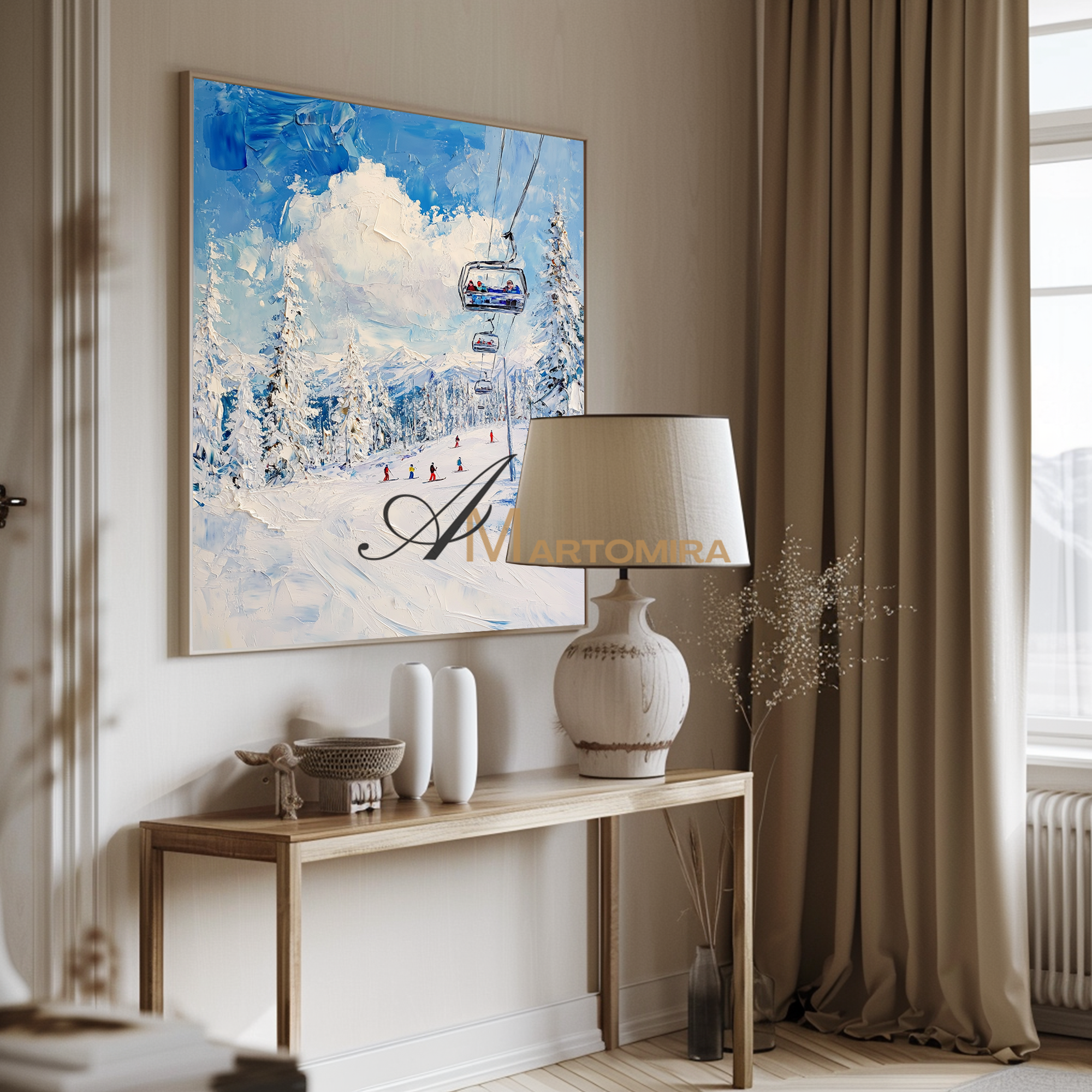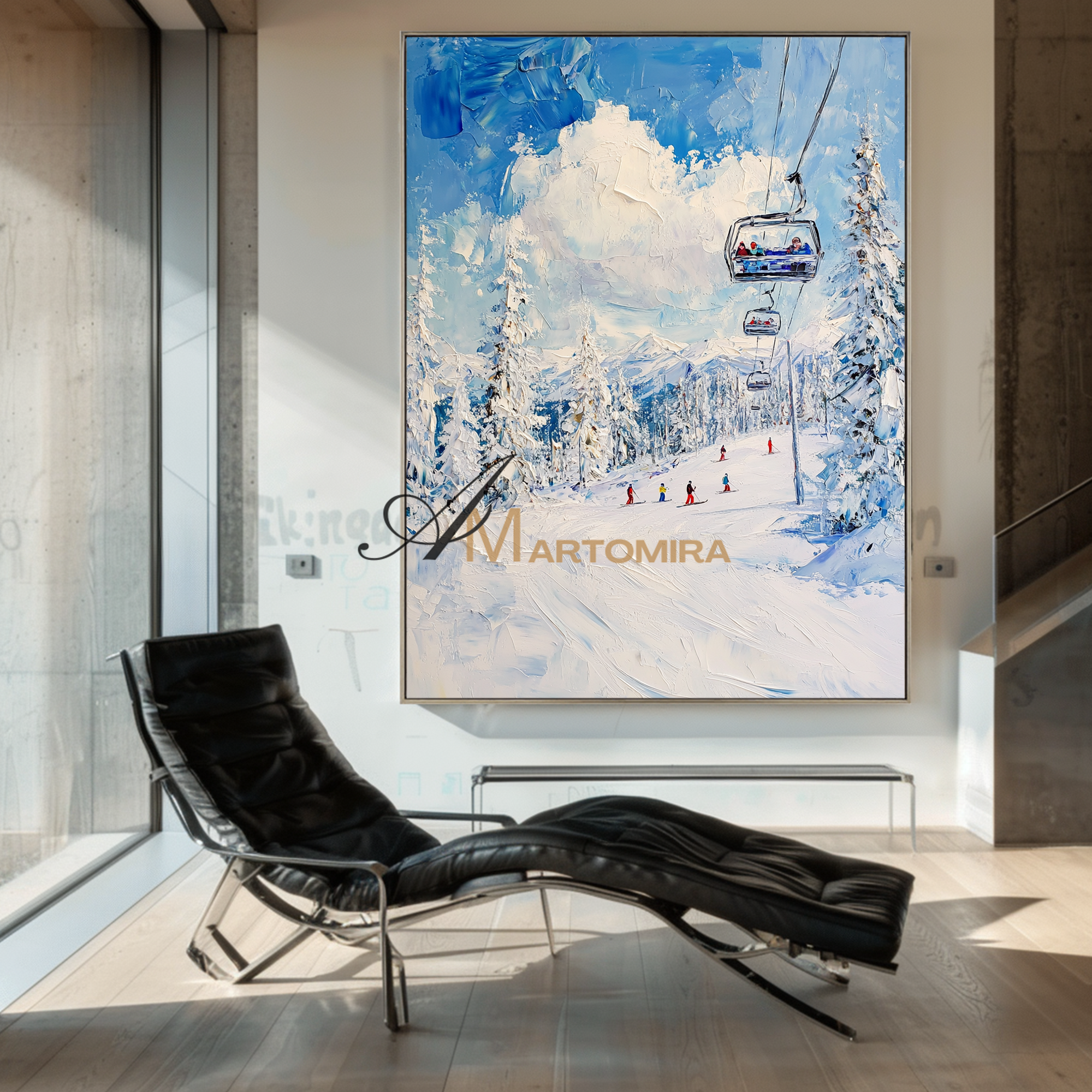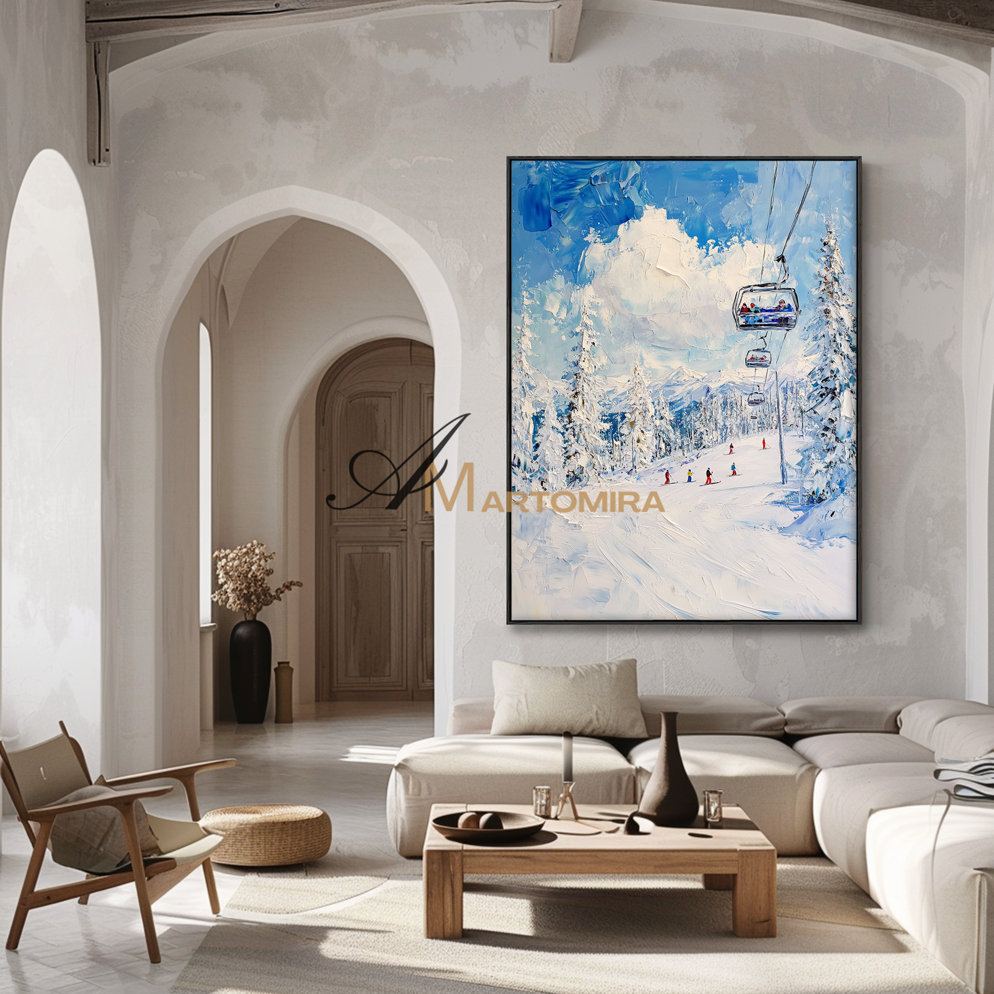 Landschaftsmalerei | Winterkunst | Ski-Gemälde | Verschneite Landschaftsmalerei #CL098
