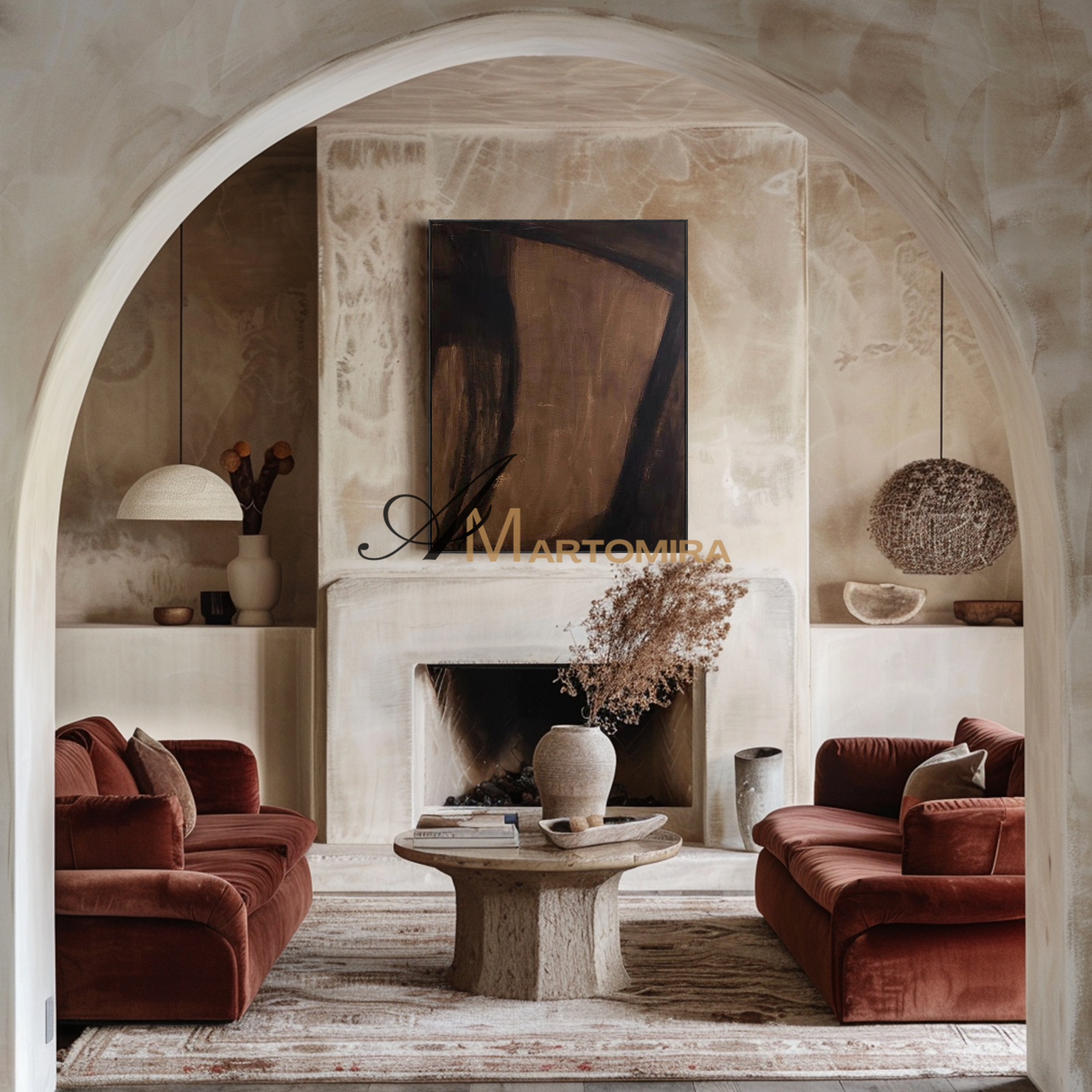 Enhance your interior with our contemporary hand-painted wall art, blending texture, form, and timeless style.