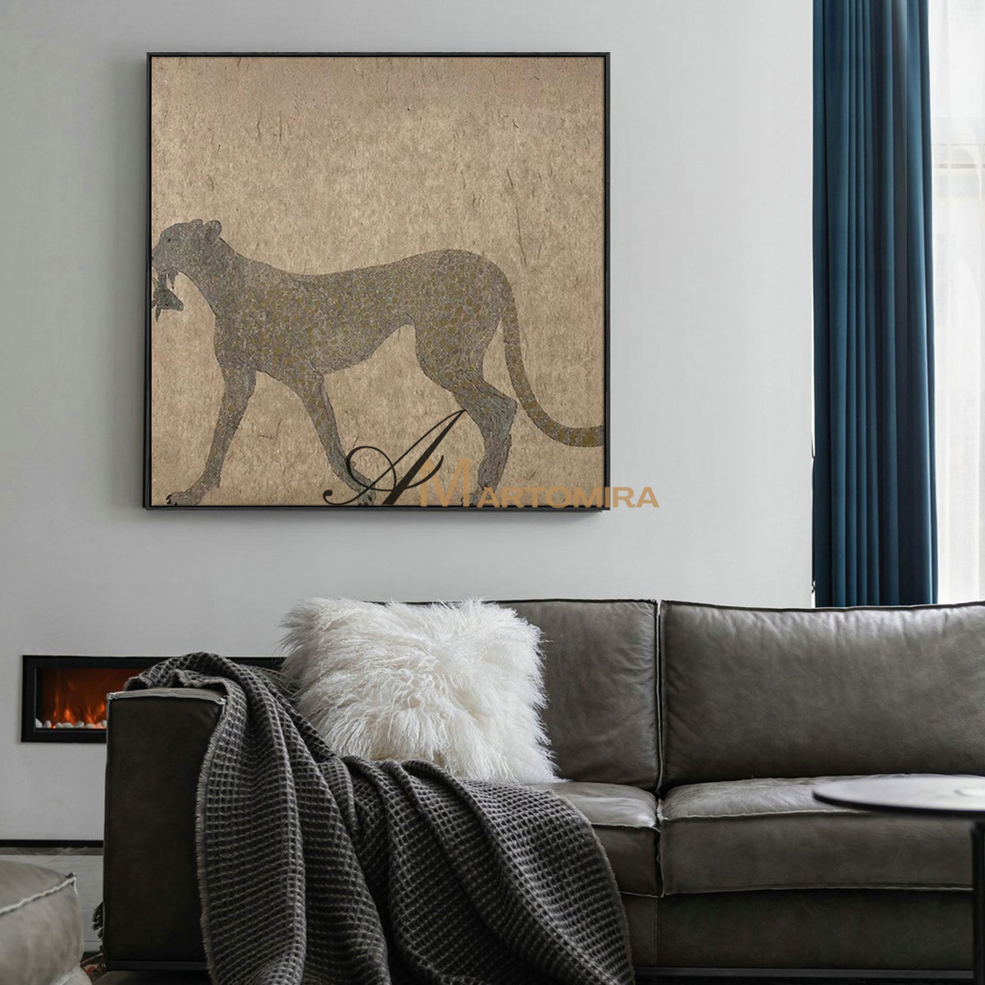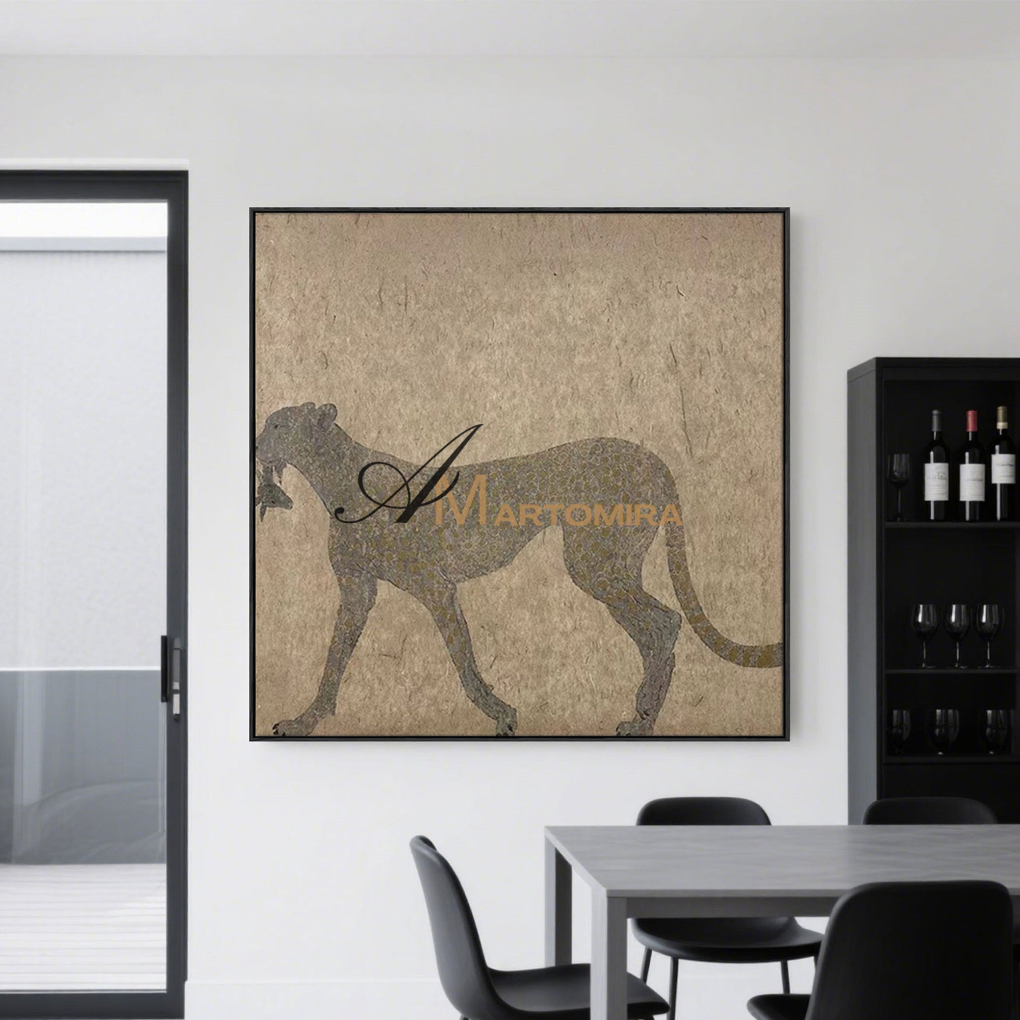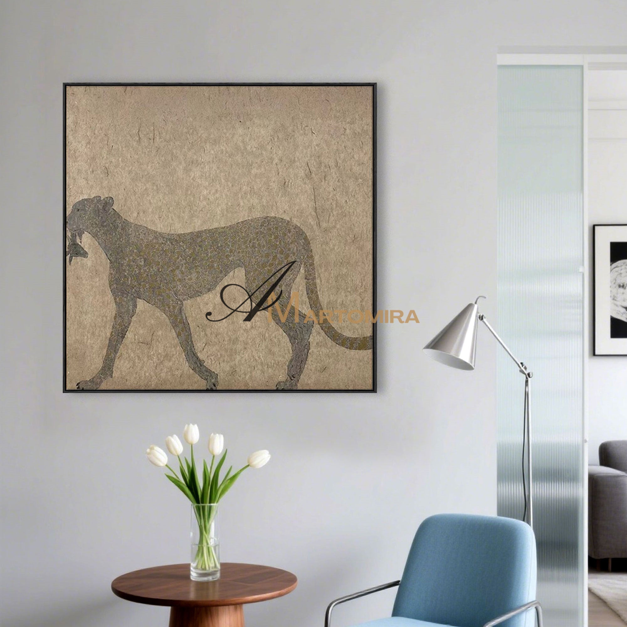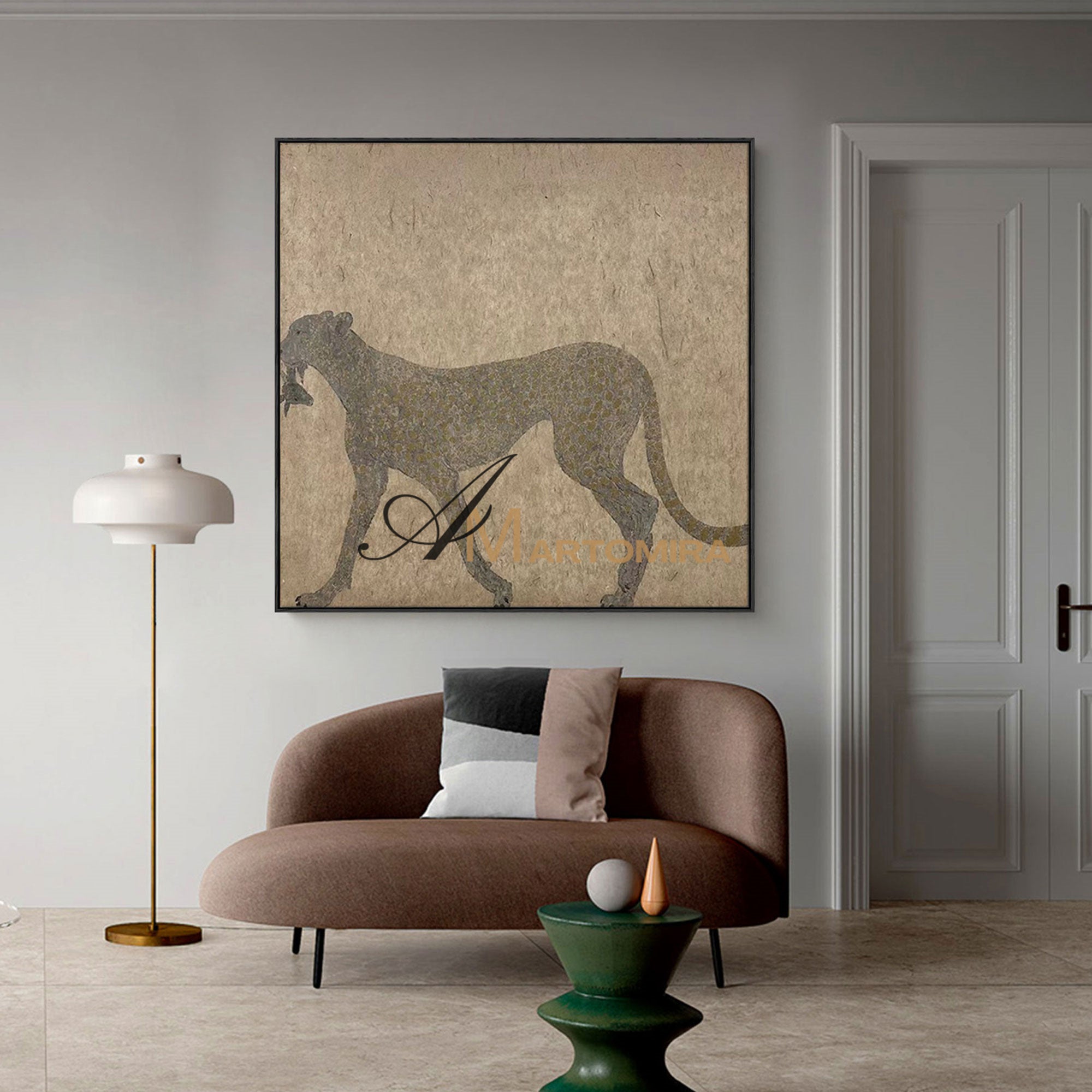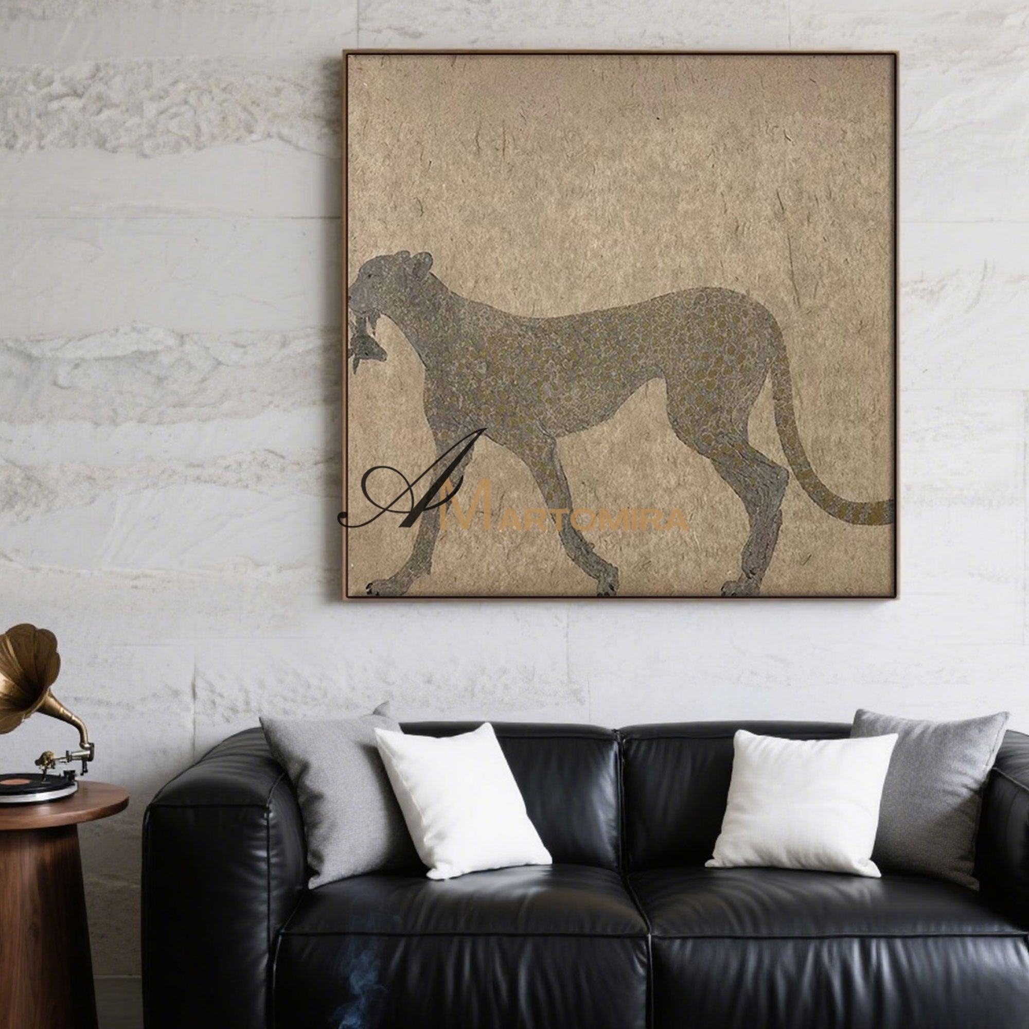 Tiergemälde | Gemälde eines Leoparden | Wandbild in Braun und Beige | Dekorative Wanddekoration #MF070