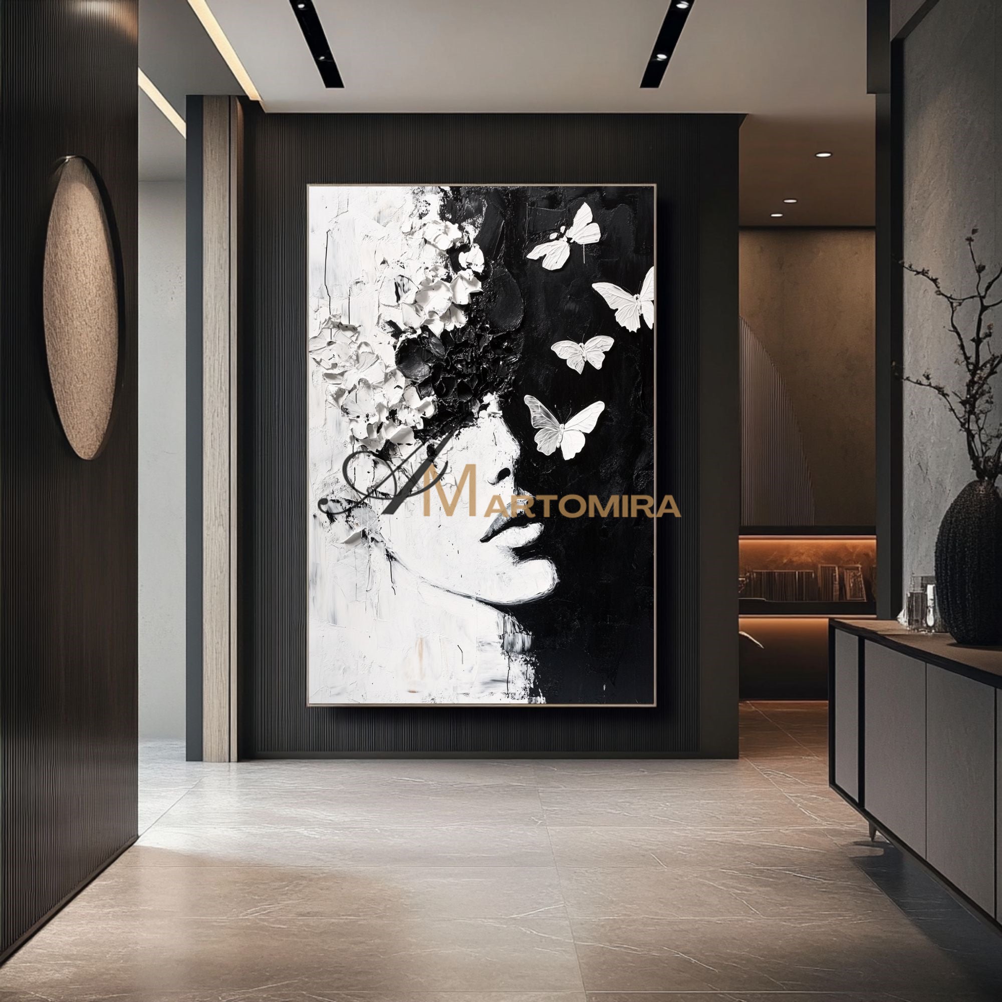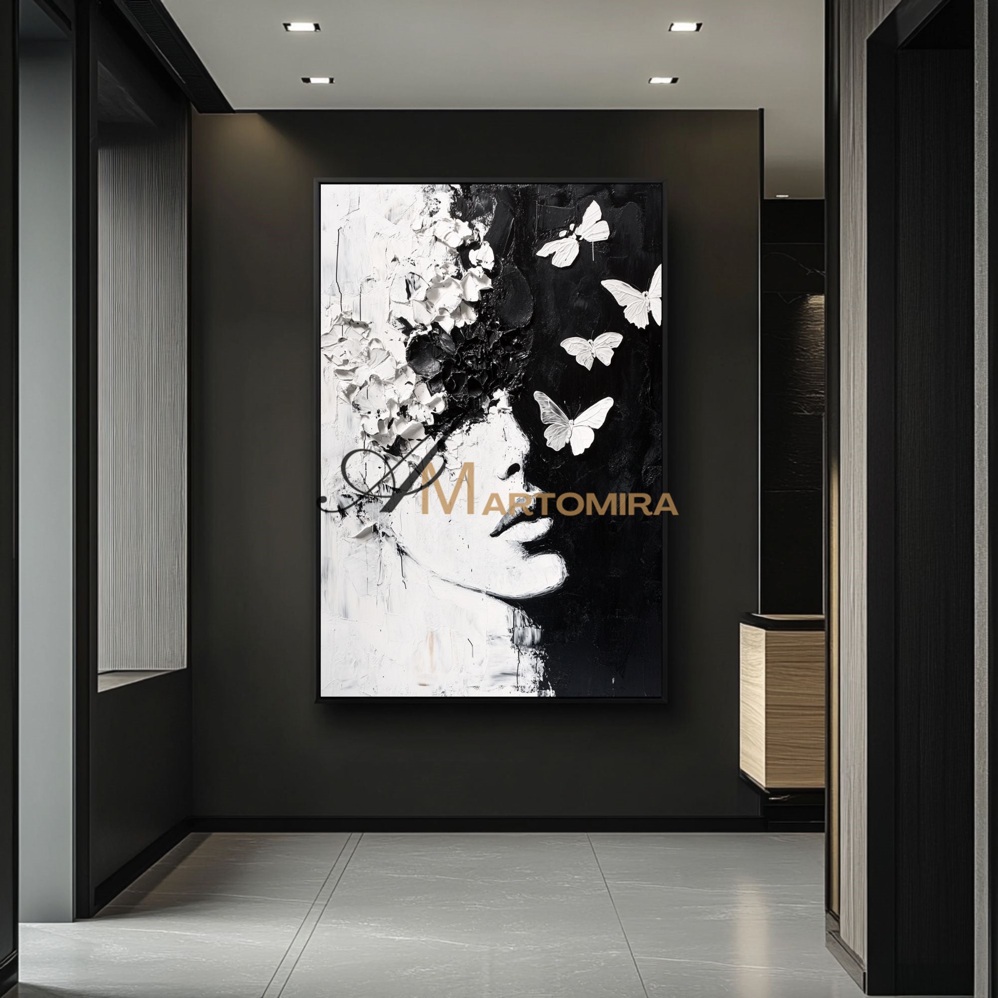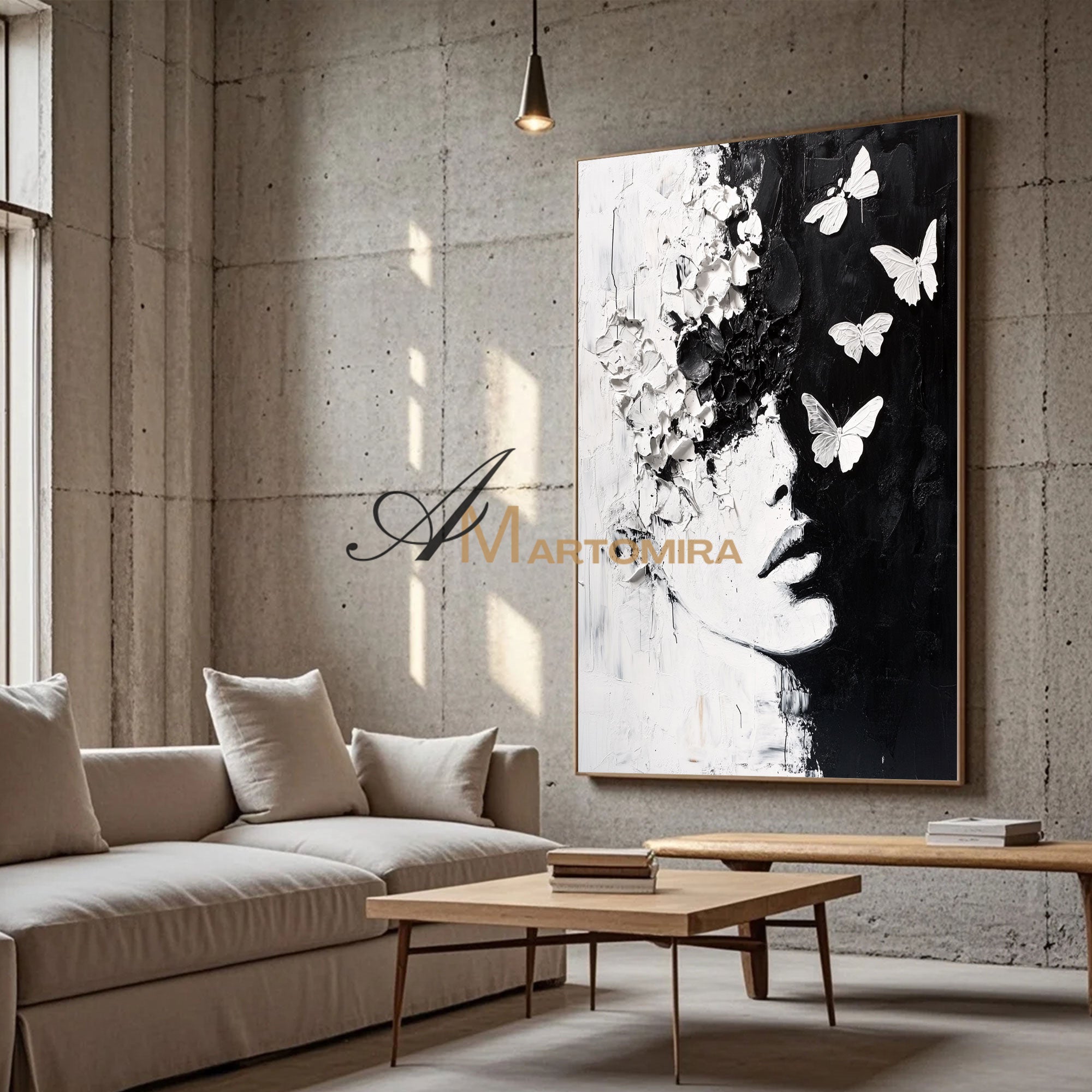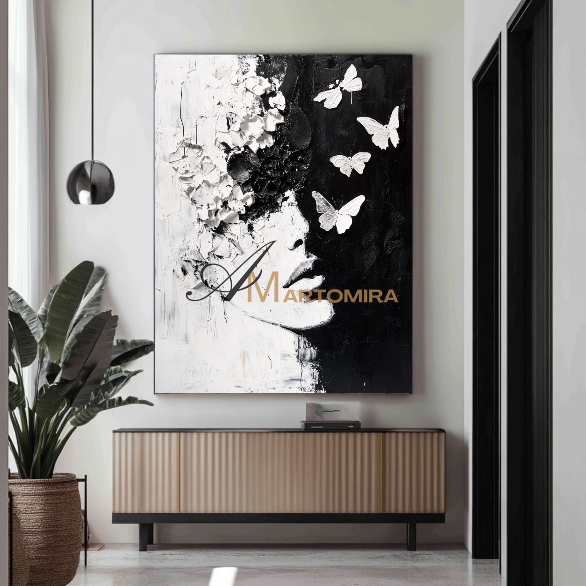 Abstrakte Kunst in Schwarz-Weiß | Porträtmalerei | Strukturmalerei | Großformatiges Wandbild #AP042