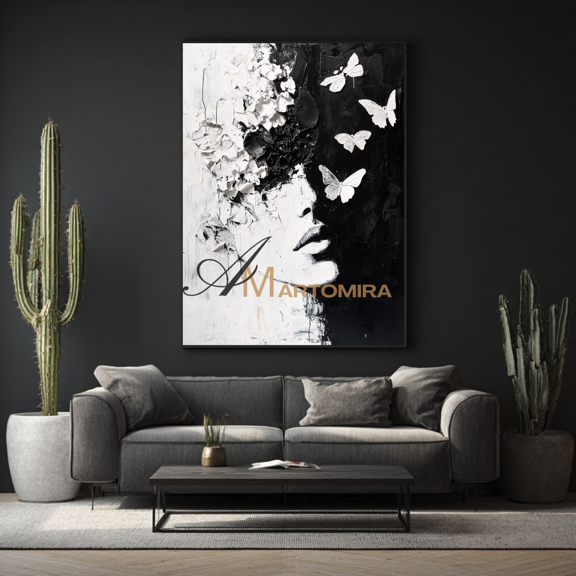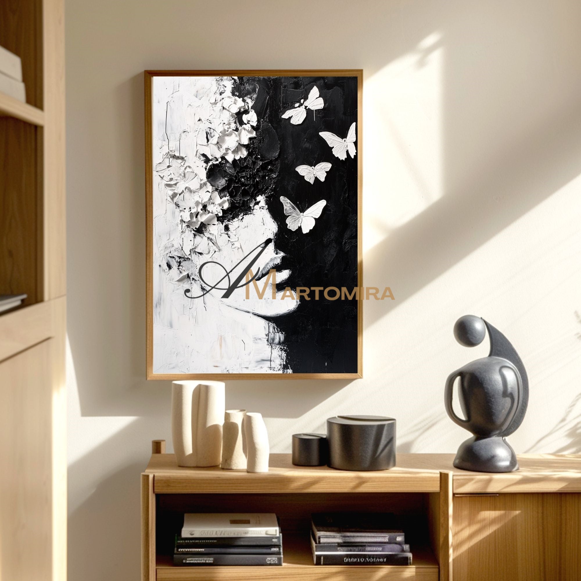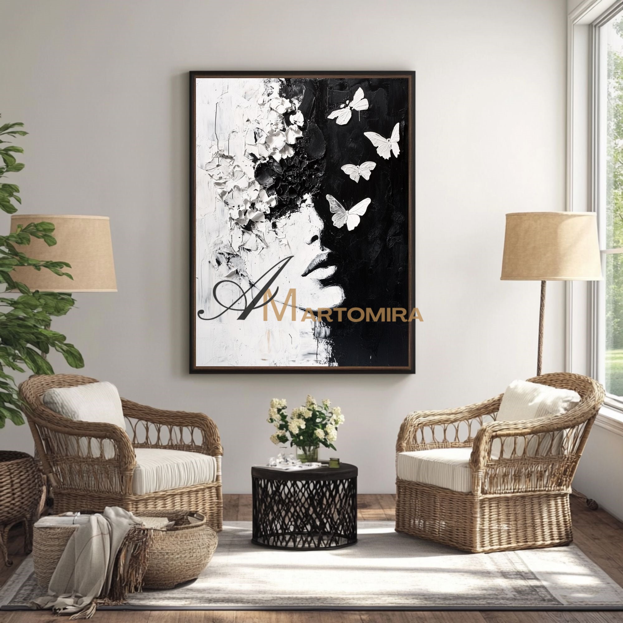 Abstrakte Kunst in Schwarz-Weiß | Porträtmalerei | Strukturmalerei | Großformatiges Wandbild #AP042