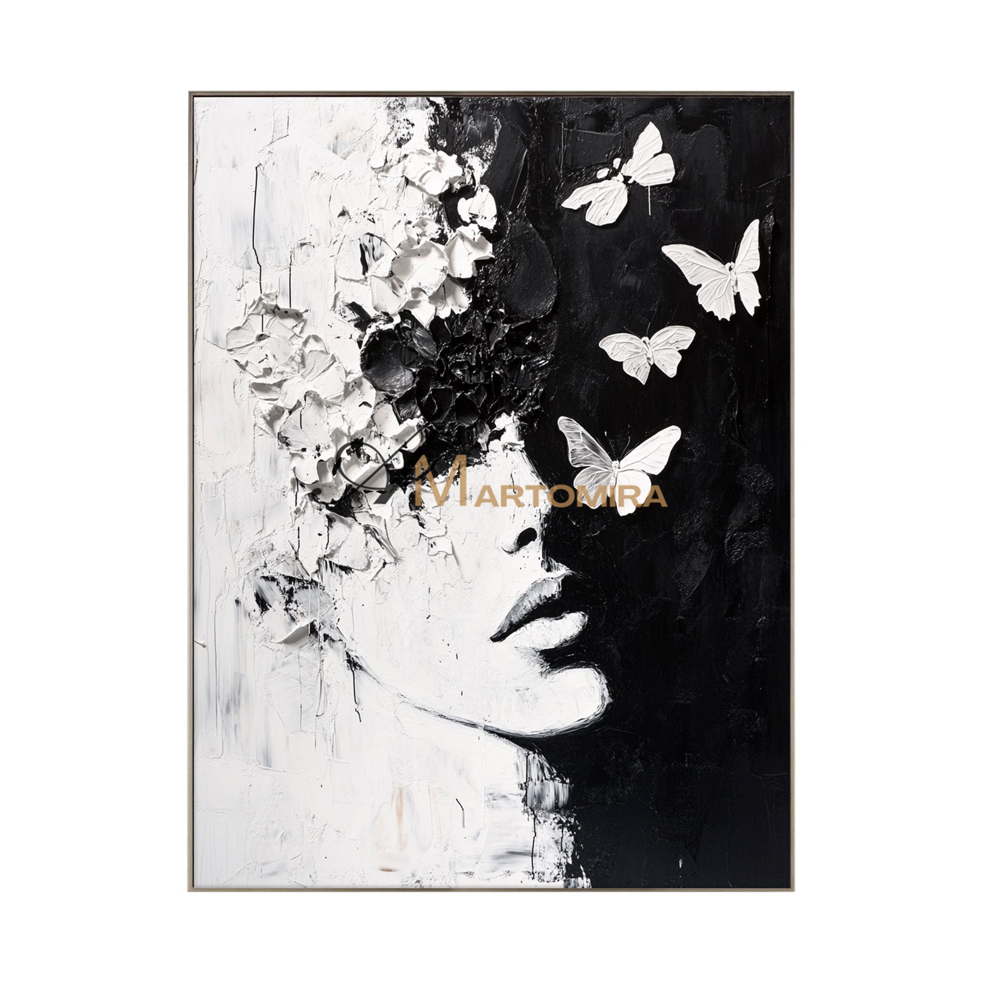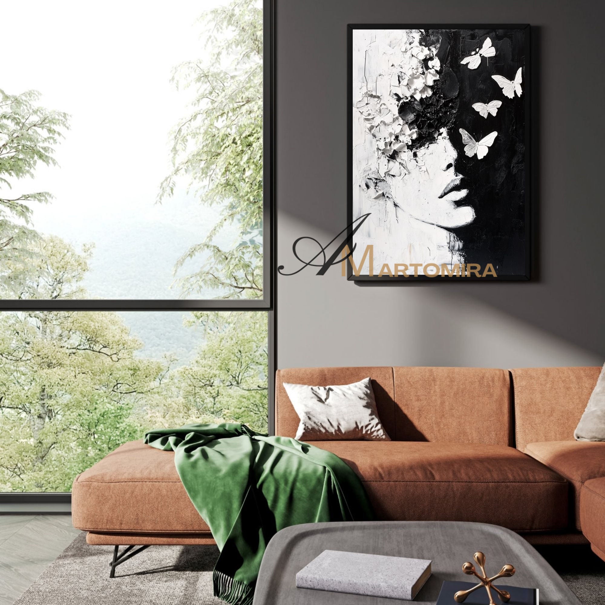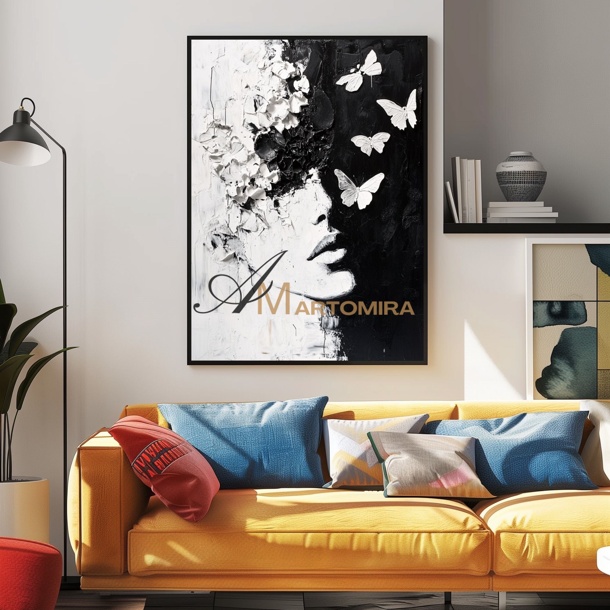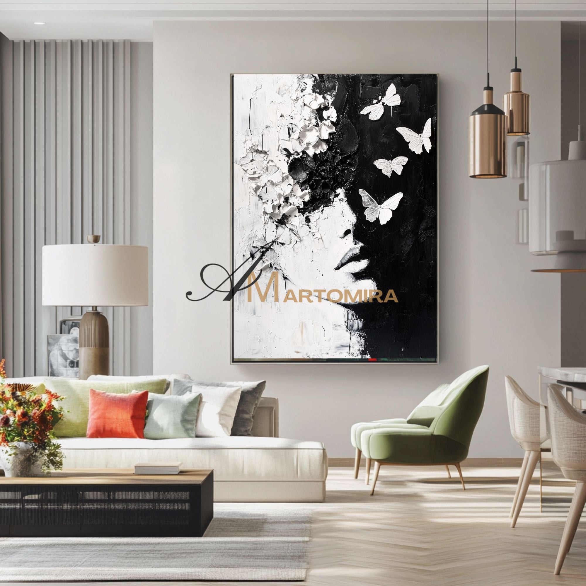 Abstrakte Kunst in Schwarz-Weiß | Porträtmalerei | Strukturmalerei | Großformatiges Wandbild #AP042