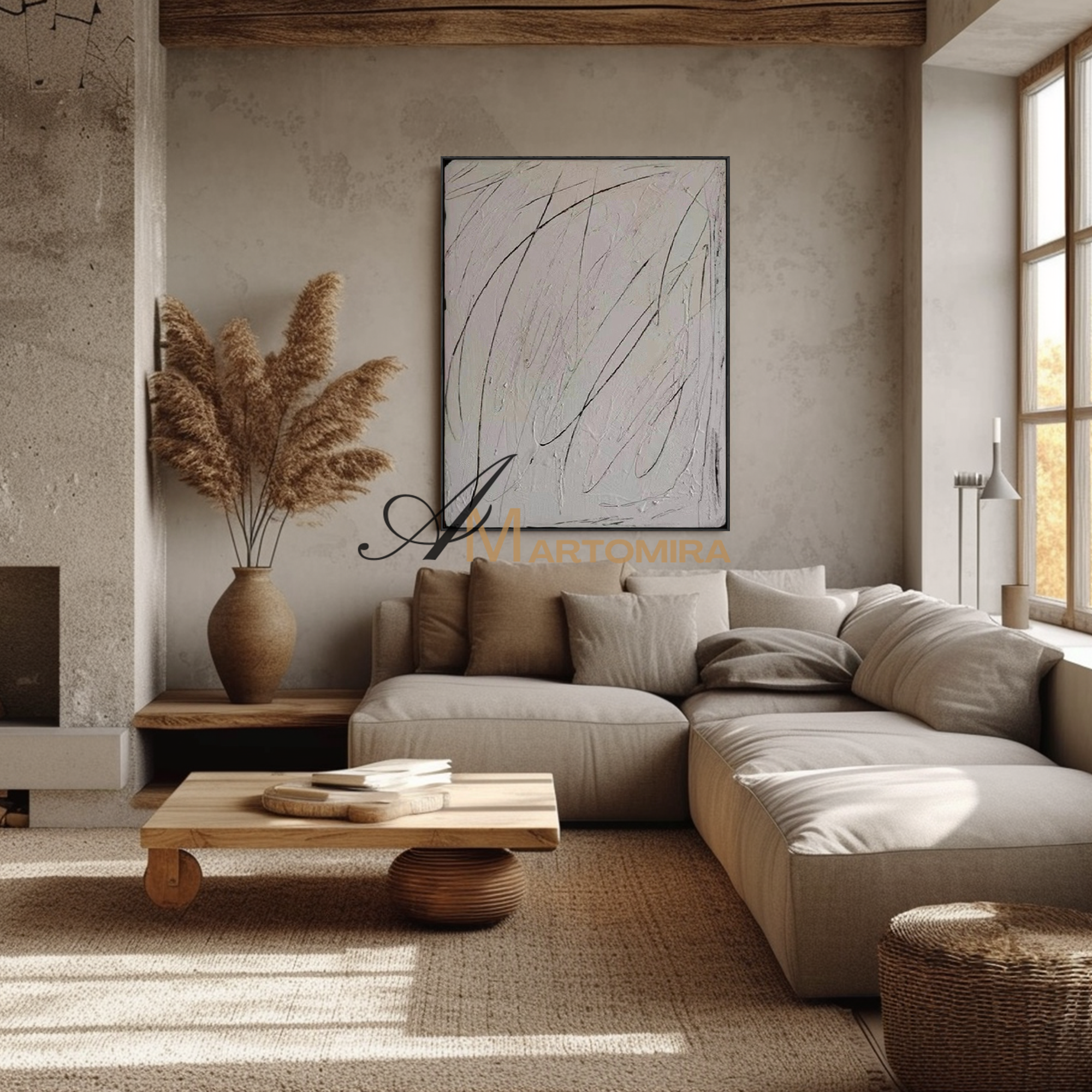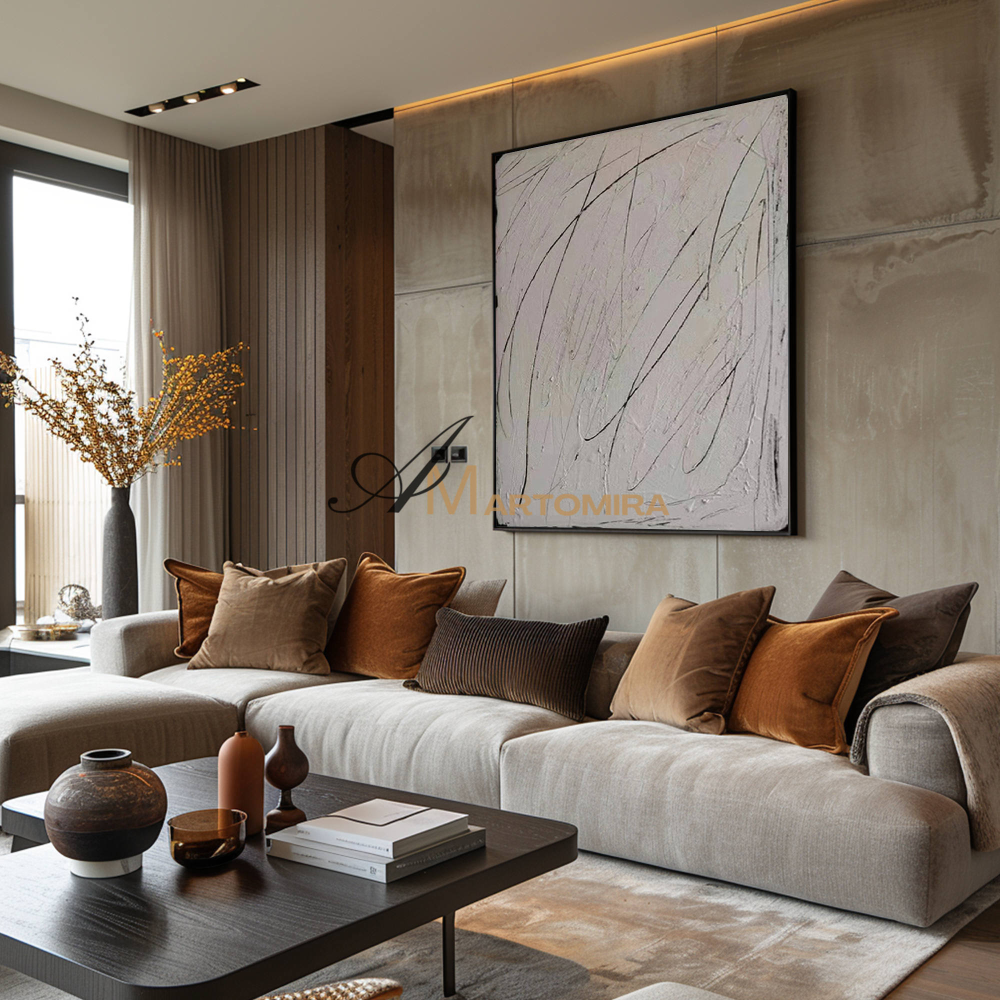 Enhance your interior with our contemporary hand-painted wall art, blending texture, form, and timeless style.