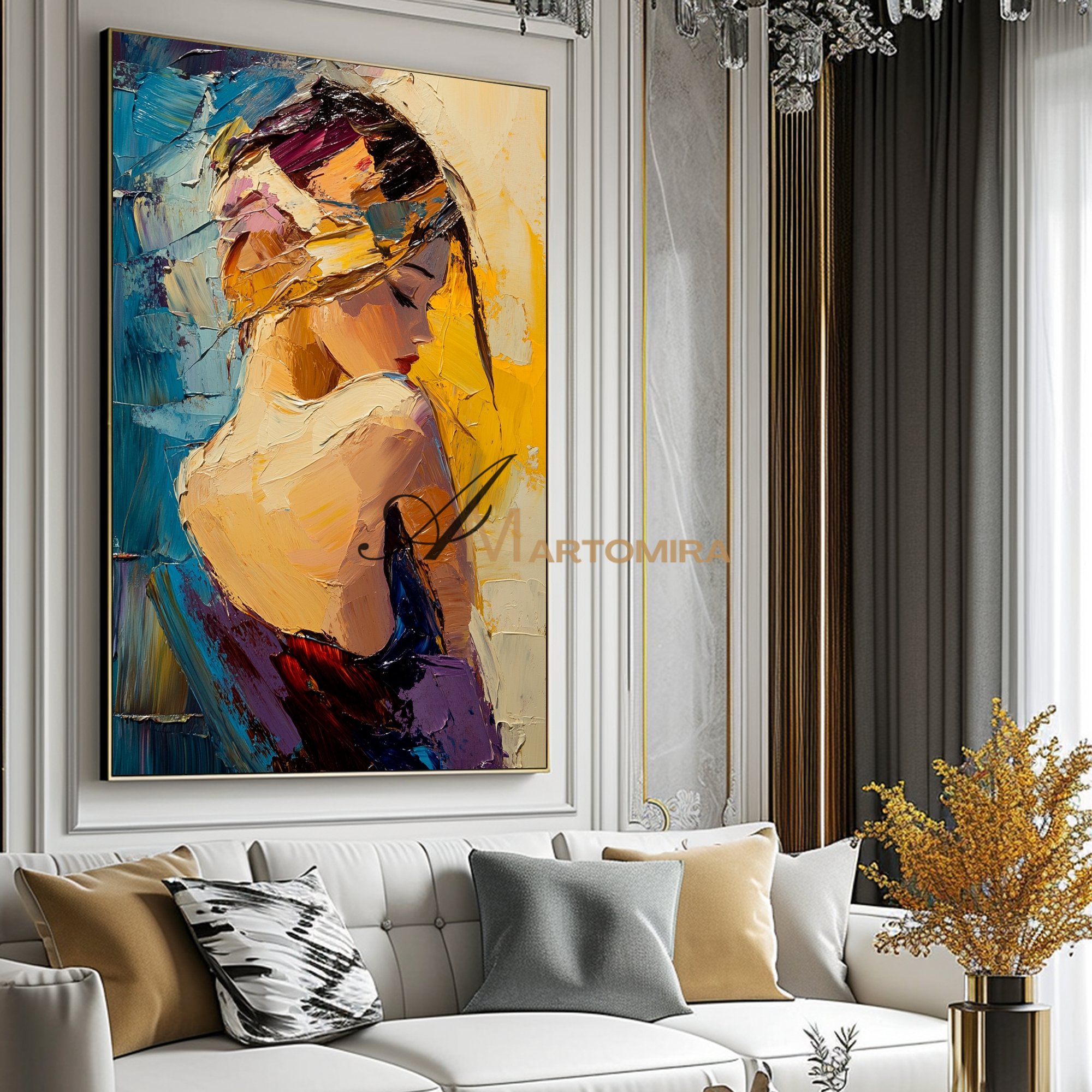 Frau in Gold – Gemälde | Porträt einer schönen Frau | Dekorative Wandkunst | Wanddekoration #AP134