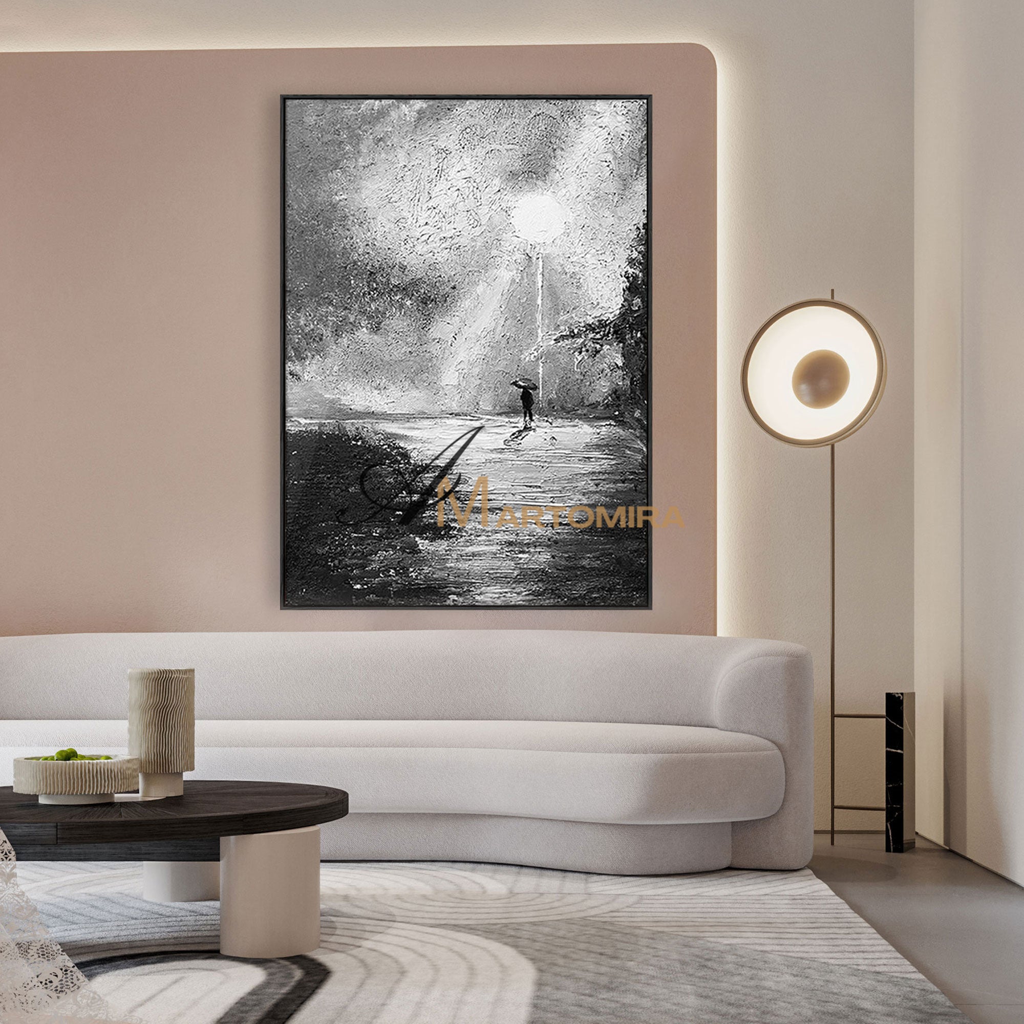 Enhance your interior with our contemporary hand-painted wall art, blending texture, form, and timeless style.