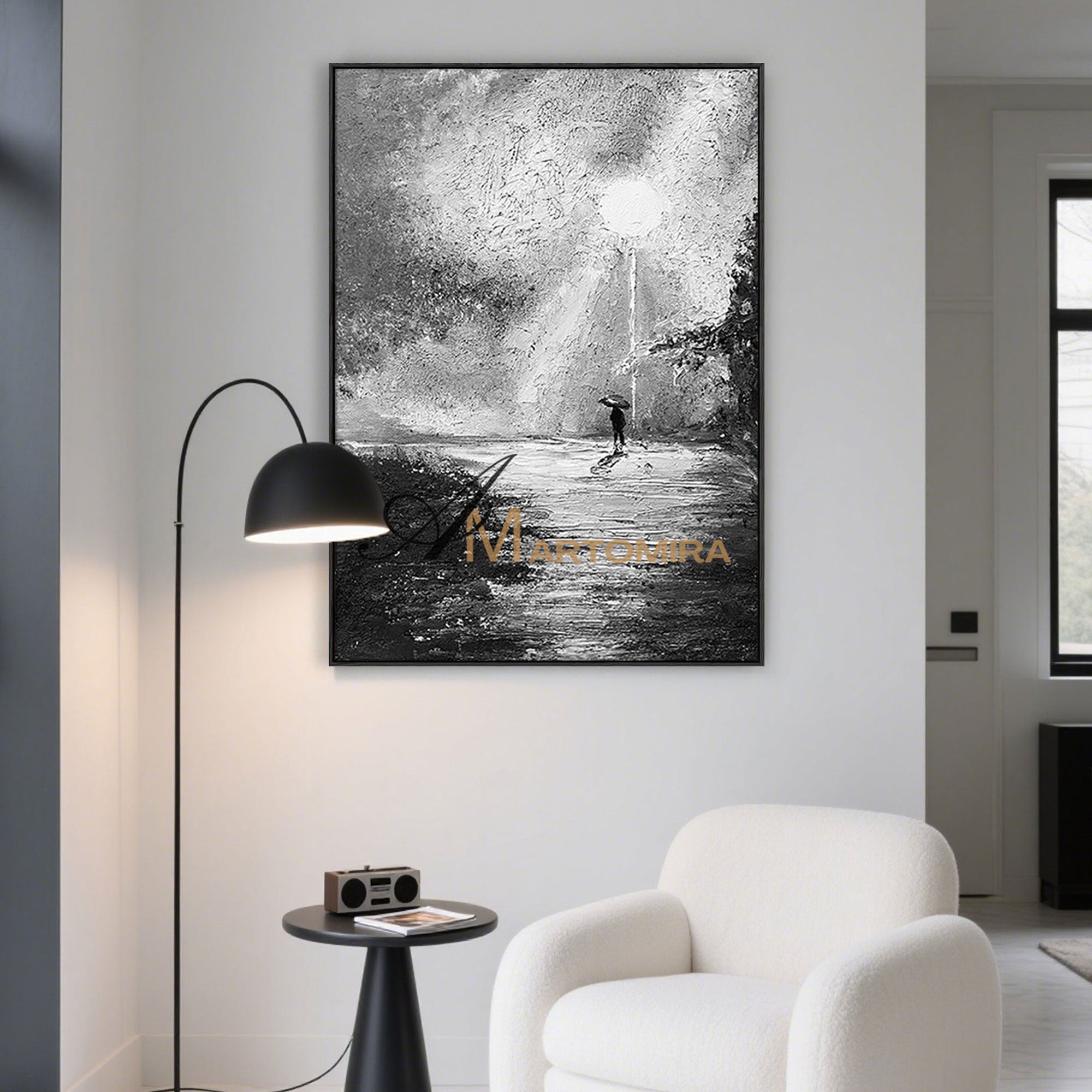 Großformatige abstrakte Wandkunst | Schwarz-Weiß-Leinwandbild | Abstrakte Landschaftsmalerei | Wanddekoration #MF057