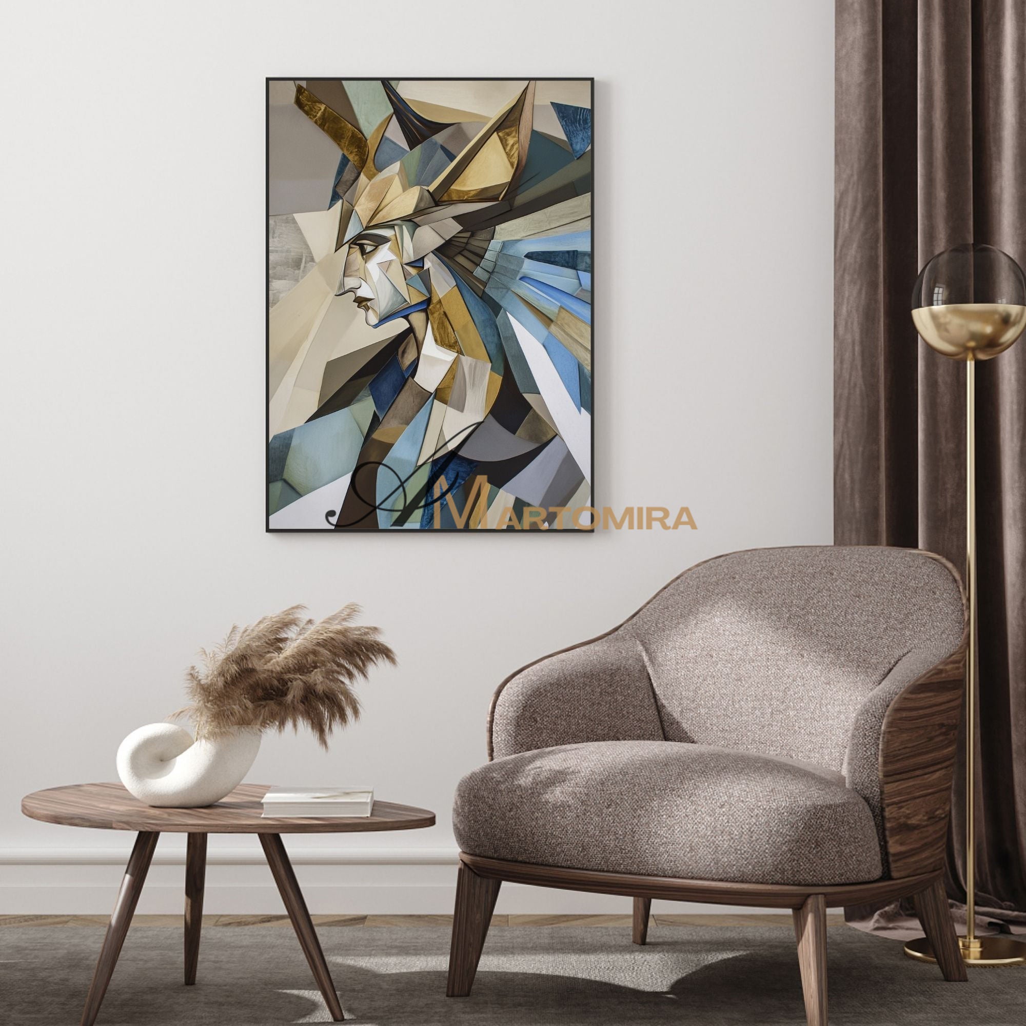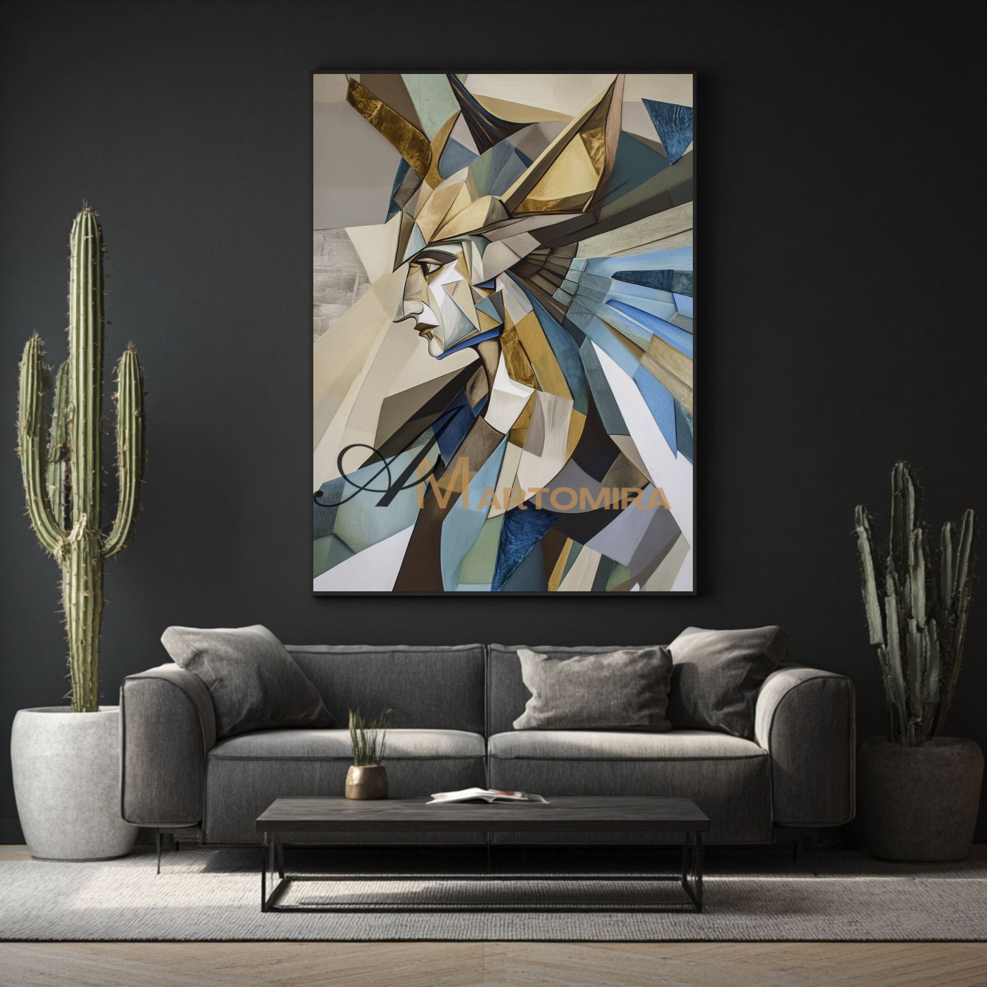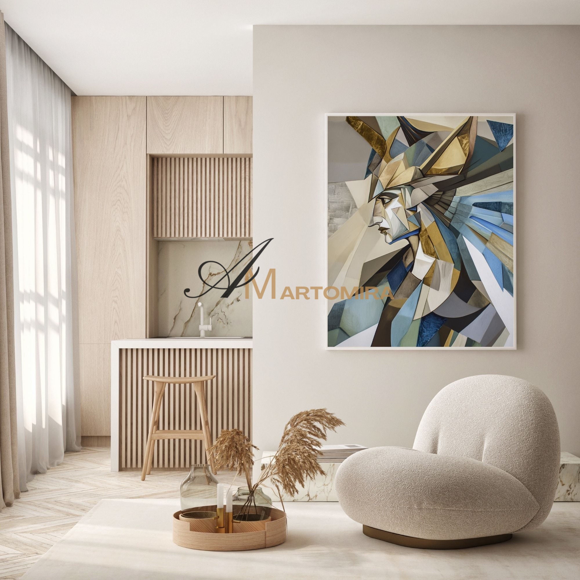 Abstraktes Porträt | Abstraktes Gemälde einer Frau | Goldene Wandkunst | Moderne abstrakte Gemälde #AP023