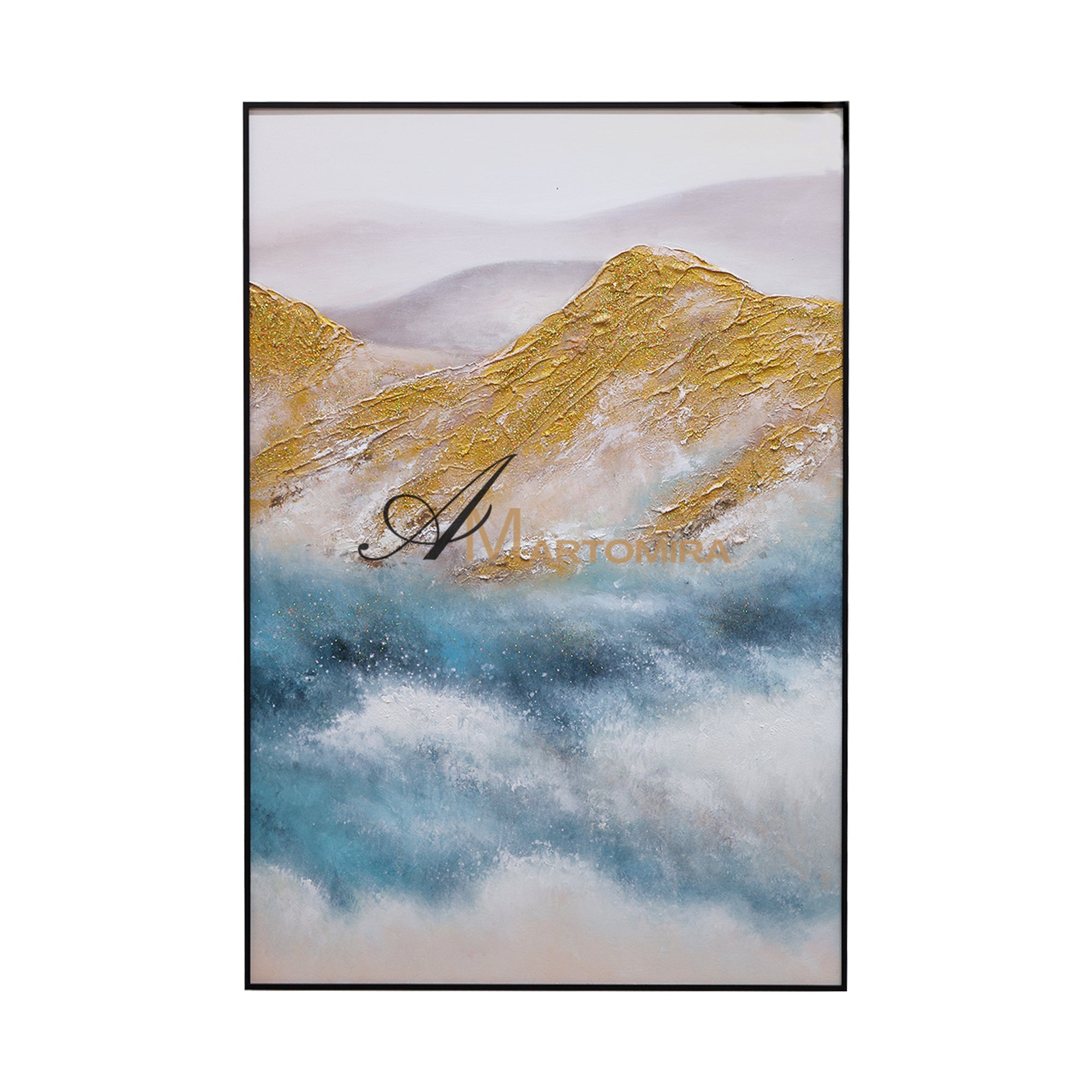 Wandbild in Blau und Gold | Abstrakte Berglandschaft | Abstrakte Landschaftsmalerei | Großes Wandbild #DF001